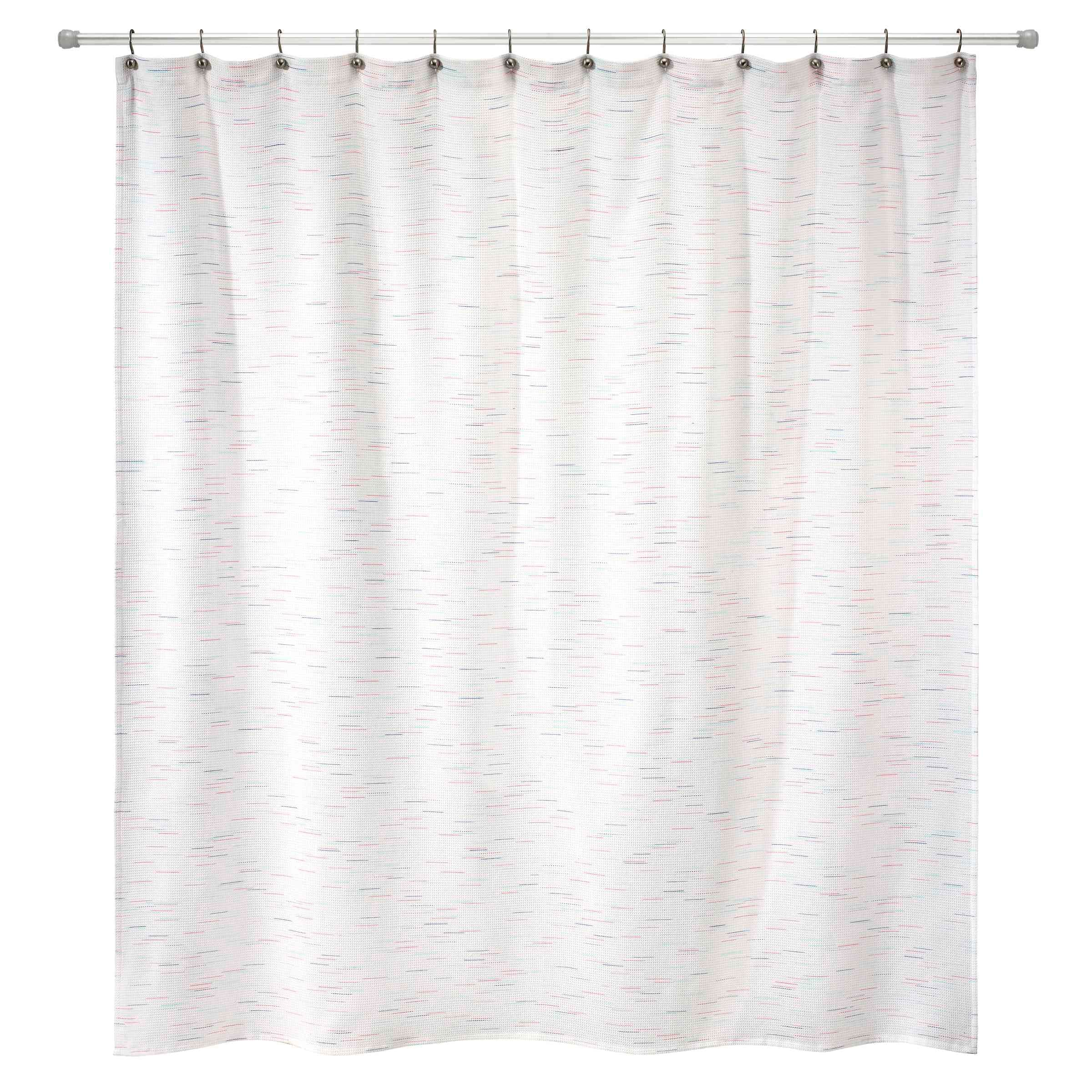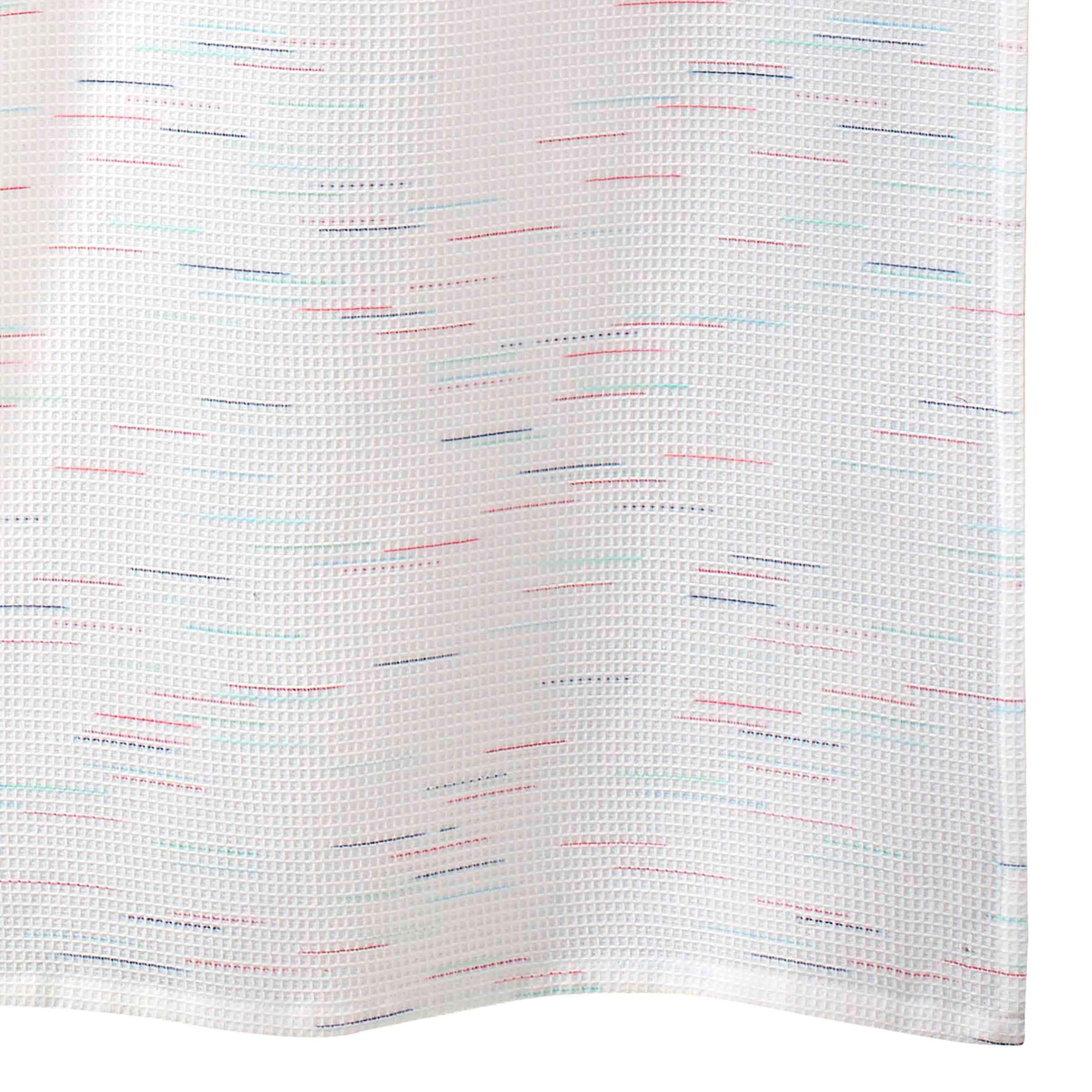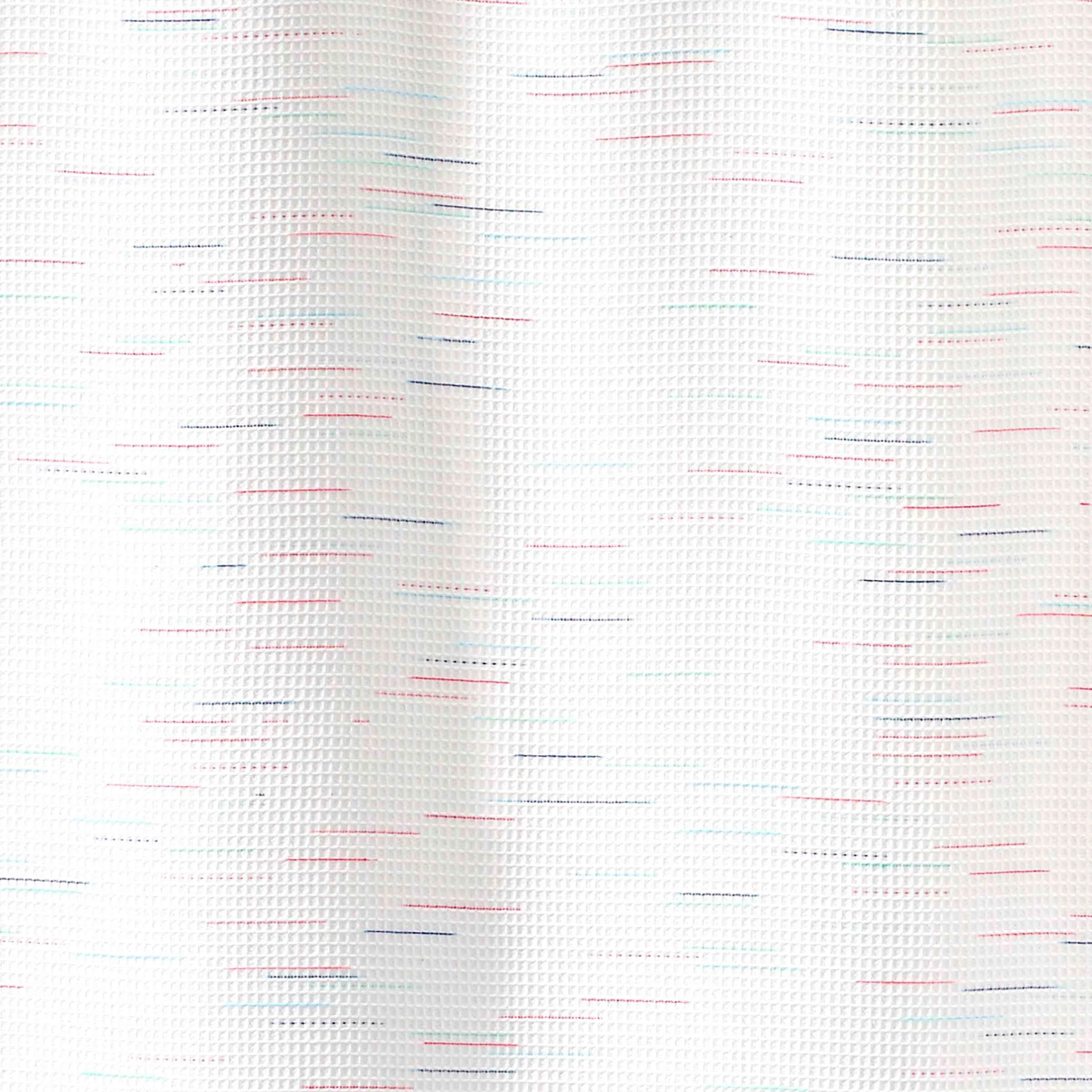 The Izod Fairwinds Shower Curtain is a classic white waffle textured cloth with intermittent splashes of color throughout. The space-dyed yarns pop in shades of blue, pink and red. The fabric is made of 65% Cotton and 35% Polyester for soft feel.