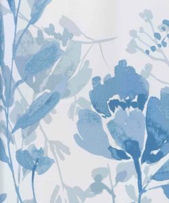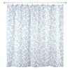 The Izod Mystic Floral Shower Curtain features a beautifully printed floral design in various shades of blue on the bottom third of the curtain, set off on a white ground. The cloth is a 52% polyester, 48% cotton heavyweight twill fabric for easy-care and a great look. 72" x 72".