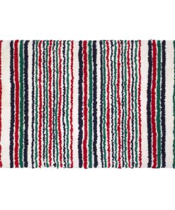 The Izod Nordic Decorative Bathroom Rug features three groups of bold navy, green and red vertical stripes with groups of thinner stripes in between on a winter white ground. Hand woven of 100% cotton pile for a super soft feel, 20" x 32", non-skid latex back. Shop the entire Izod bath collection.