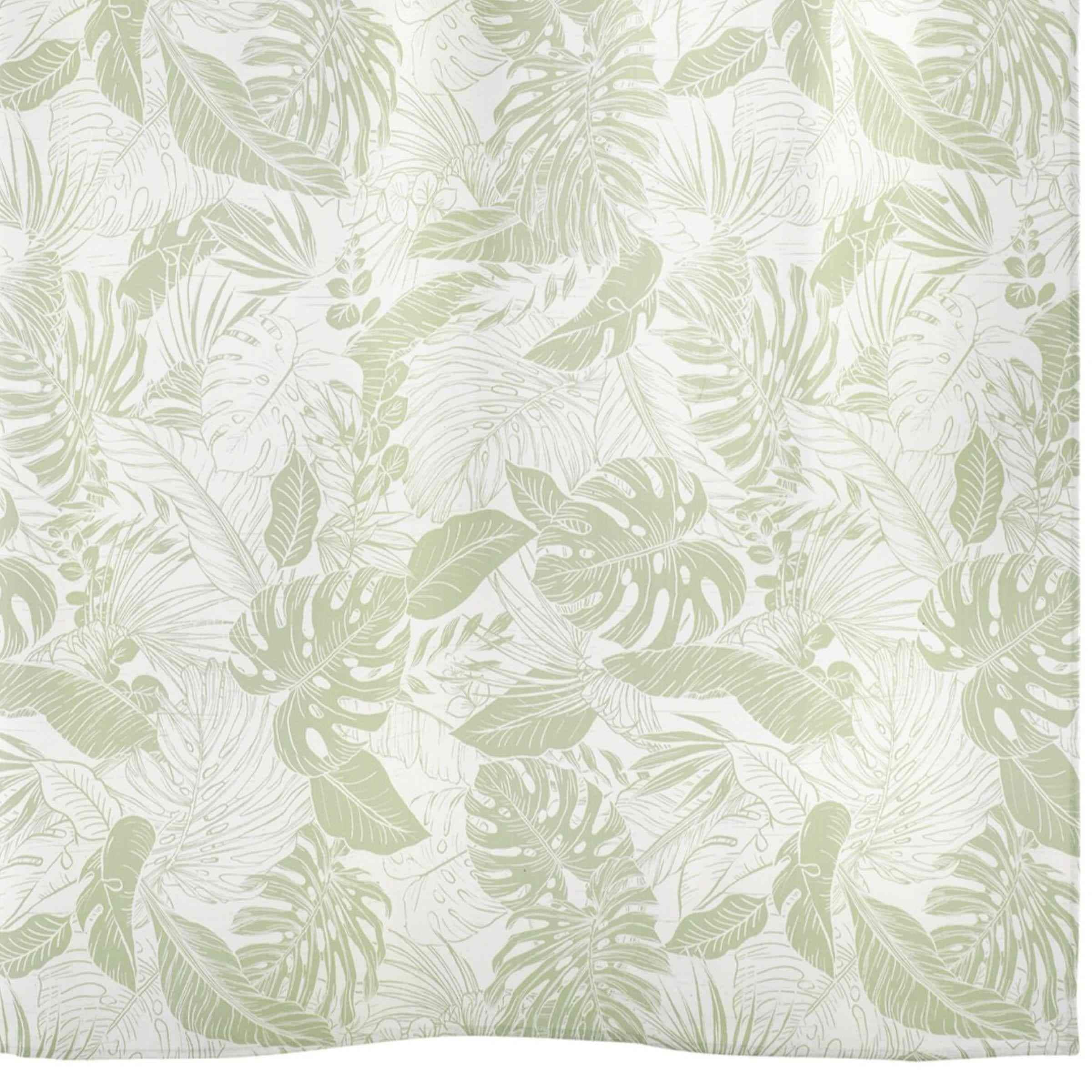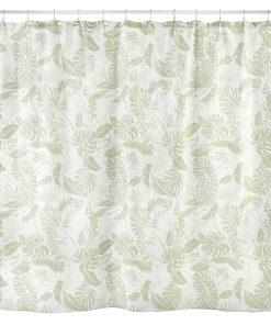 The Izod Reef Decorative Shower Curtain features a subtle, oversized, all-over tropical leaf design in light green on a white textured ground. Printed on 100% polyester for easy care and brilliant colors, 72" x 72". Coordinating accessories, shower curtain, rug, towels available.