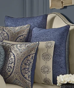The Botticelli Euro Sham is beautiful accent to your bedding decor. Featuring a reversible design with a solid navy chenille and a dusty blue chenille on the reverse. The sham is finished with a 1/4" piping and hidden zipper closure. Pair this pillow sham with the Botticelli Bedding set for a complete look.