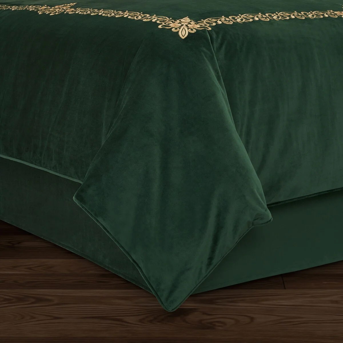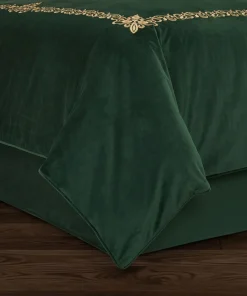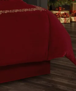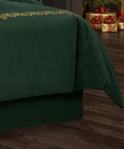 Add a festive and sophisticated touch to your bedroom decor with the J. Queen New York Noelle Christmas Bedskirt. Crafted from plush velvet, this solid bedskirt boasts an elegant design that perfectly complements the Noelle duvet set. With a 15-inch drop and split corners, it drapes beautifully and adds a tailored look to any bed. Choose from the stunning crimson red or evergreen color options to complete your luxurious Holiday bedding collection.