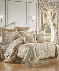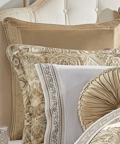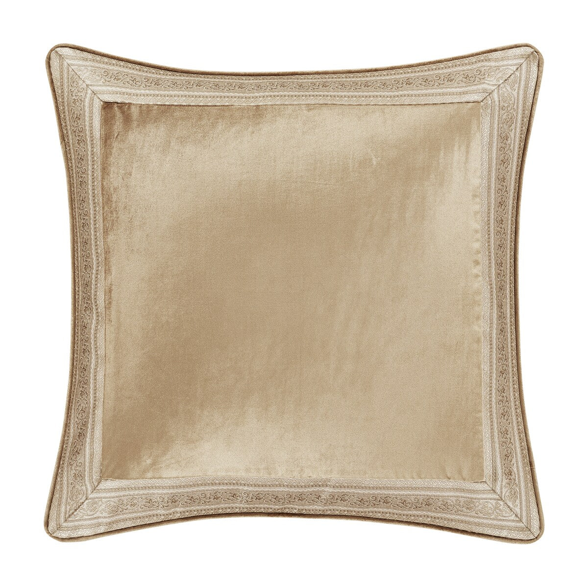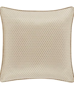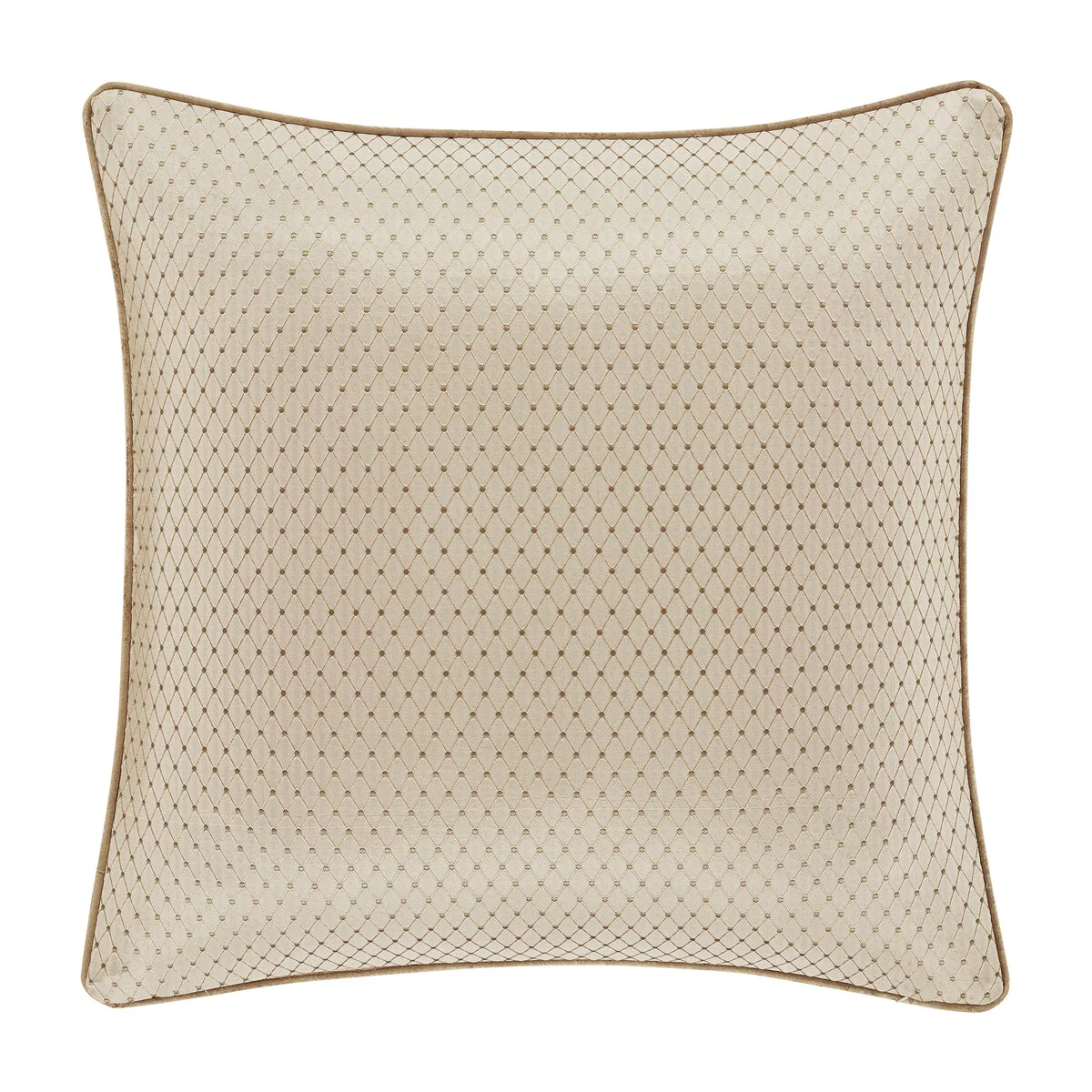 The Sandstone Euro Sham is simple yet beautiful with a sand colored traditional woven jacquard stripe beautifully mitered as a border. This 26" Euro sham is the perfect backdrop to this traditional collection. The sham features a hidden zipper closure and finished with a 1/4" beige velvet piping for added detail. Pair this pillow sham with the Sandstone bedding set by J. Queen New York for a complete look.