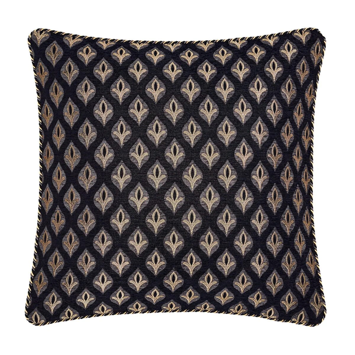 The Trinity Euro Sham is sophisticated with a detailed scroll embroidery design in each of the four corners. The base cloth is made with a luxury champagne satin fabric and a vertical woven champagne stripe runs on reverse side. This 26" Euro sham is the perfect backdrop to this traditional collection. the pillow sham features a hidden zipper closure and is finished with a champagne piping for added detail. Pair this luxury pillow sham with the Trinity bedding set by J. Queen New York for a complete look..