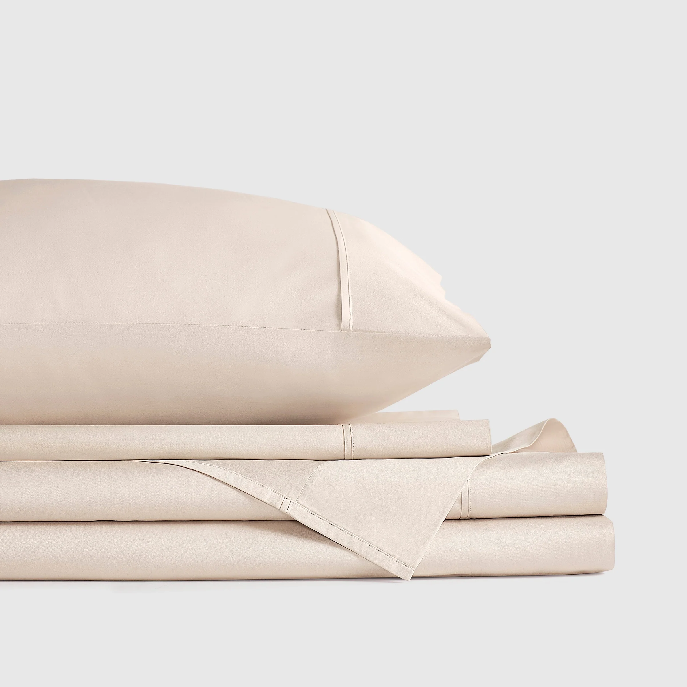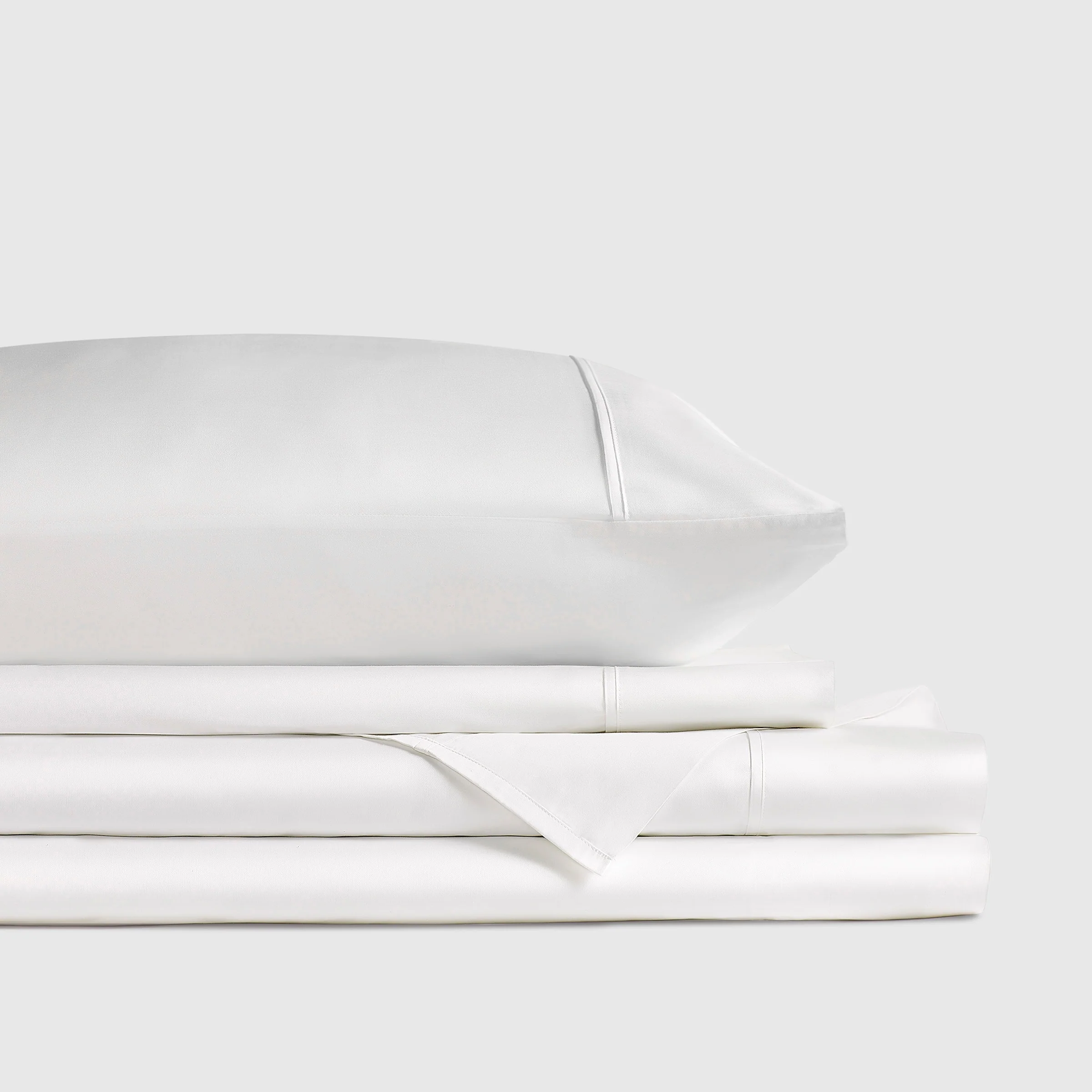 Indulge in modern luxury with the J. Queen New York Premier Cotton Sateen Sheets. Experience the ultimate in comfort with our soft & silky sateen weave, which is OEKO-TEX and GOTS certified, designed with the highest standards to feel incredibly smooth and safe against your skin. The natural sheen adds a touch of elegance, offering a polished look without the use of synthetic additives. Our breathable, moisture-wicking fabric ensures a cool and comfortable night’s sleep. Crafted for durability, the tight weave provides long-lasting wear while maintaining a lightweight feel. Quality craftsmanship is seen throughout each component of the set, such as the deep pocket fitted sheet that fits up to a 20" mattress, a 5" folded hem treatment on the flat sheet, and pillowcases with a European closure and 5" hem. Sheet set includes 1 flat sheet, 1 fitted sheet, and 2 pillowcases. •Queen: 1 Queen Fitted Sheet: 60" W x 80" L (deep pocket fits up to 20" mattress) 1 Queen Flat Sheet: 90" W x 102" L 2 Standard/Queen Pillowcases: 21" W x 30" L•King: 1 King Fitted Sheet: 78" W x 80" L (deep pocket fits up to 20" mattress) 1 King Flat Sheet: 109" W x 102" L 2 King Pillowcases: 21" W x 40" L •Cal King: 1 Cal King Fitted Sheet: 72" W x 84" L (deep pocket fits up to 20" mattress) 1 Cal King Flat Sheet: 109" W x 102" L