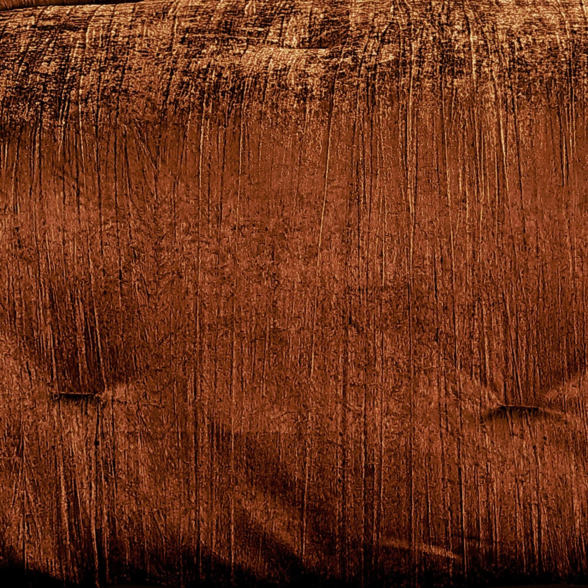 Highly comfortable and elegant in its aesthetic, this seven piece king comforter set in copper is a staple in your master or guest bedroom. Featuring an ultra polyester velvet fabric with brushed backing, the crinkle textured front gives character to this quilted set. Generously filled with polyester for enhanced warmth. Check out our Jay collection for more options in color and size.