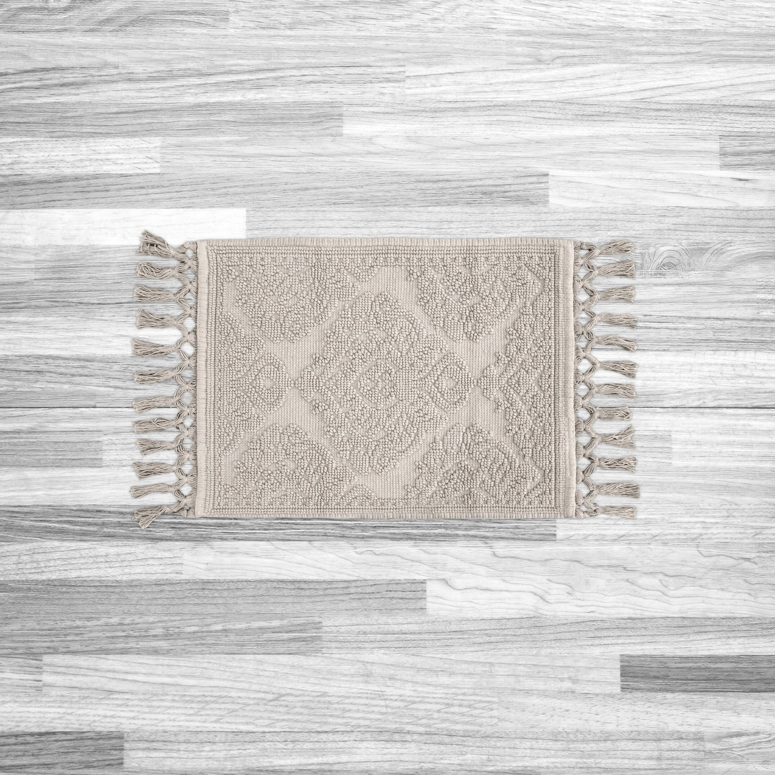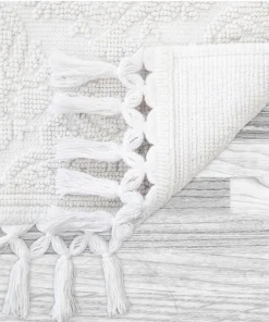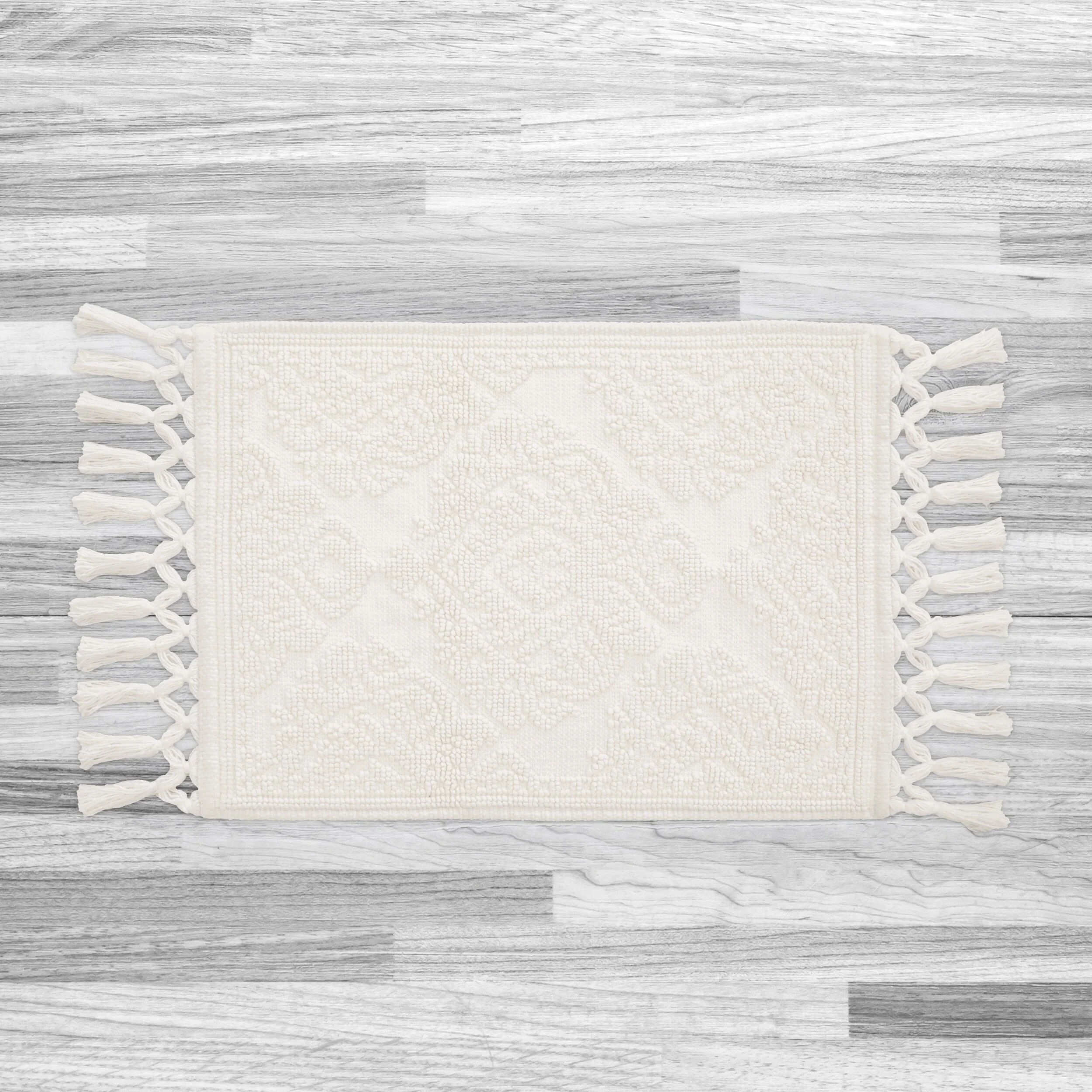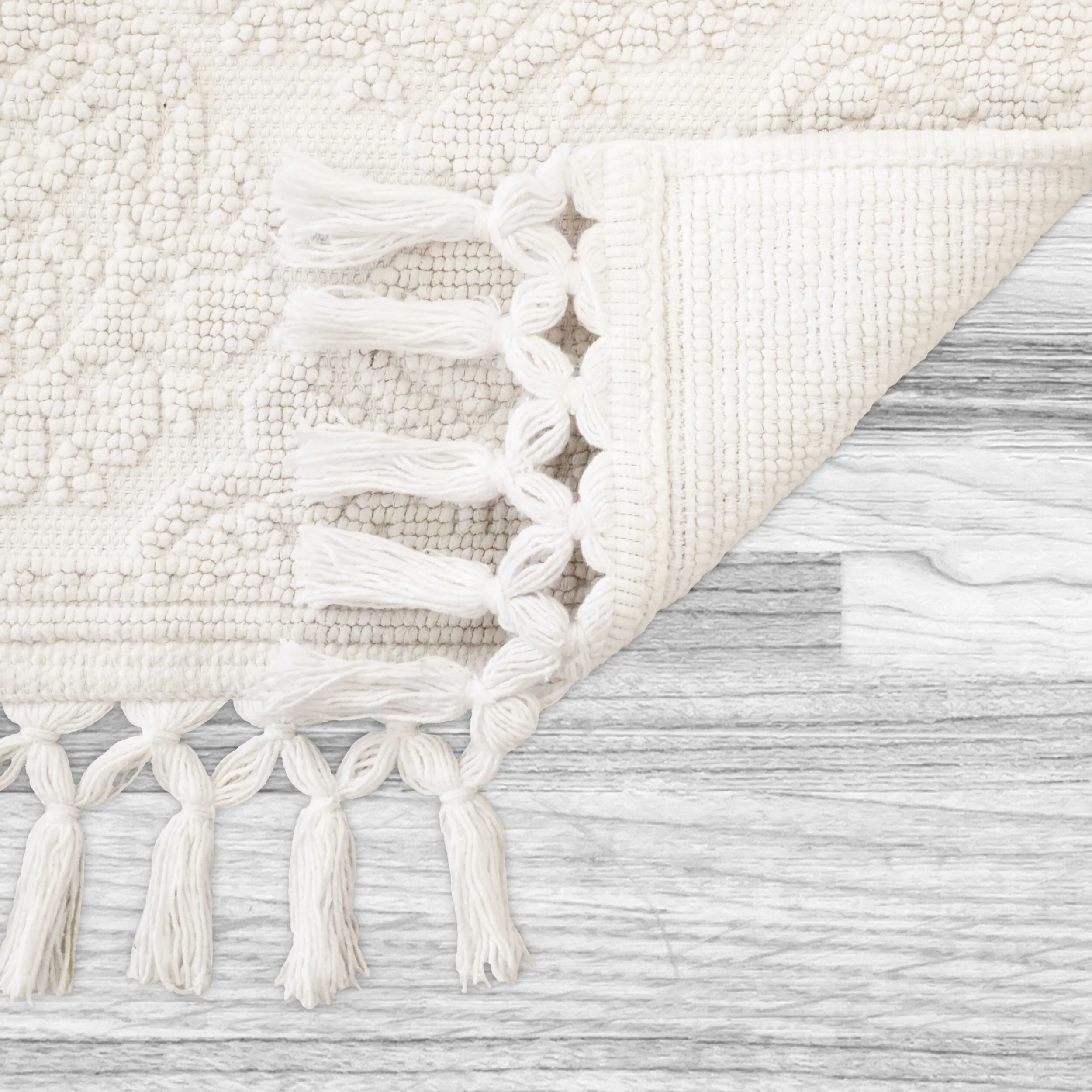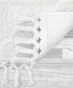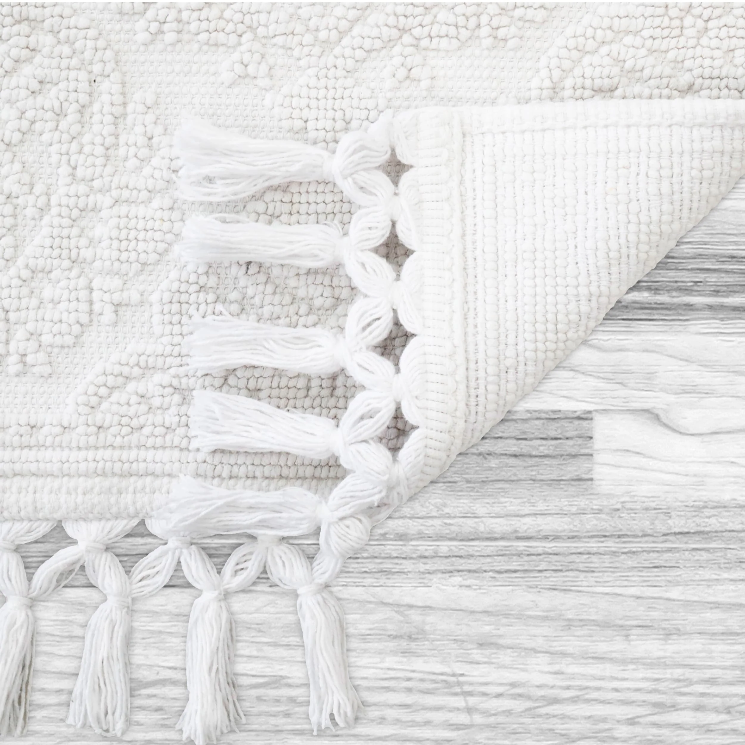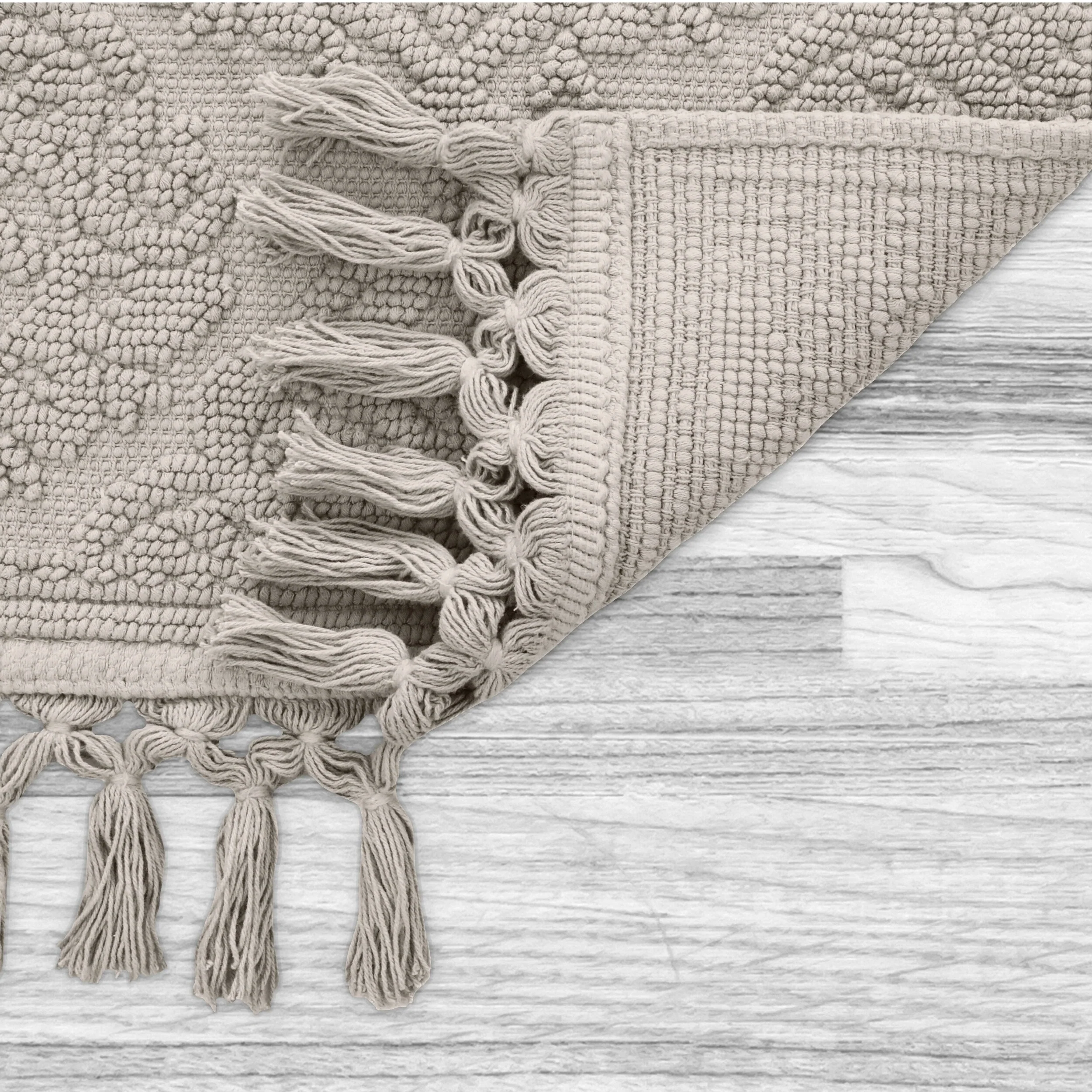 This Jean Pierre Collection is the perfect addition to your home with its cozy, bohemian and decadently soft bath rugs. Crafted with a geometric fashionable design that has a super soft and dashing knotted fringe tassels on both sides creating the perfect look that will never go out of style. Constructed with a tufted 100% cotton material, creating a soft to the touch experience that is thick and absorbent. This collection is available in many styles and sizes, making it the perfect addition to your home. It easily pairs with similar tones and patterns as well as different textures. When cleaning this natural bath rug, we recommend machine wash cold.