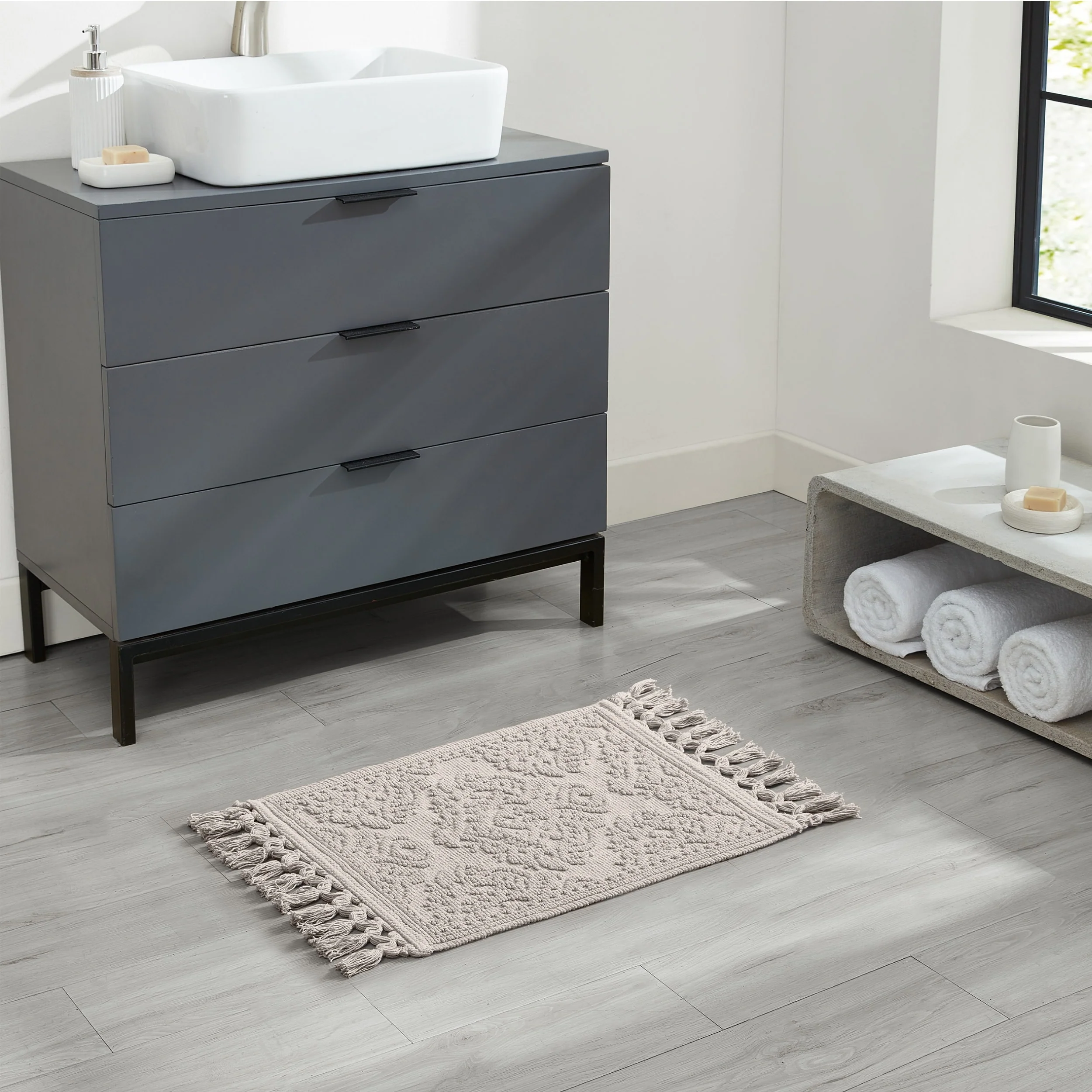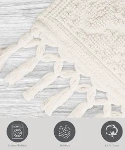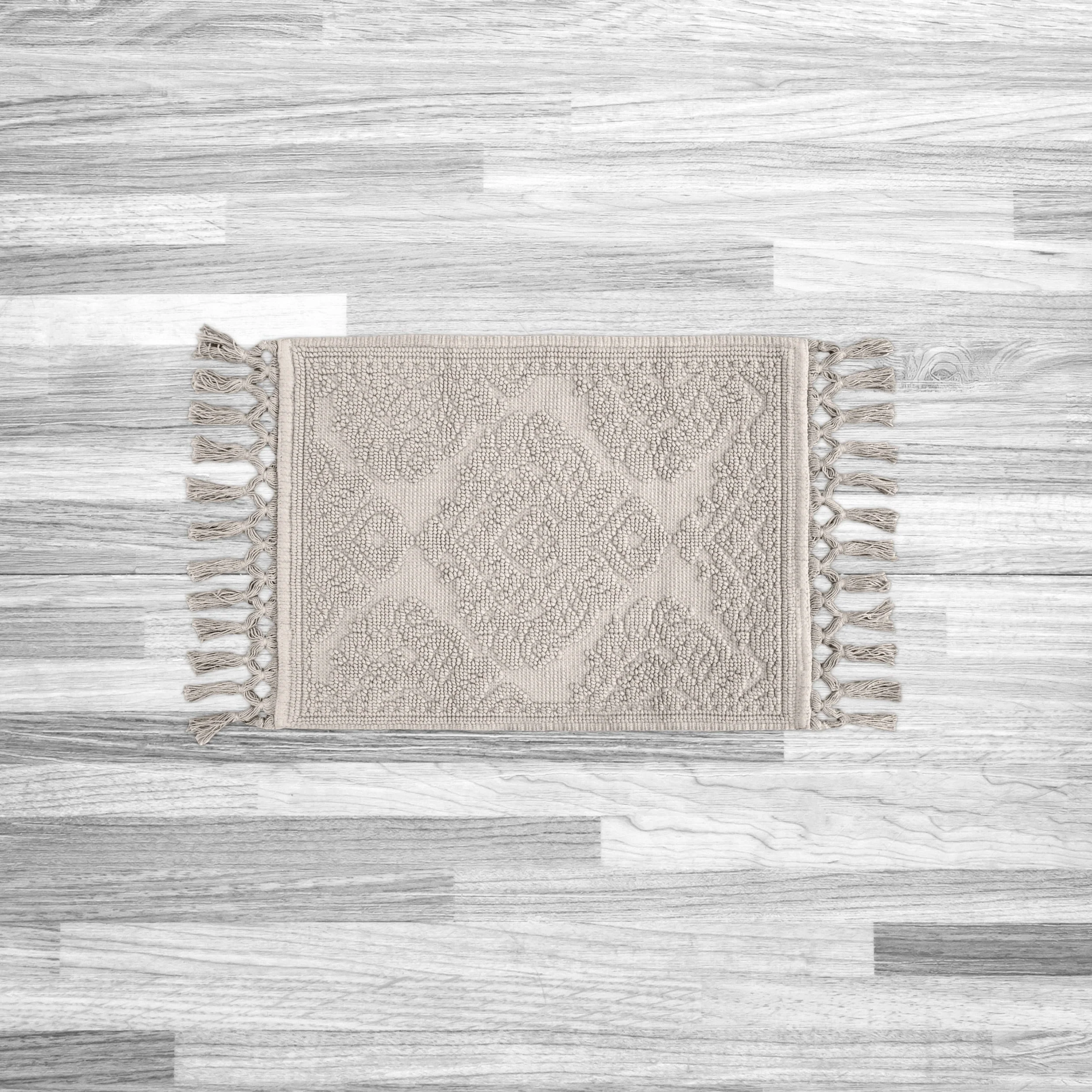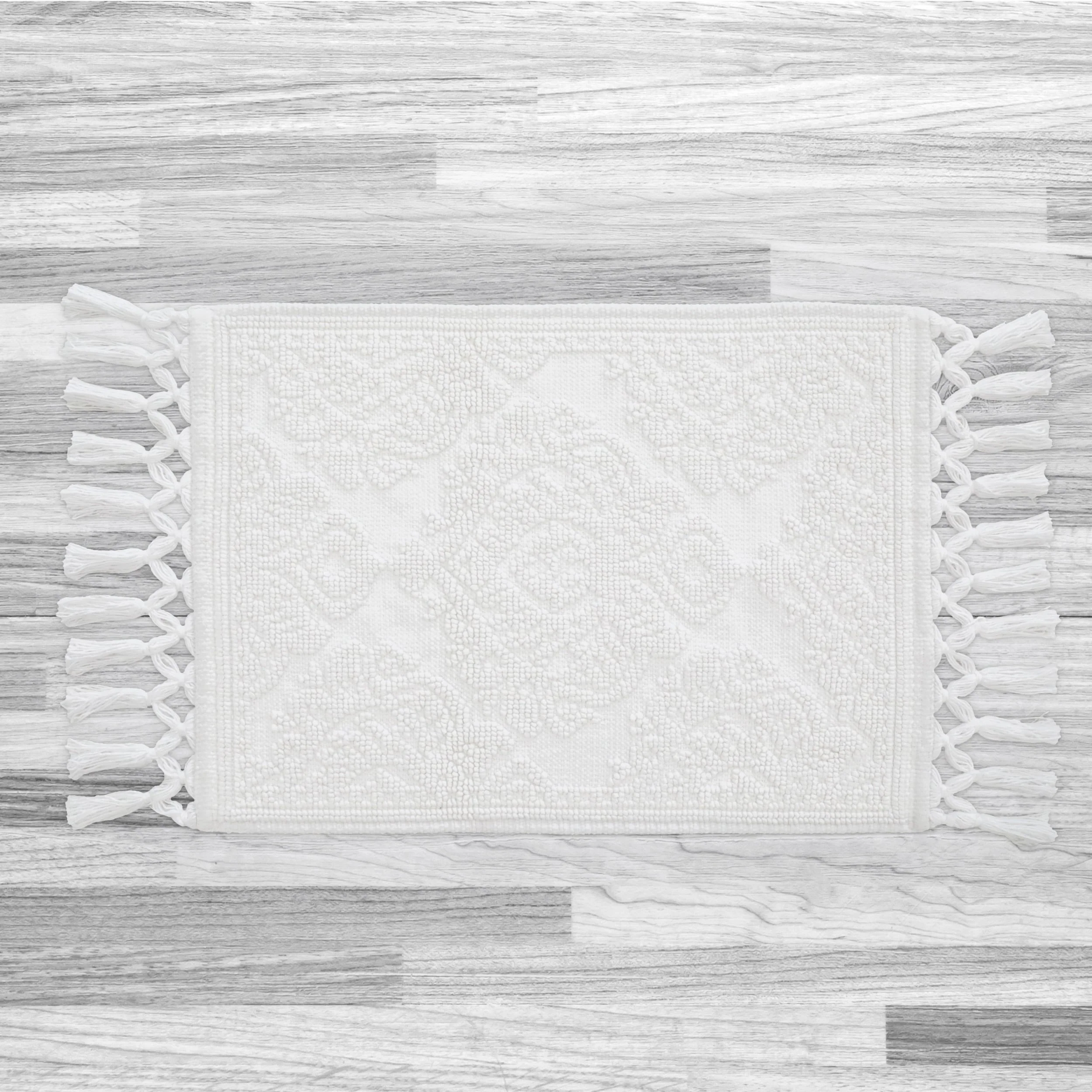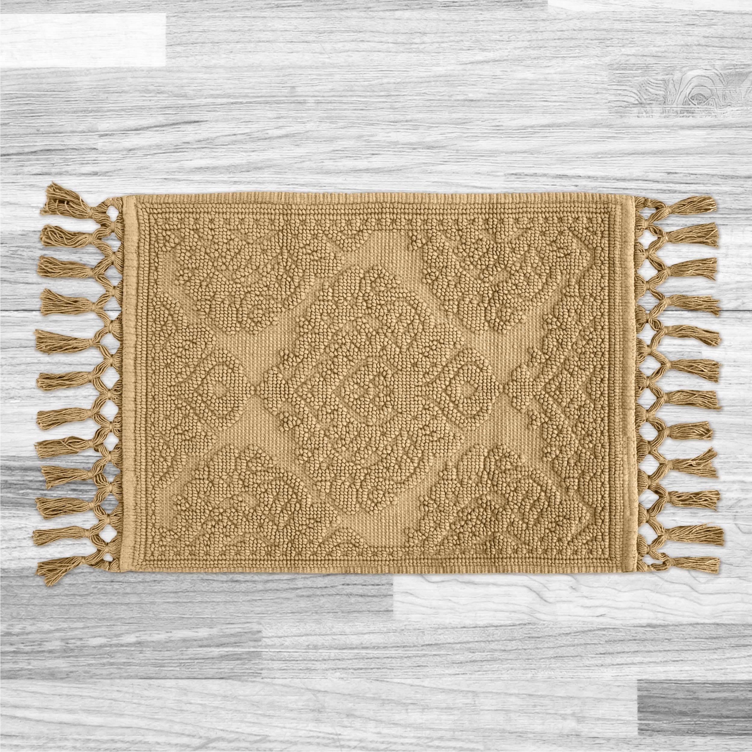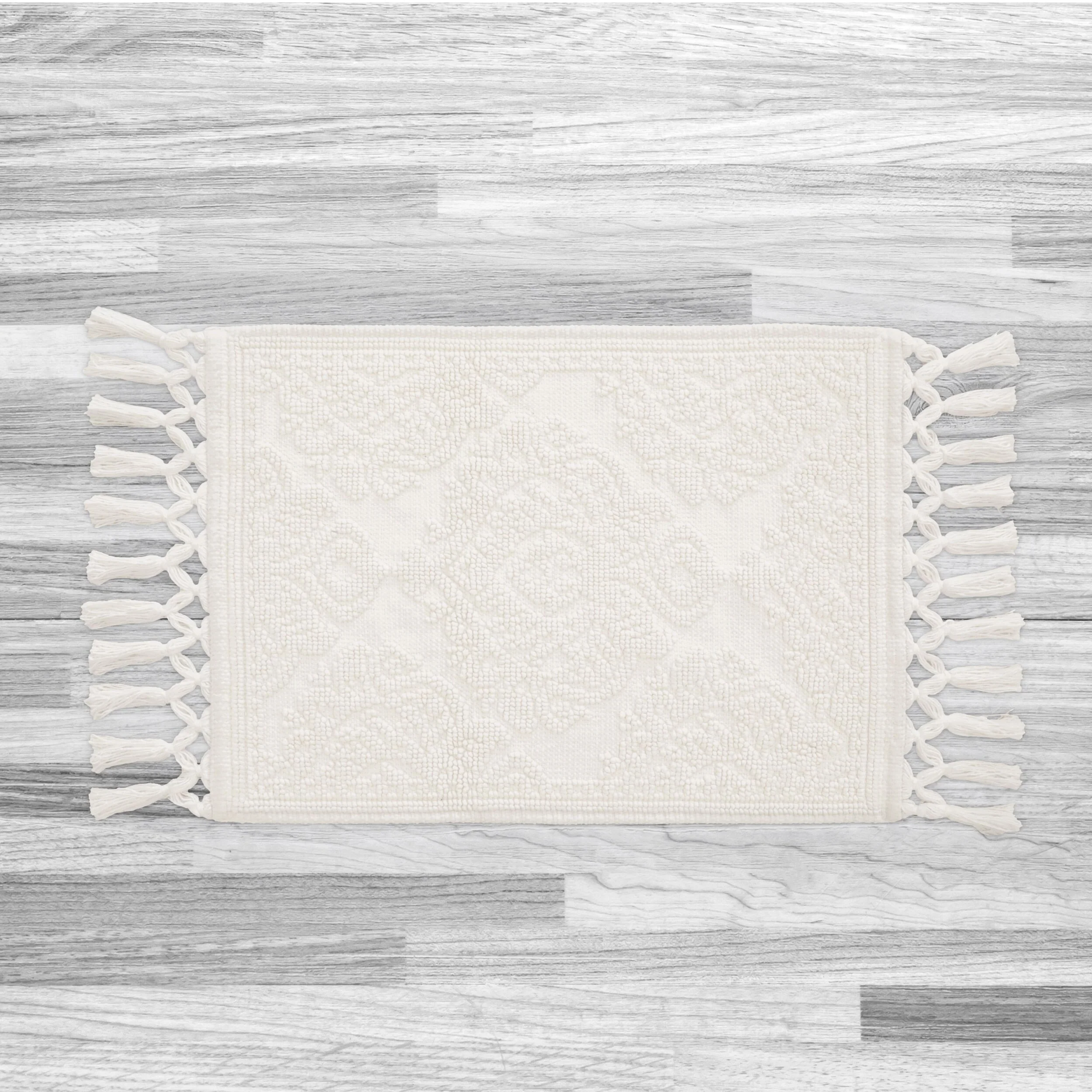 This Jean Pierre Collection is the perfect addition to your home with its cozy, bohemian and decadently soft bath rugs. Crafted with a geometric fashionable design that has a super soft and dashing knotted fringe tassels on both sides creating the perfect look that will never go out of style. Constructed with a tufted 100% cotton material, creating a soft to the touch experience that is thick and absorbent. This collection is available in many styles and sizes, making it the perfect addition to your home. It easily pairs with similar tones and patterns as well as different textures. When cleaning this natural bath rug, we recommend machine wash cold.