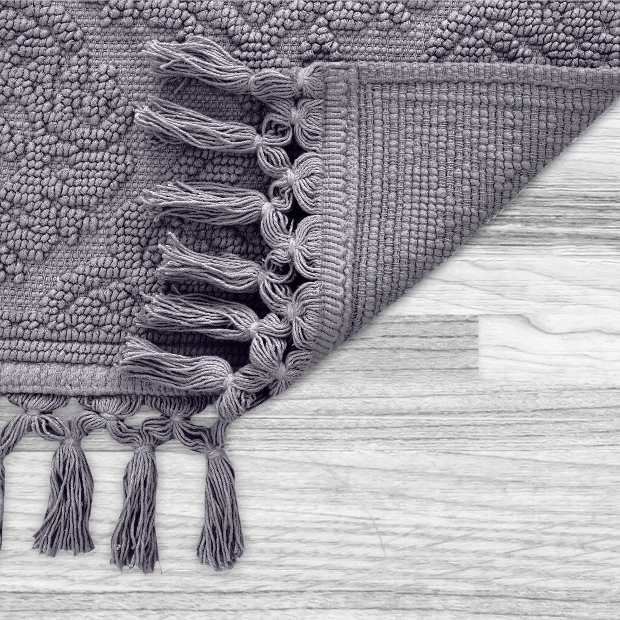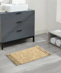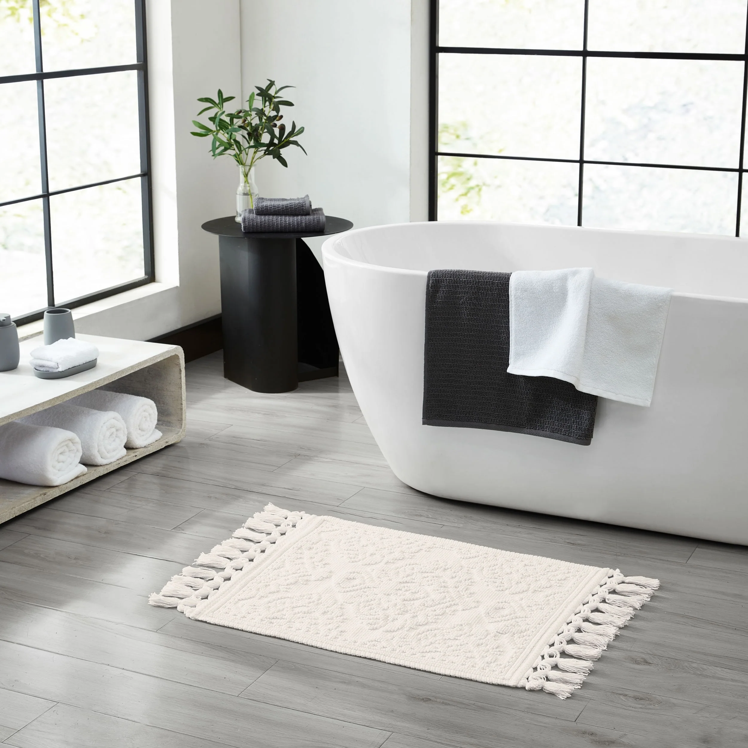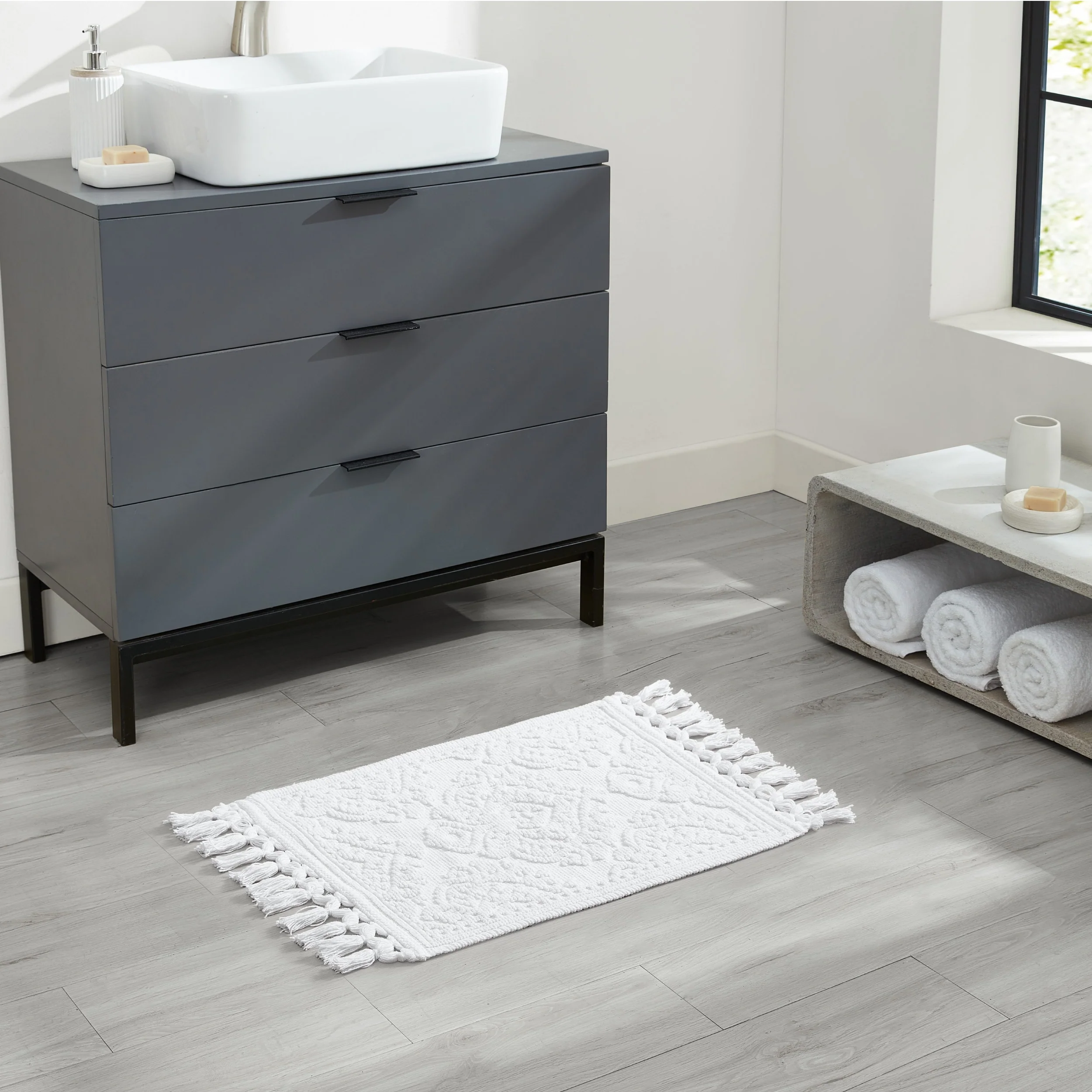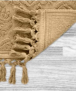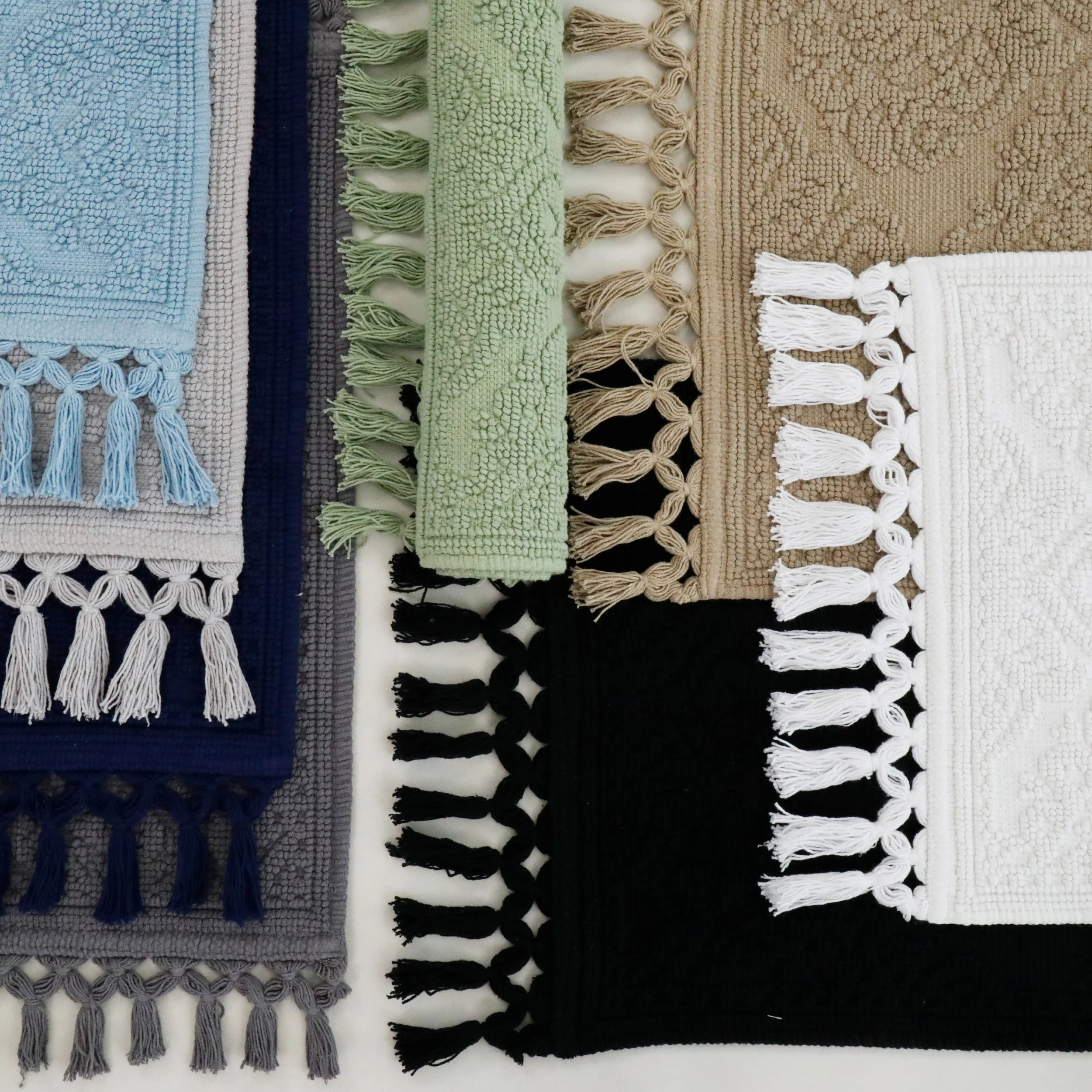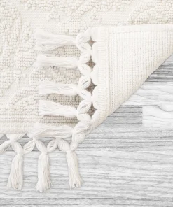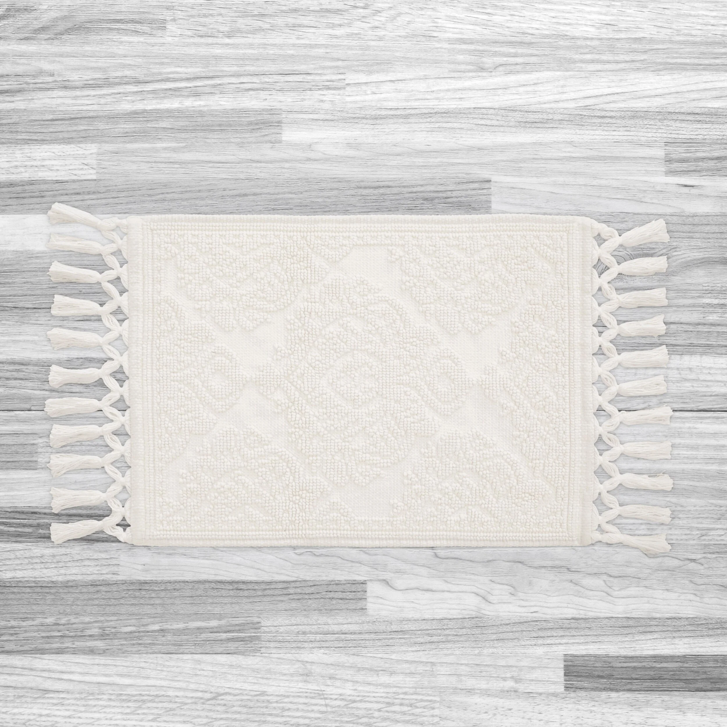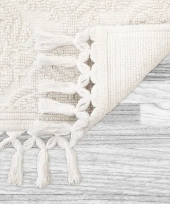 This Jean Pierre Collection is the perfect addition to your home with its cozy, bohemian and decadently soft bath rugs. Crafted with a geometric fashionable design that has a super soft and dashing knotted fringe tassels on both sides creating the perfect look that will never go out of style. Constructed with a tufted 100% cotton material, creating a soft to the touch experience that is thick and absorbent. This collection is available in many styles and sizes, making it the perfect addition to your home. It easily pairs with similar tones and patterns as well as different textures. When cleaning this natural bath rug, we recommend machine wash cold.