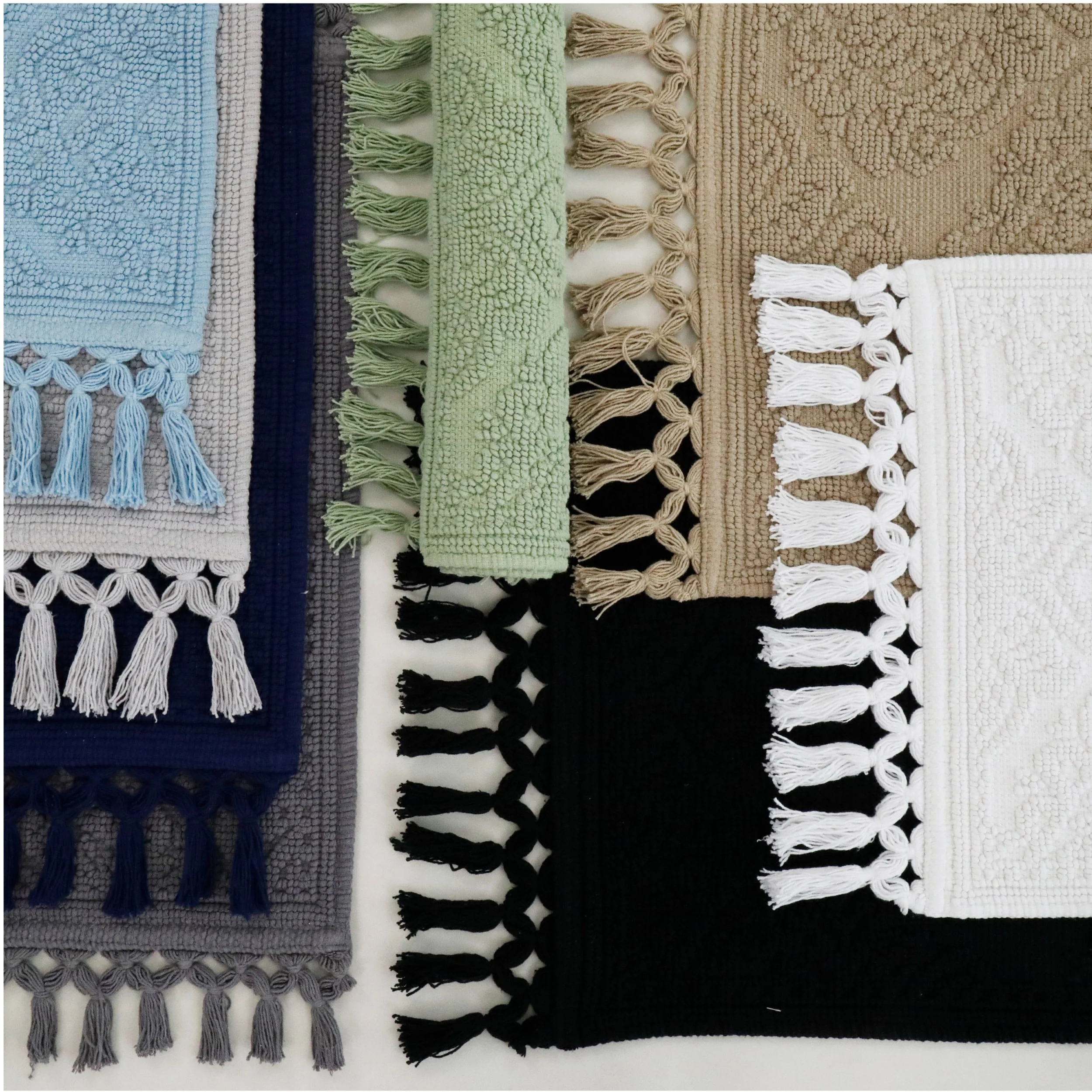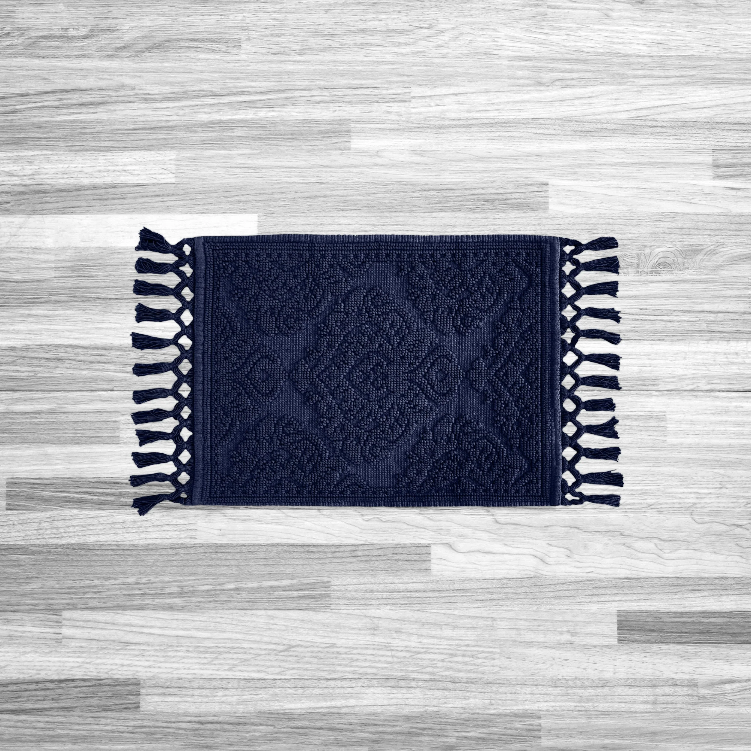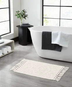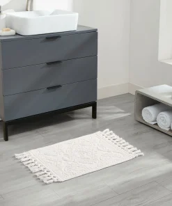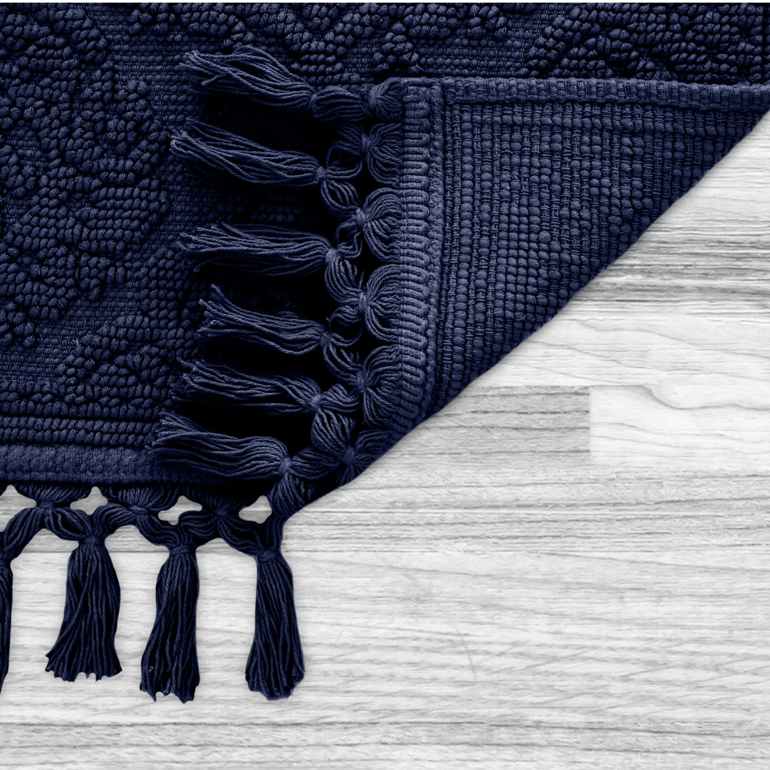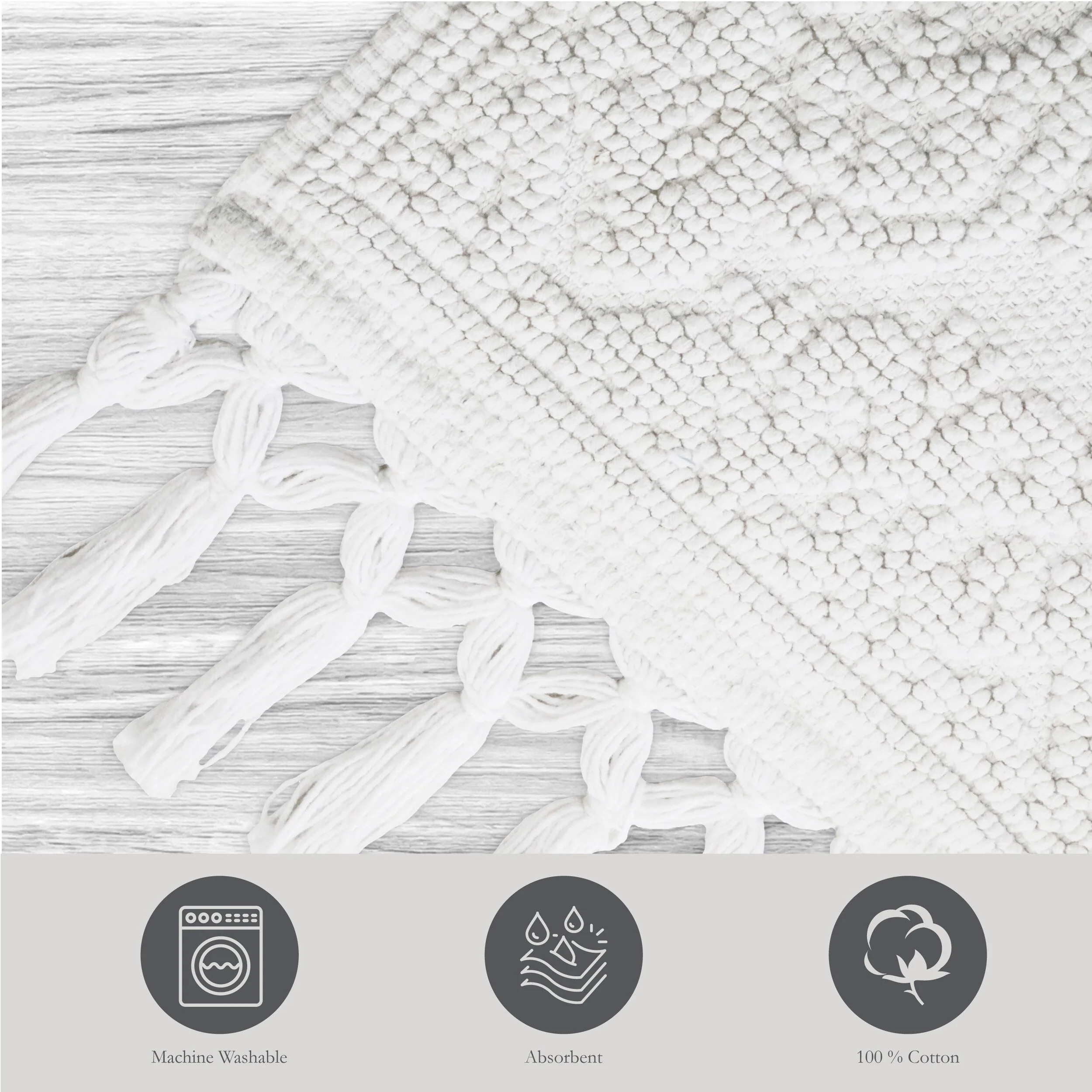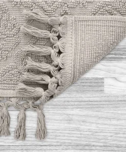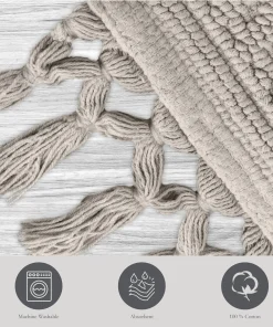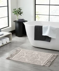 This Jean Pierre Collection is the perfect addition to your home with its cozy, bohemian and decadently soft bath rugs. Crafted with a geometric fashionable design that has a super soft and dashing knotted fringe tassels on both sides creating the perfect look that will never go out of style. Constructed with a tufted 100% cotton material, creating a soft to the touch experience that is thick and absorbent. This collection is available in many styles and sizes, making it the perfect addition to your home. It easily pairs with similar tones and patterns as well as different textures. When cleaning this natural bath rug, we recommend machine wash cold.