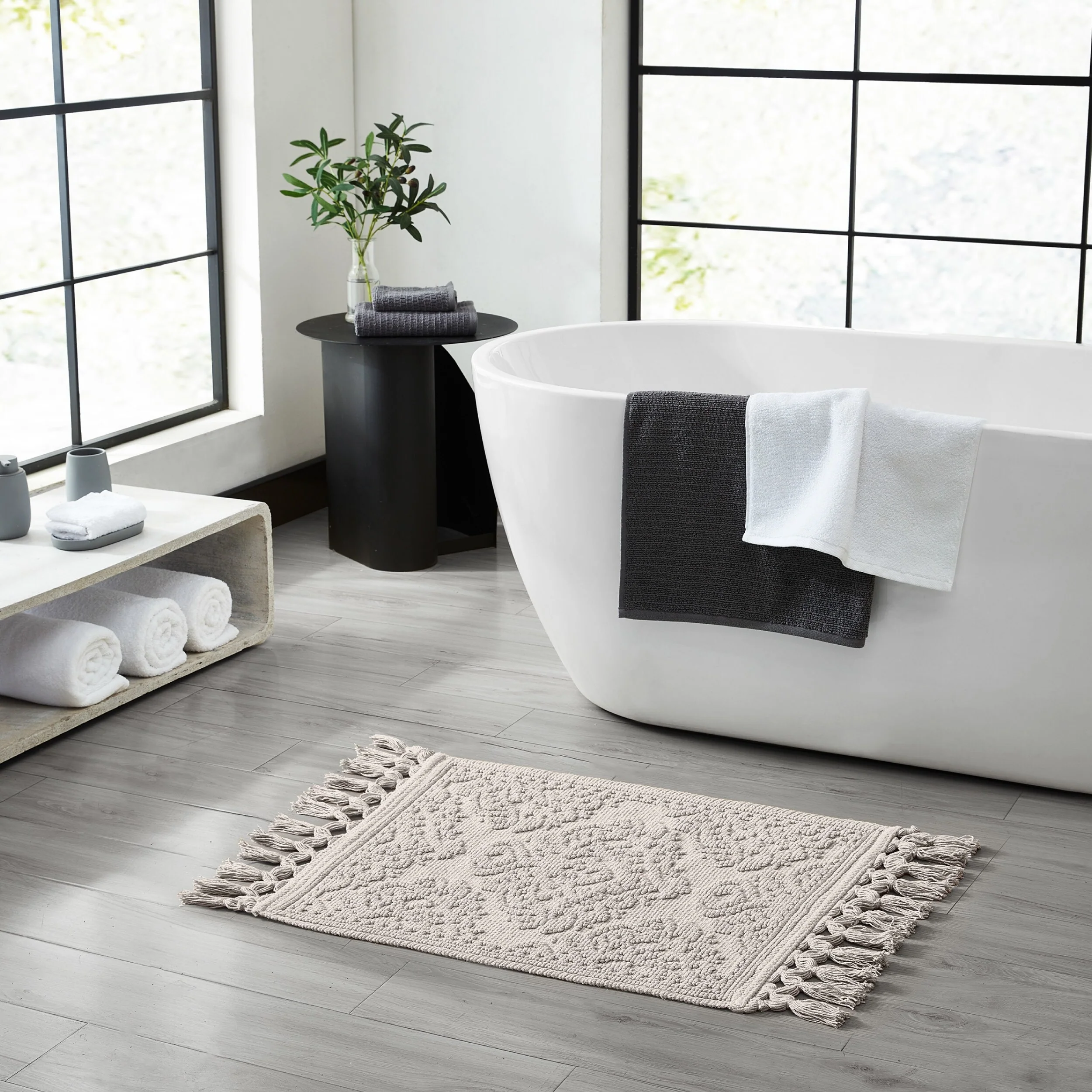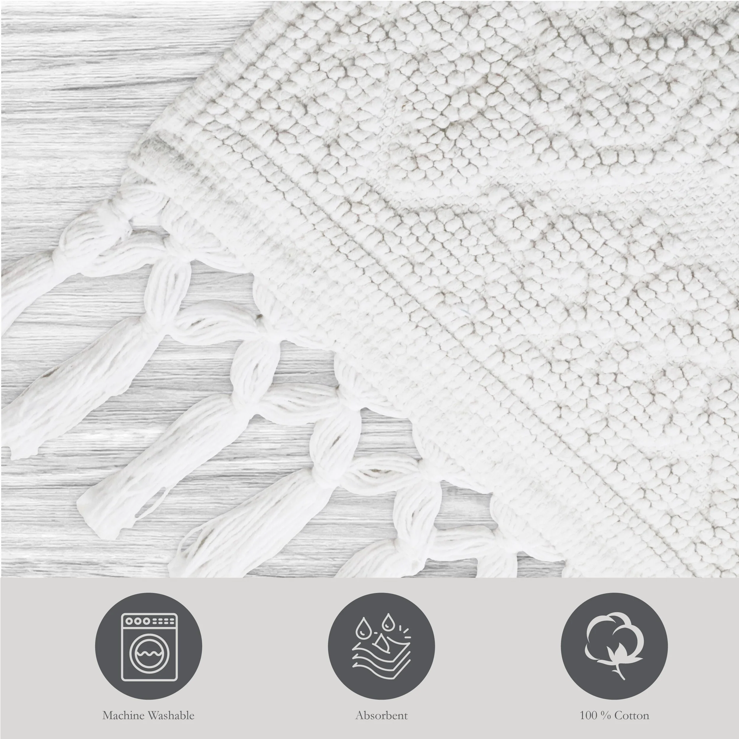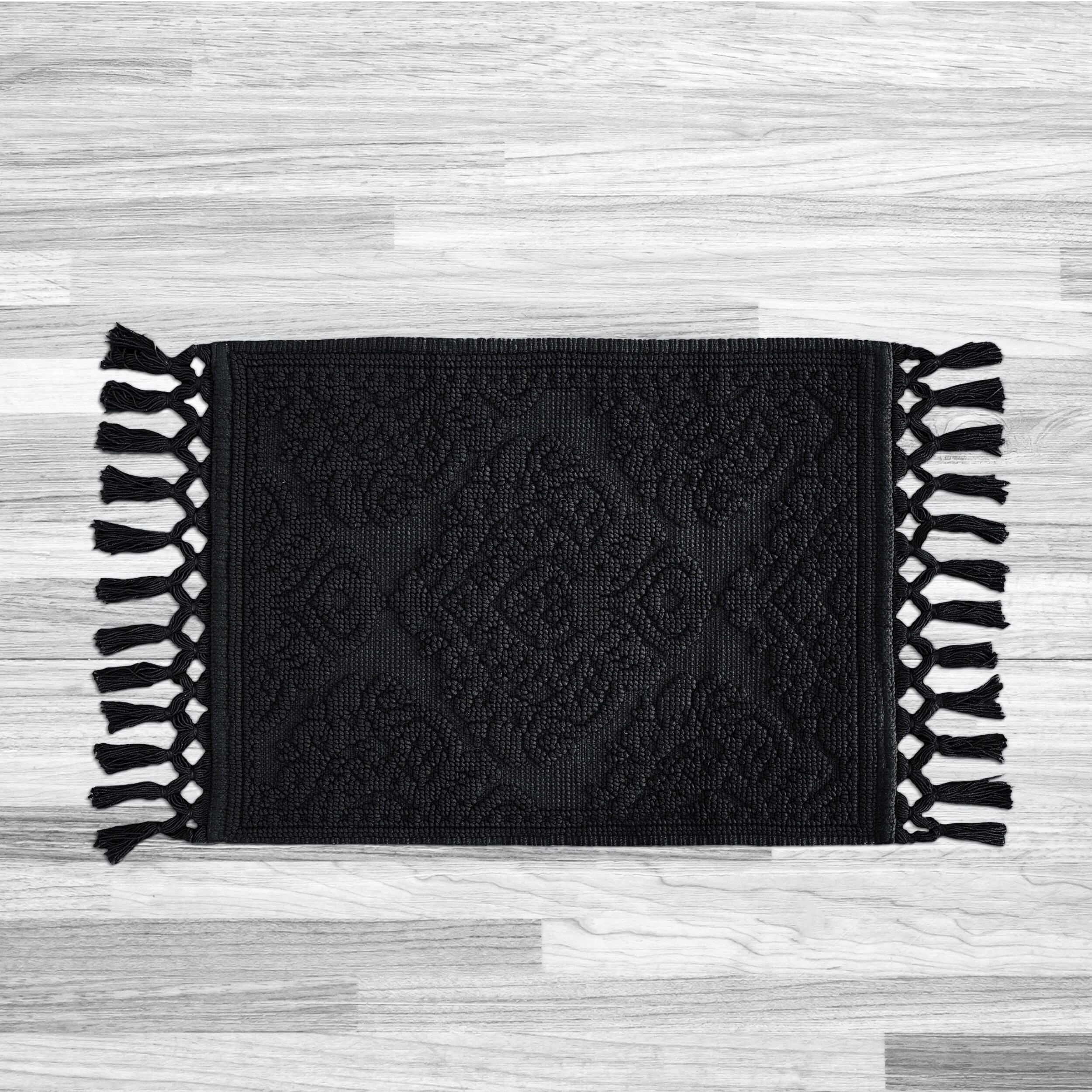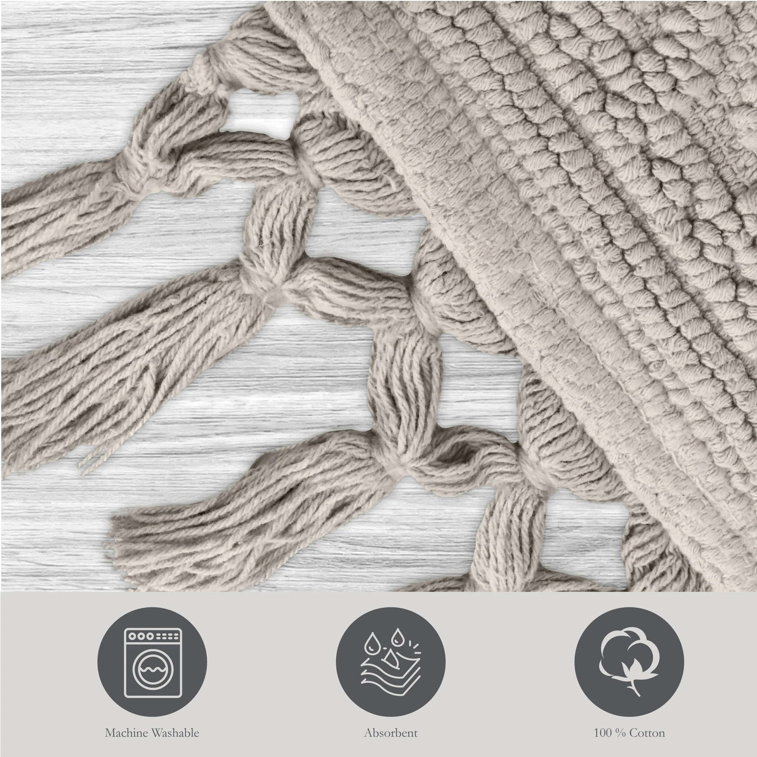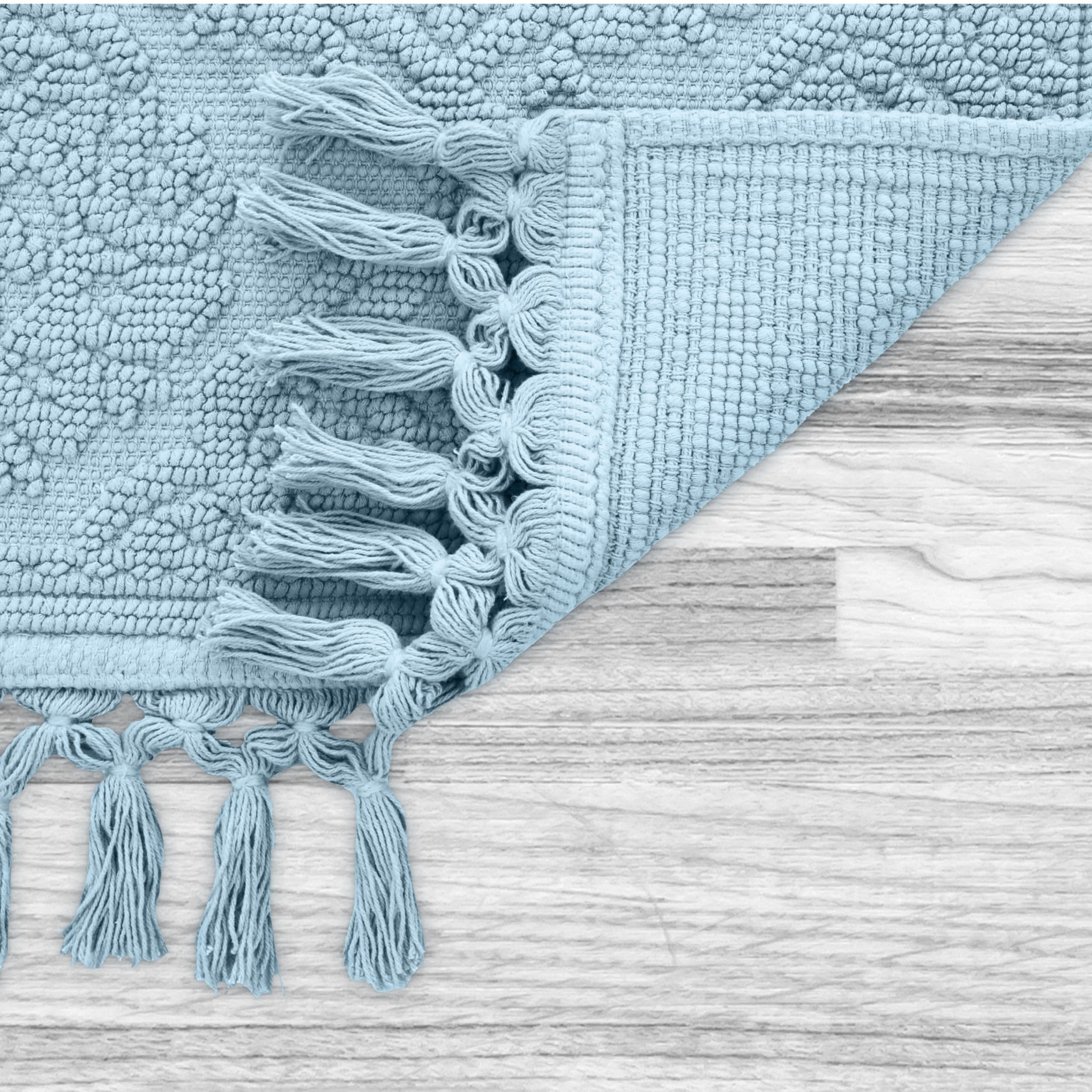 This Jean Pierre Collection is the perfect addition to your home with its cozy, bohemian and decadently soft bath rugs. Crafted with a geometric fashionable design that has a super soft and dashing knotted fringe tassels on both sides creating the perfect look that will never go out of style. Constructed with a tufted 100% cotton material, creating a soft to the touch experience that is thick and absorbent. This collection is available in many styles and sizes, making it the perfect addition to your home. It easily pairs with similar tones and patterns as well as different textures. When cleaning this natural bath rug, we recommend machine wash cold.