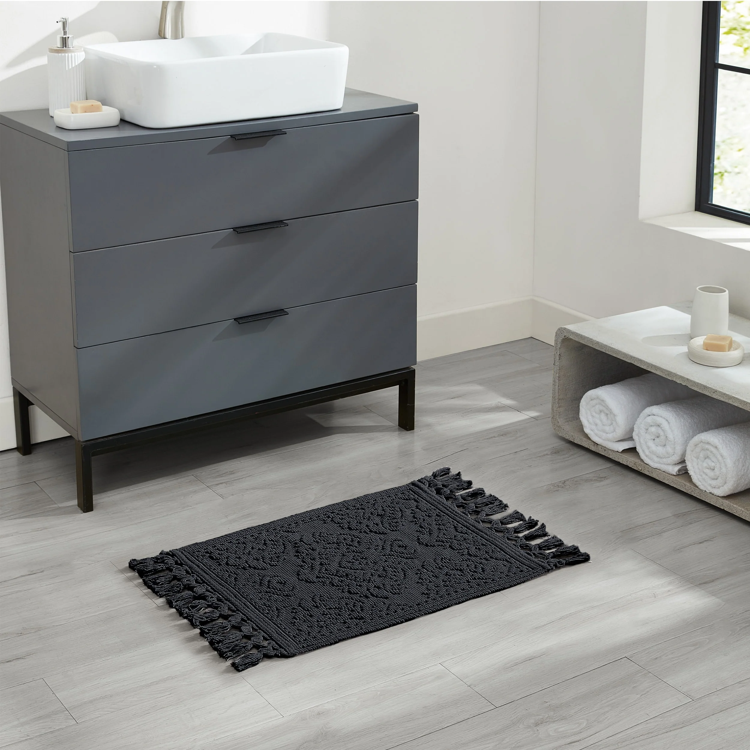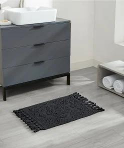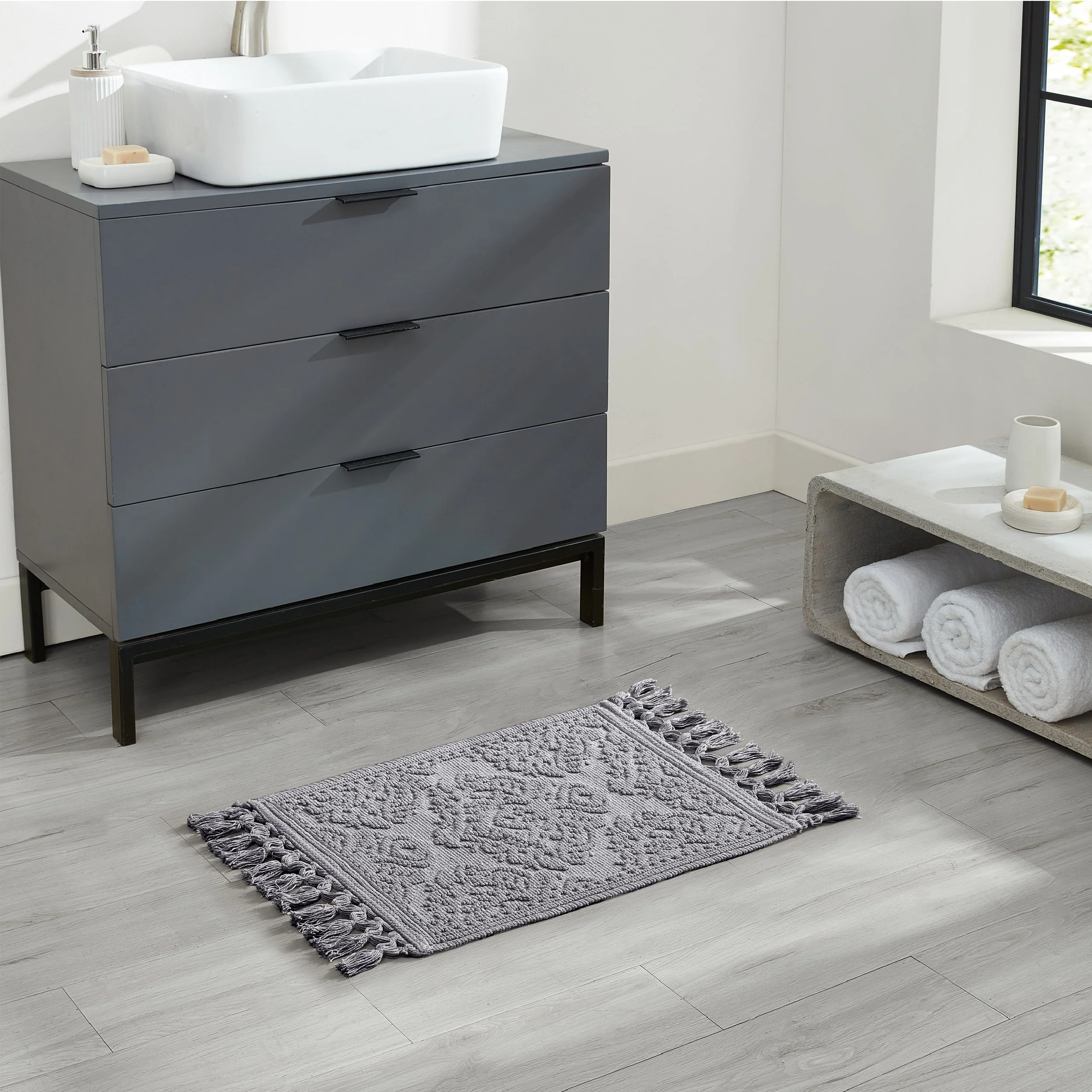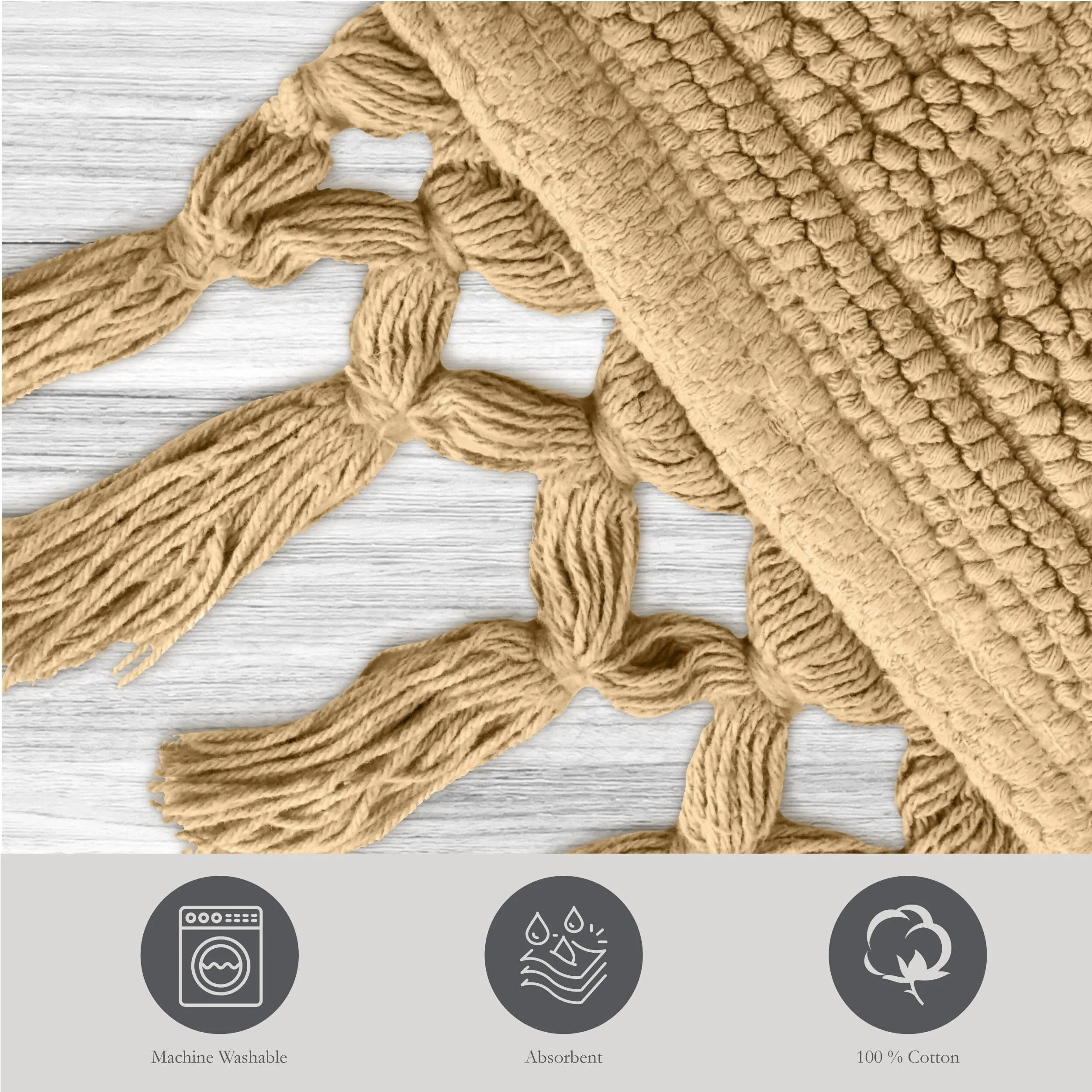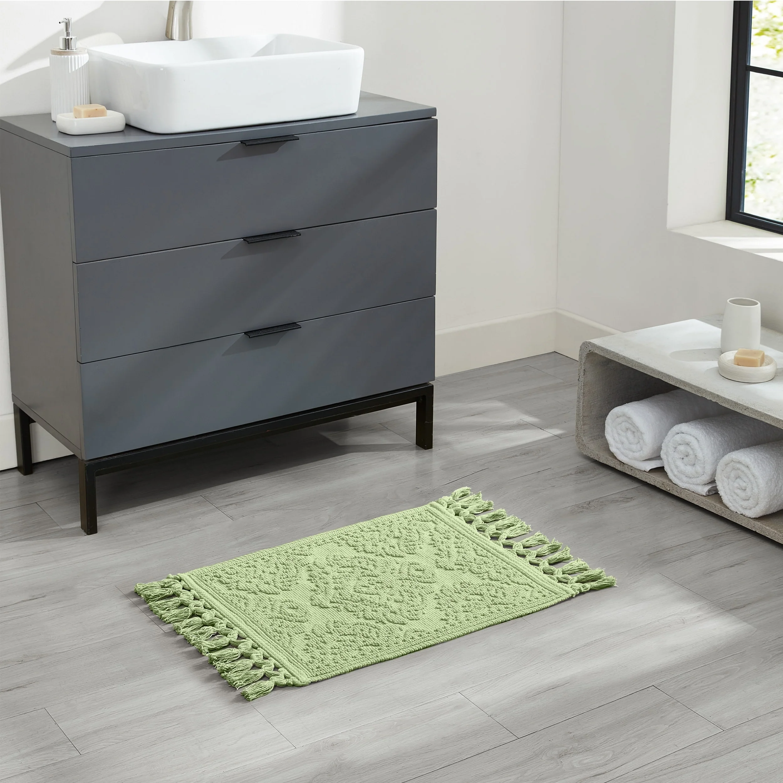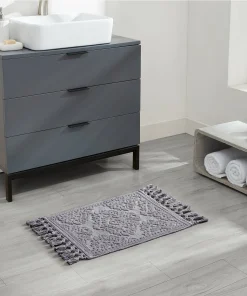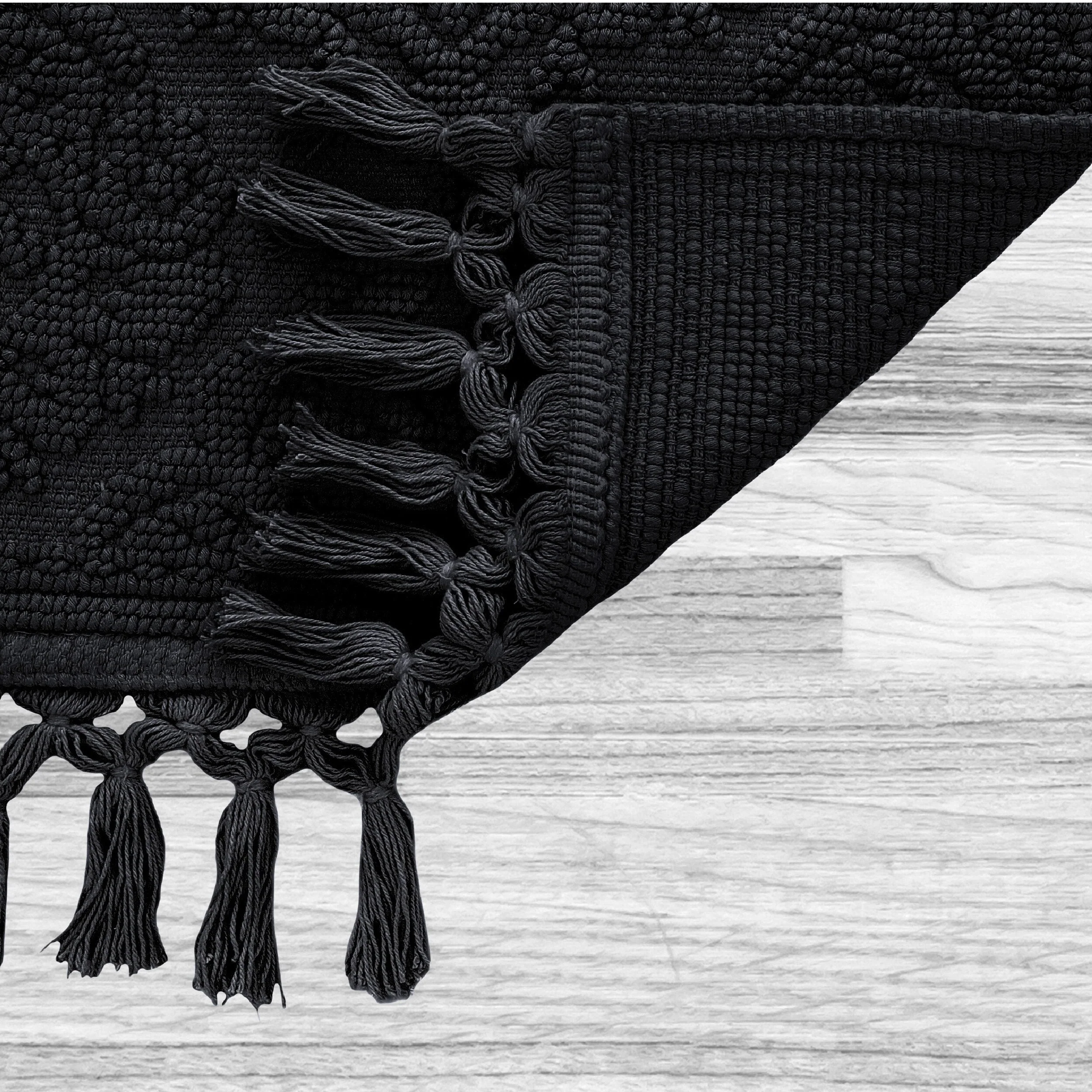 This Jean Pierre Collection is the perfect addition to your home with its cozy, bohemian and decadently soft bath rugs. Crafted with a geometric fashionable design that has a super soft and dashing knotted fringe tassels on both sides creating the perfect look that will never go out of style. Constructed with a tufted 100% cotton material, creating a soft to the touch experience that is thick and absorbent. This collection is available in many styles and sizes, making it the perfect addition to your home. It easily pairs with similar tones and patterns as well as different textures. When cleaning this natural bath rug, we recommend machine wash cold.