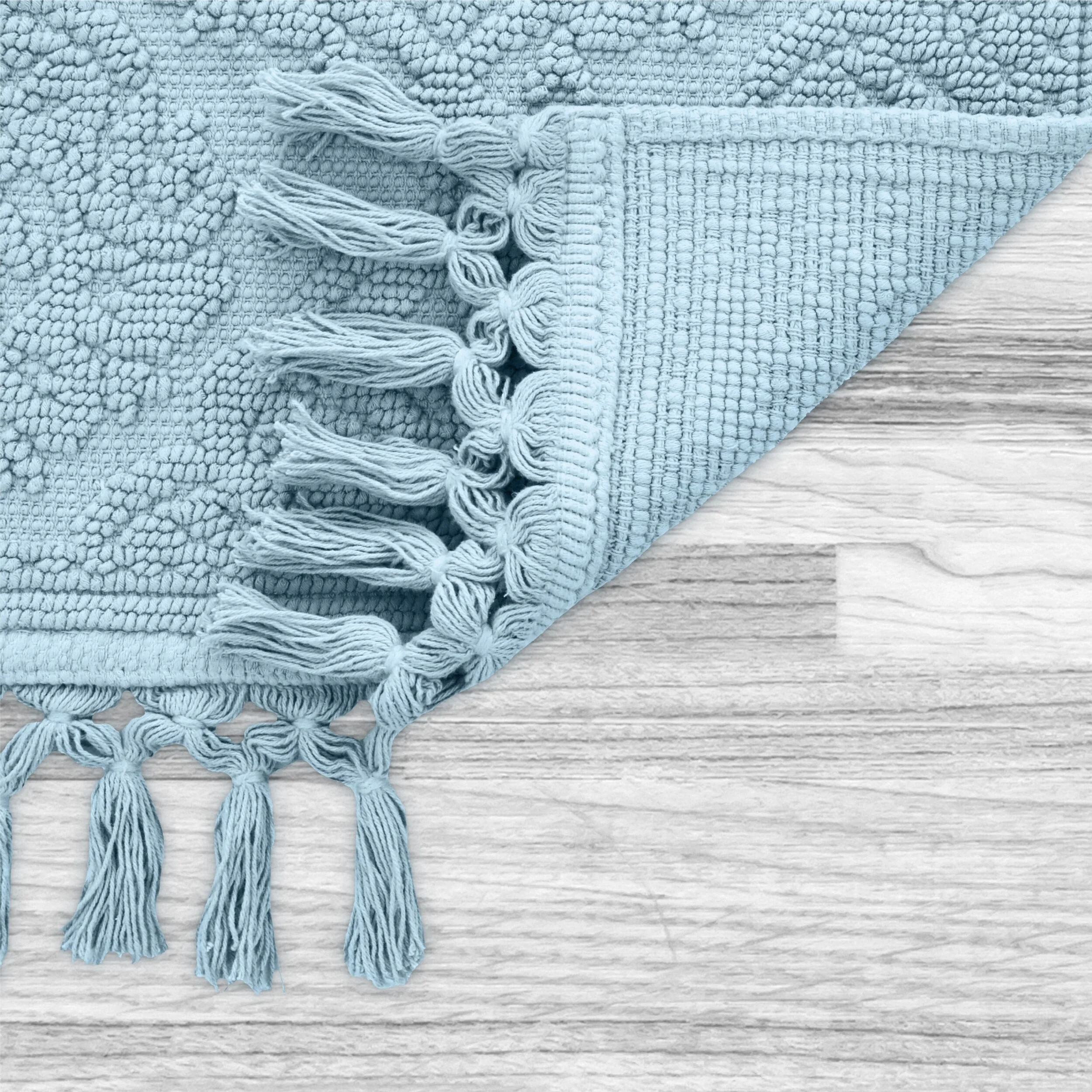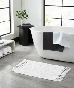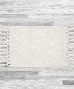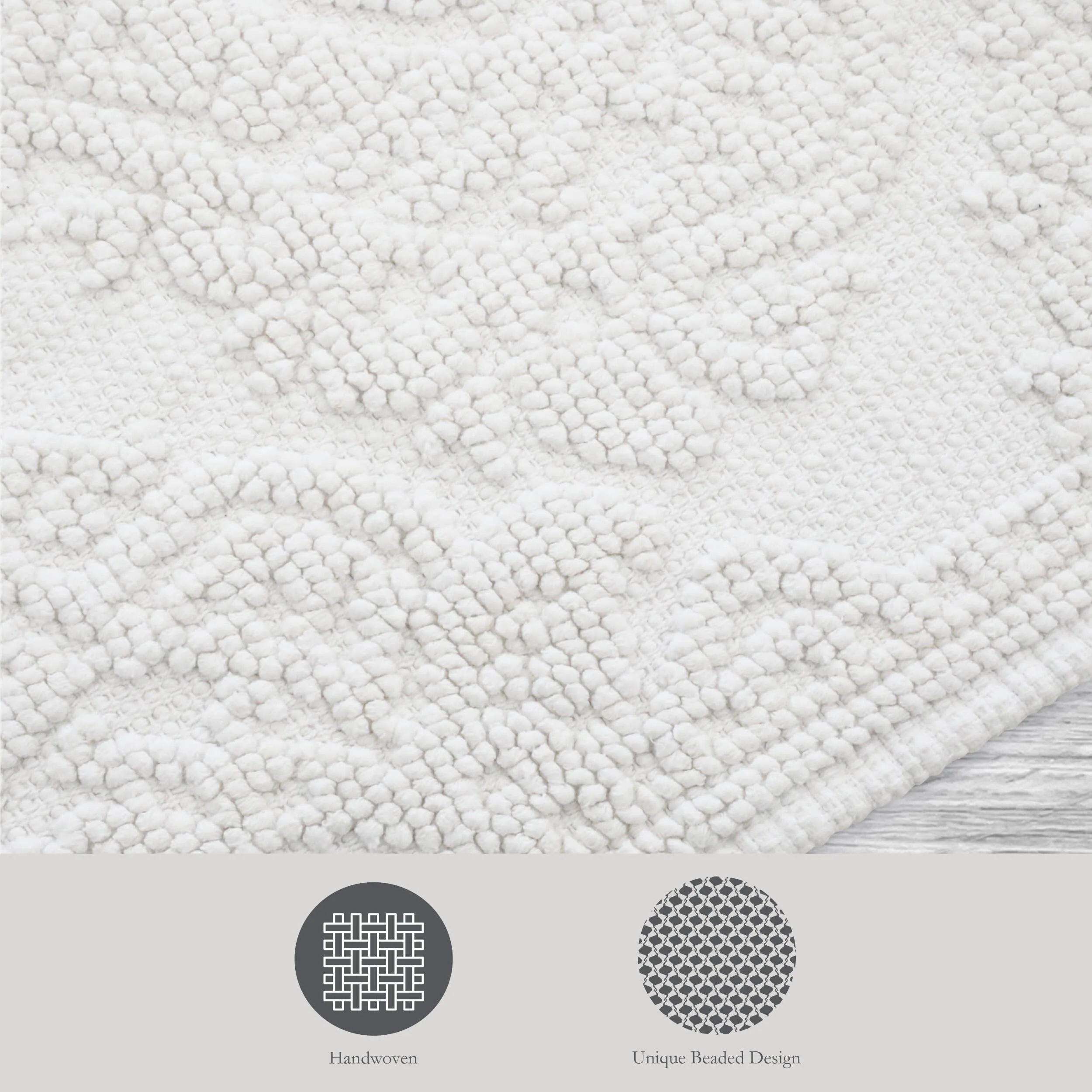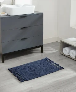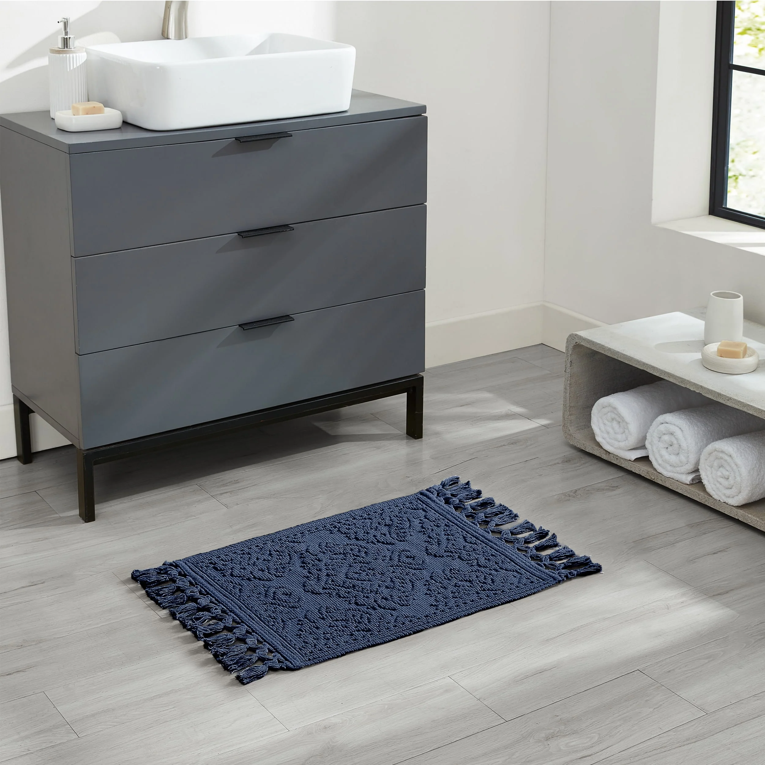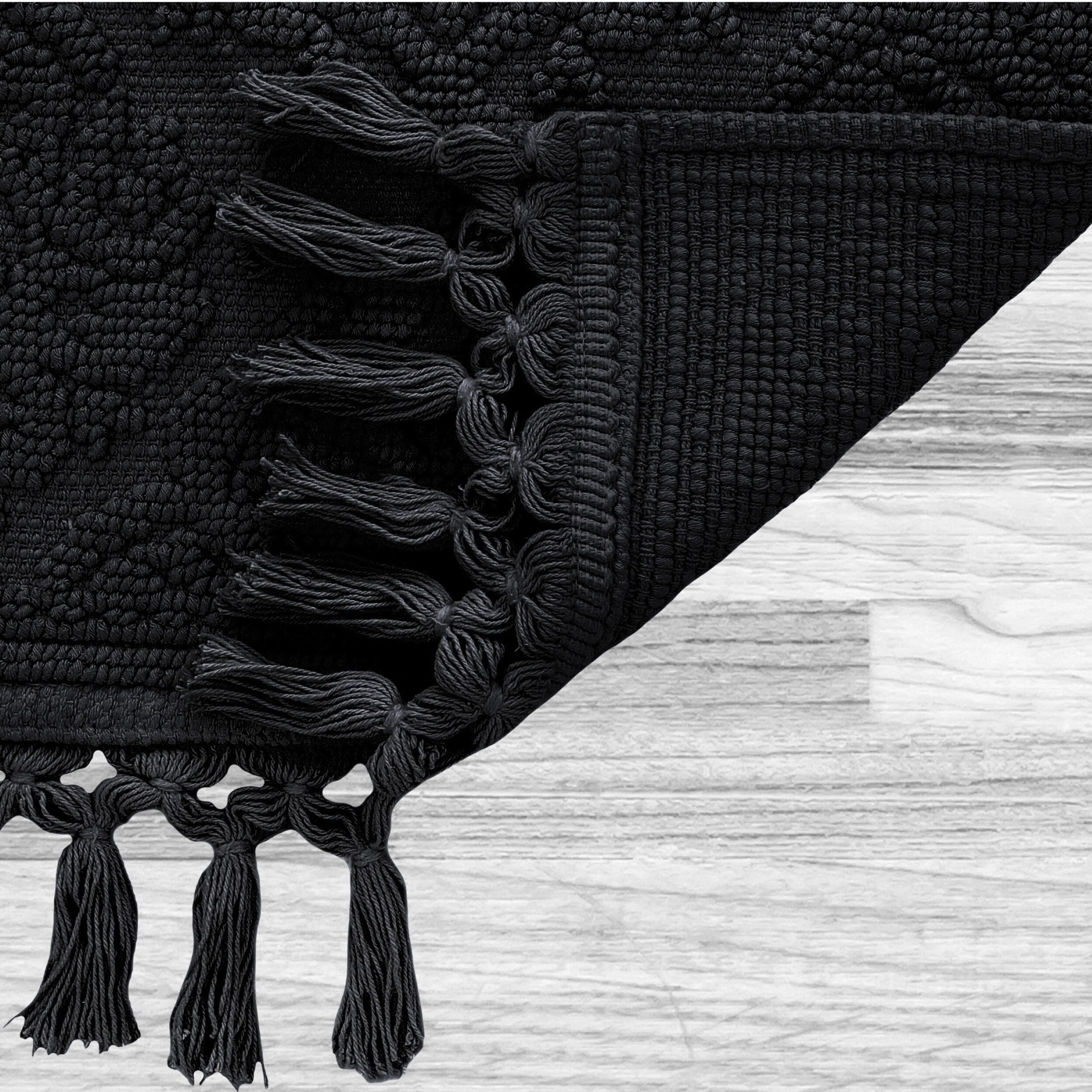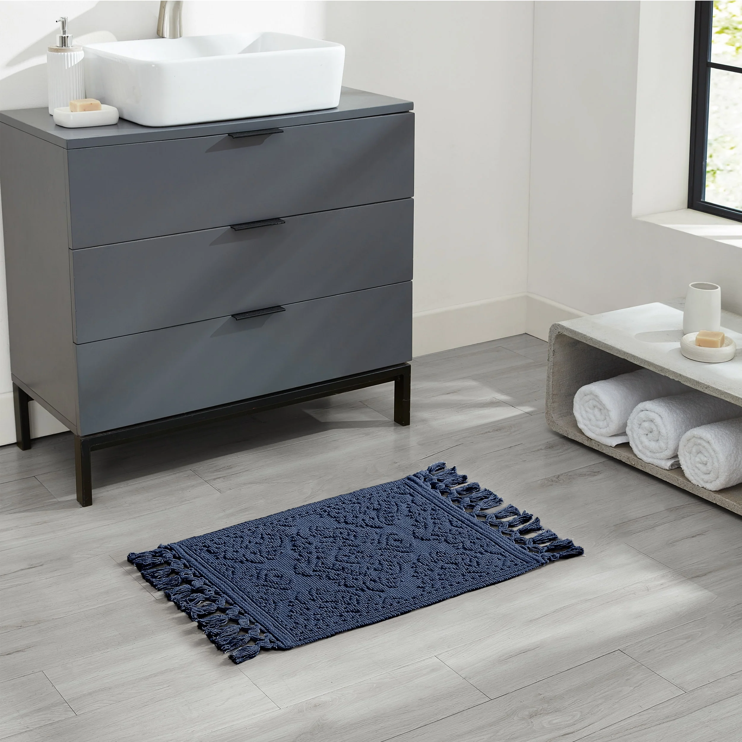 This Jean Pierre Collection is the perfect addition to your home with its cozy, bohemian and decadently soft bath rugs. Crafted with a geometric fashionable design that has a super soft and dashing knotted fringe tassels on both sides creating the perfect look that will never go out of style. Constructed with a tufted 100% cotton material, creating a soft to the touch experience that is thick and absorbent. This collection is available in many styles and sizes, making it the perfect addition to your home. It easily pairs with similar tones and patterns as well as different textures. When cleaning this natural bath rug, we recommend machine wash cold.