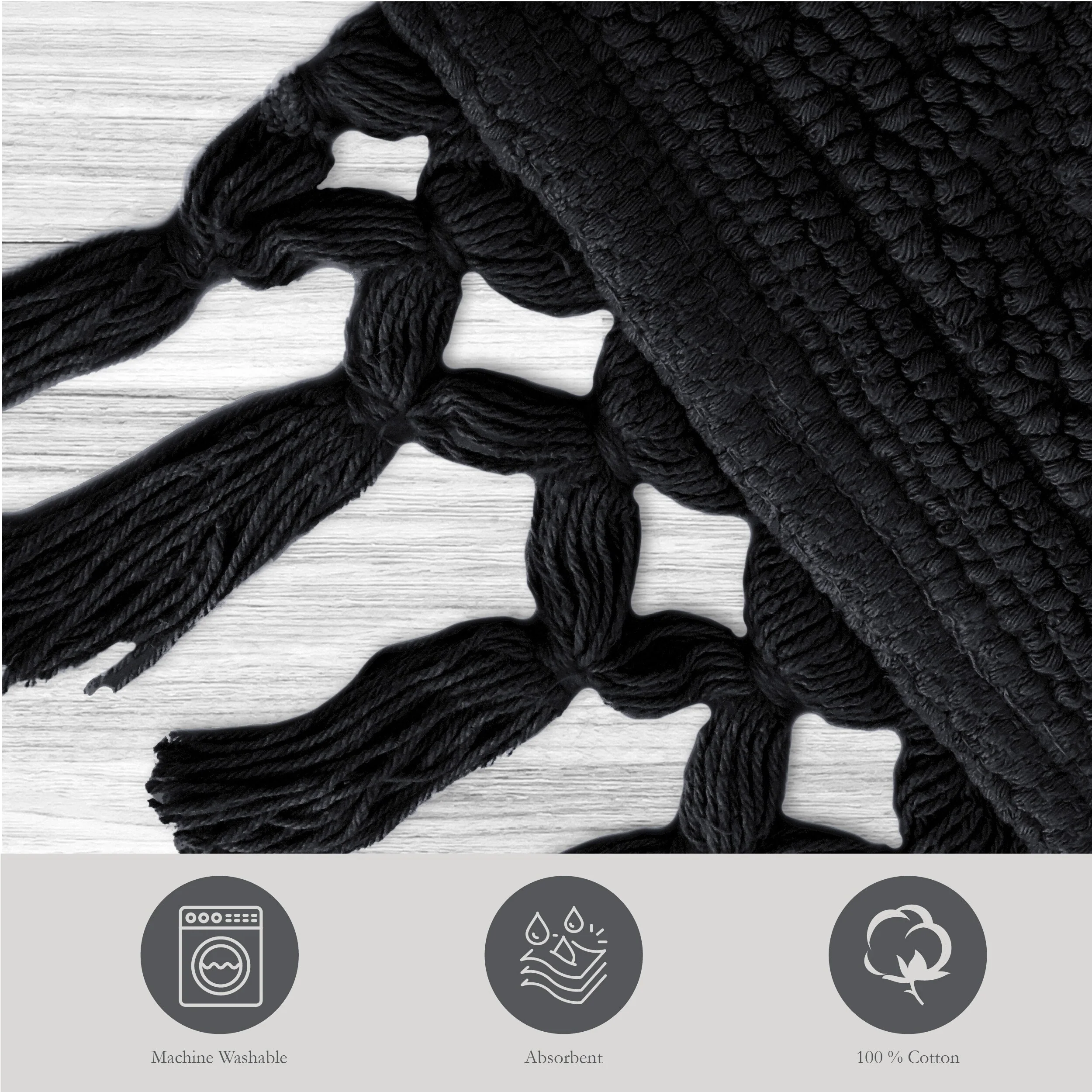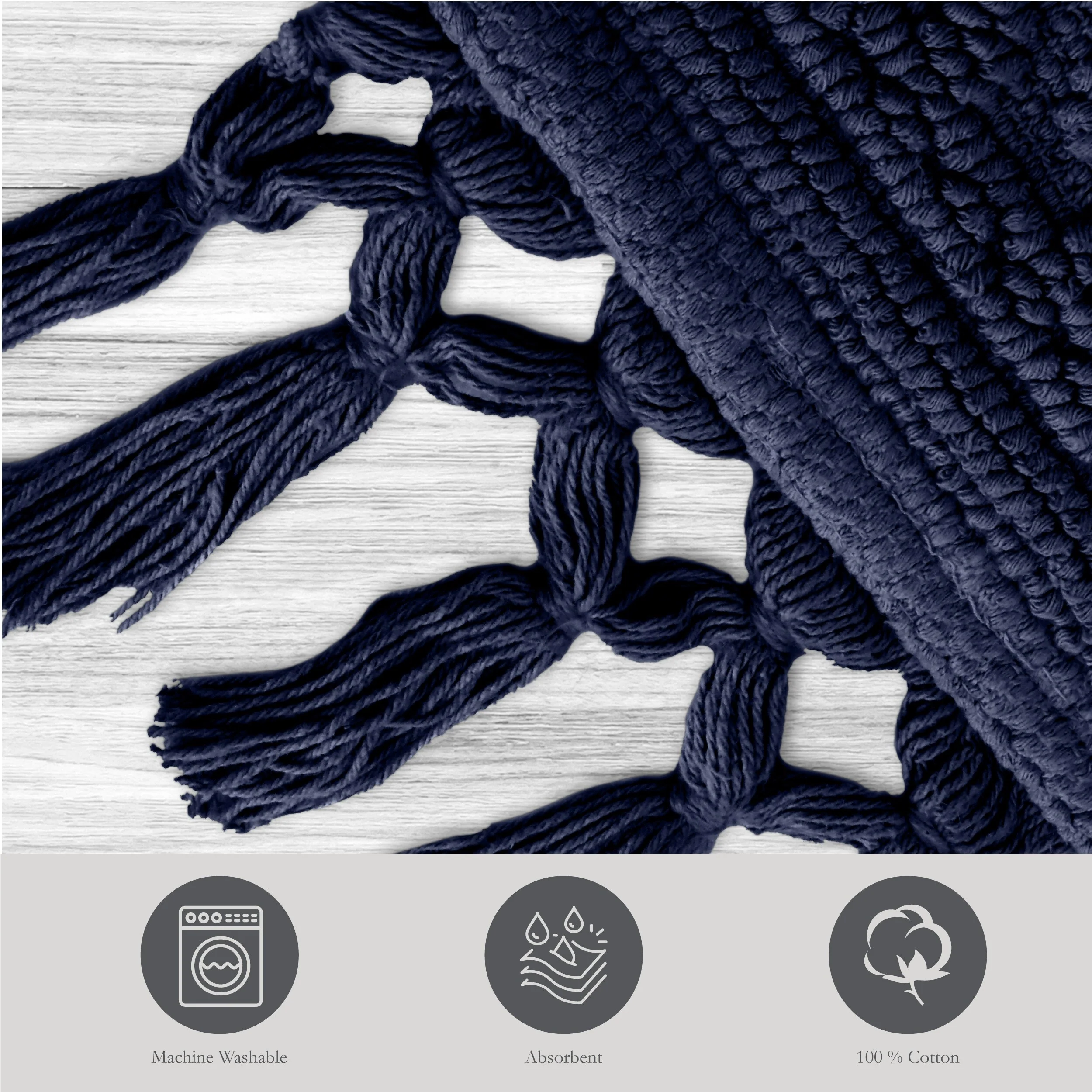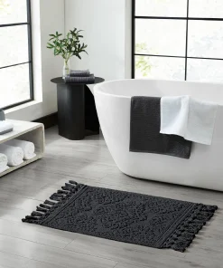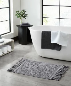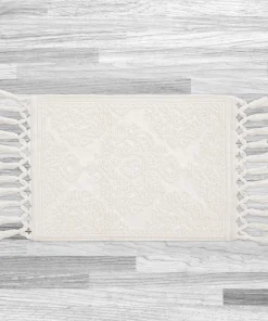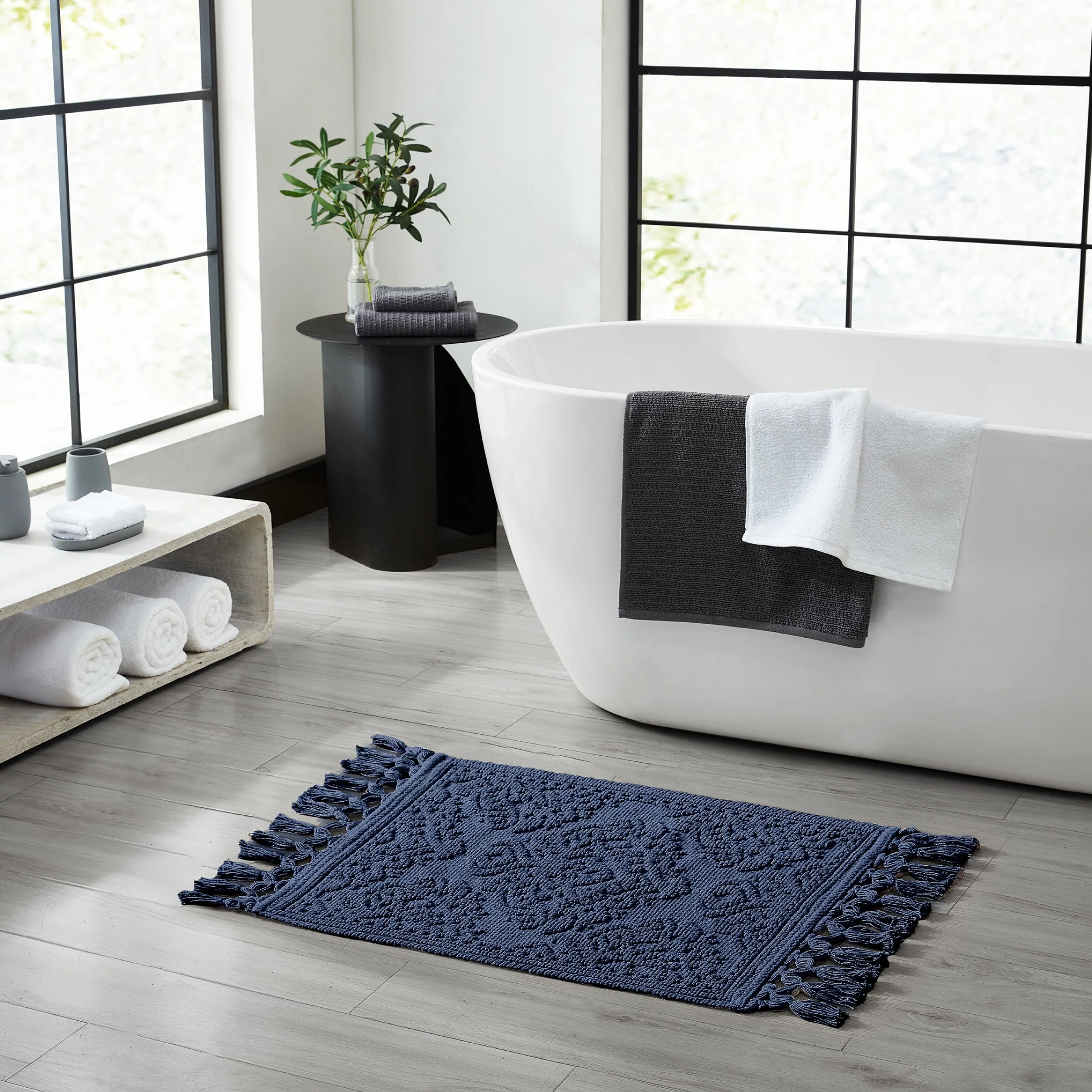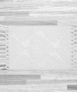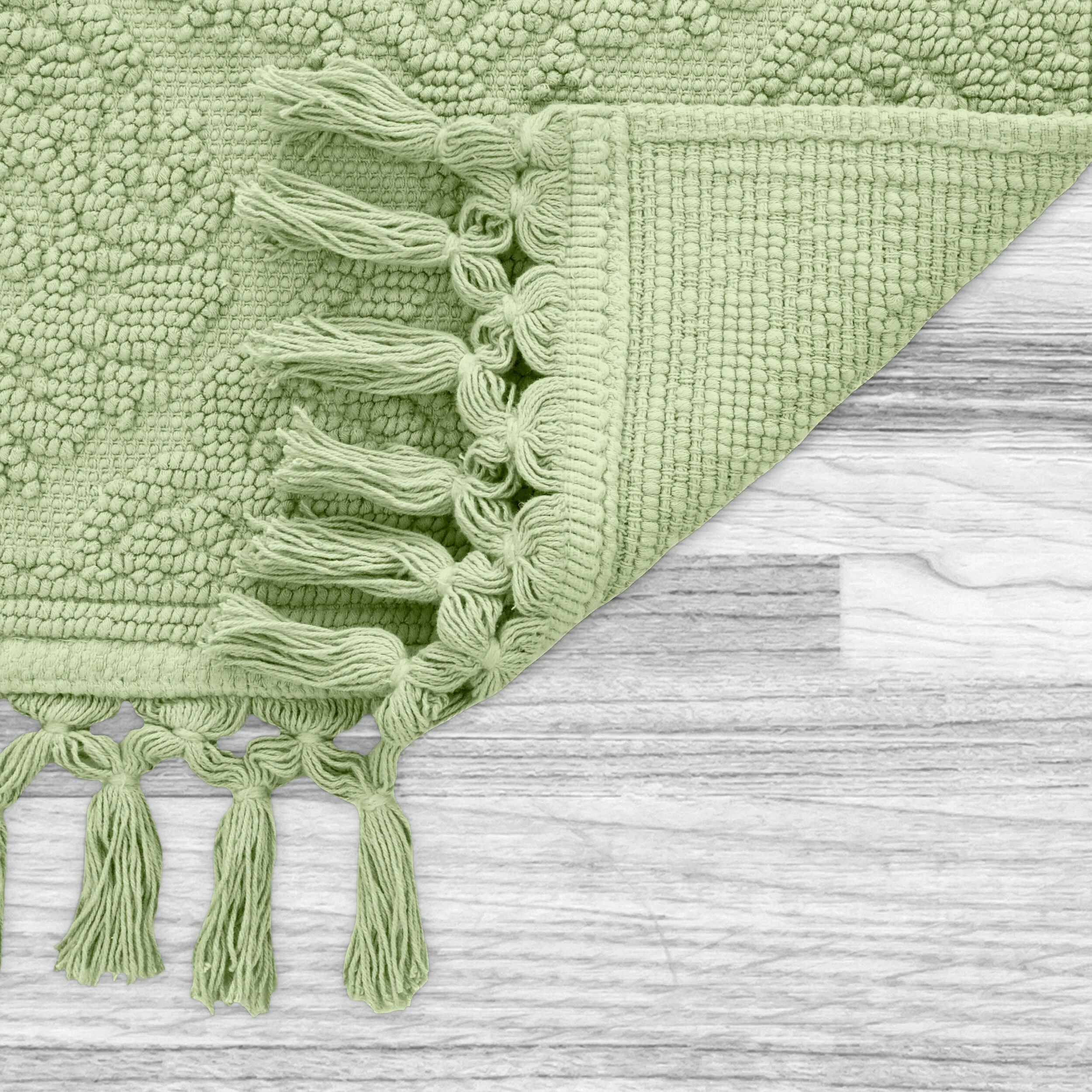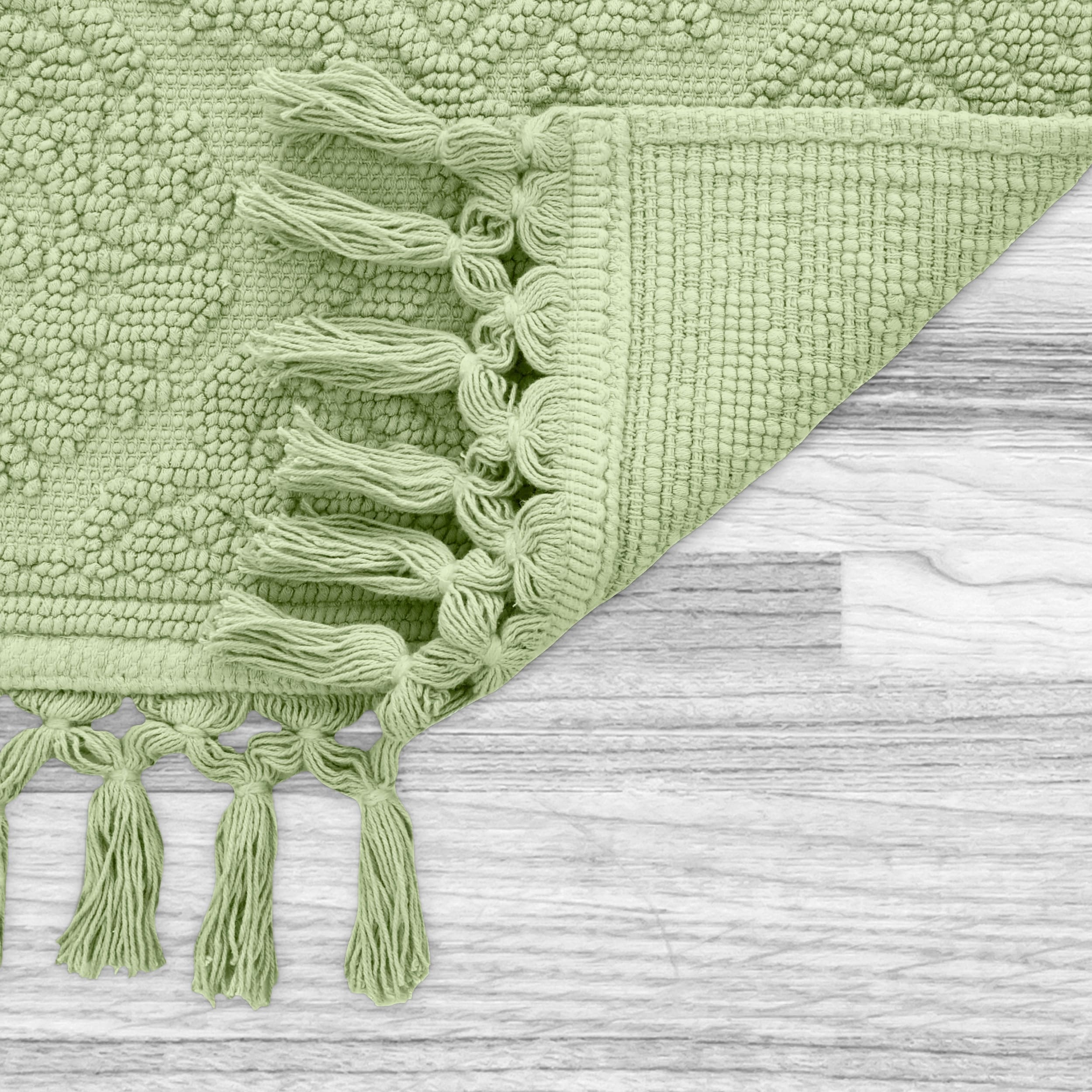 This Jean Pierre Collection is the perfect addition to your home with its cozy, bohemian and decadently soft bath rugs. Crafted with a geometric fashionable design that has a super soft and dashing knotted fringe tassels on both sides creating the perfect look that will never go out of style. Constructed with a tufted 100% cotton material, creating a soft to the touch experience that is thick and absorbent. This collection is available in many styles and sizes, making it the perfect addition to your home. It easily pairs with similar tones and patterns as well as different textures. When cleaning this natural bath rug, we recommend machine wash cold.