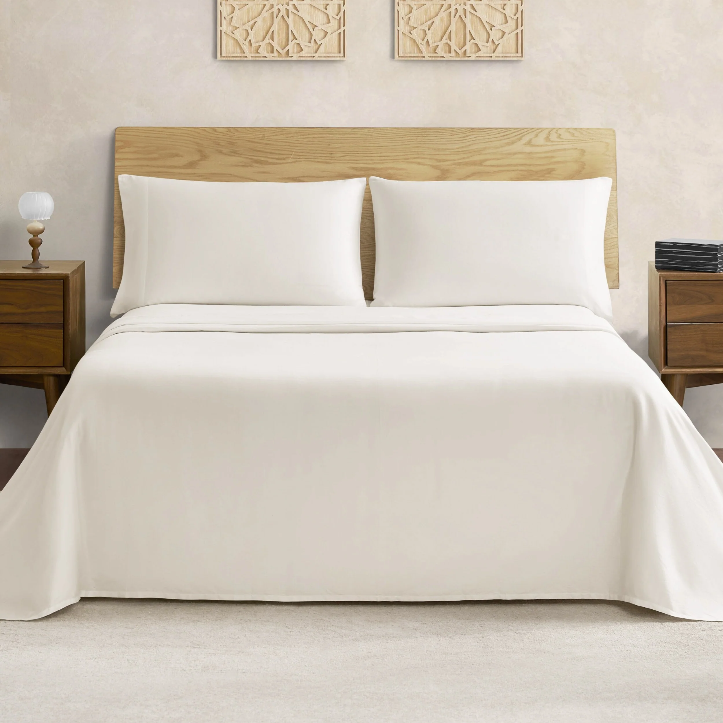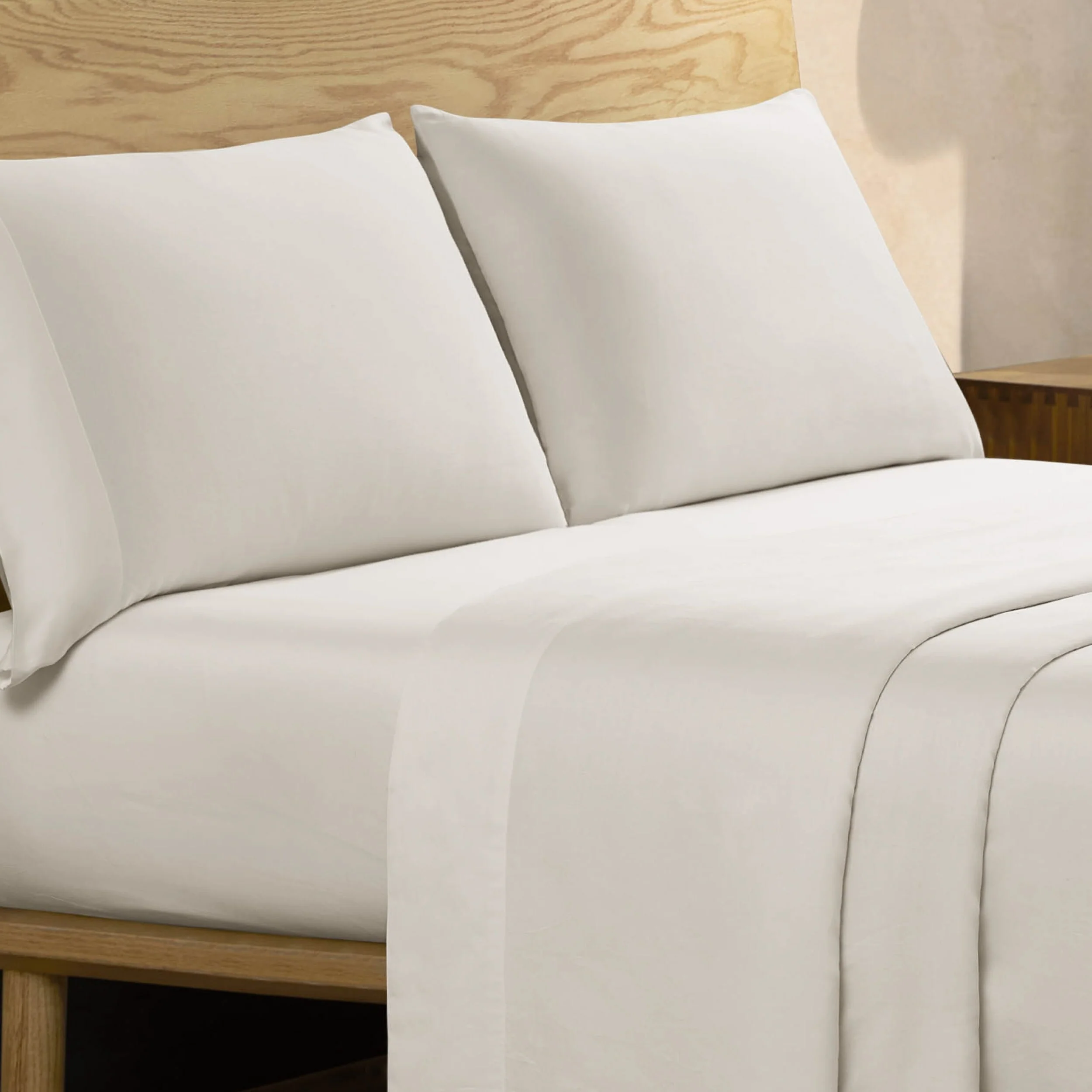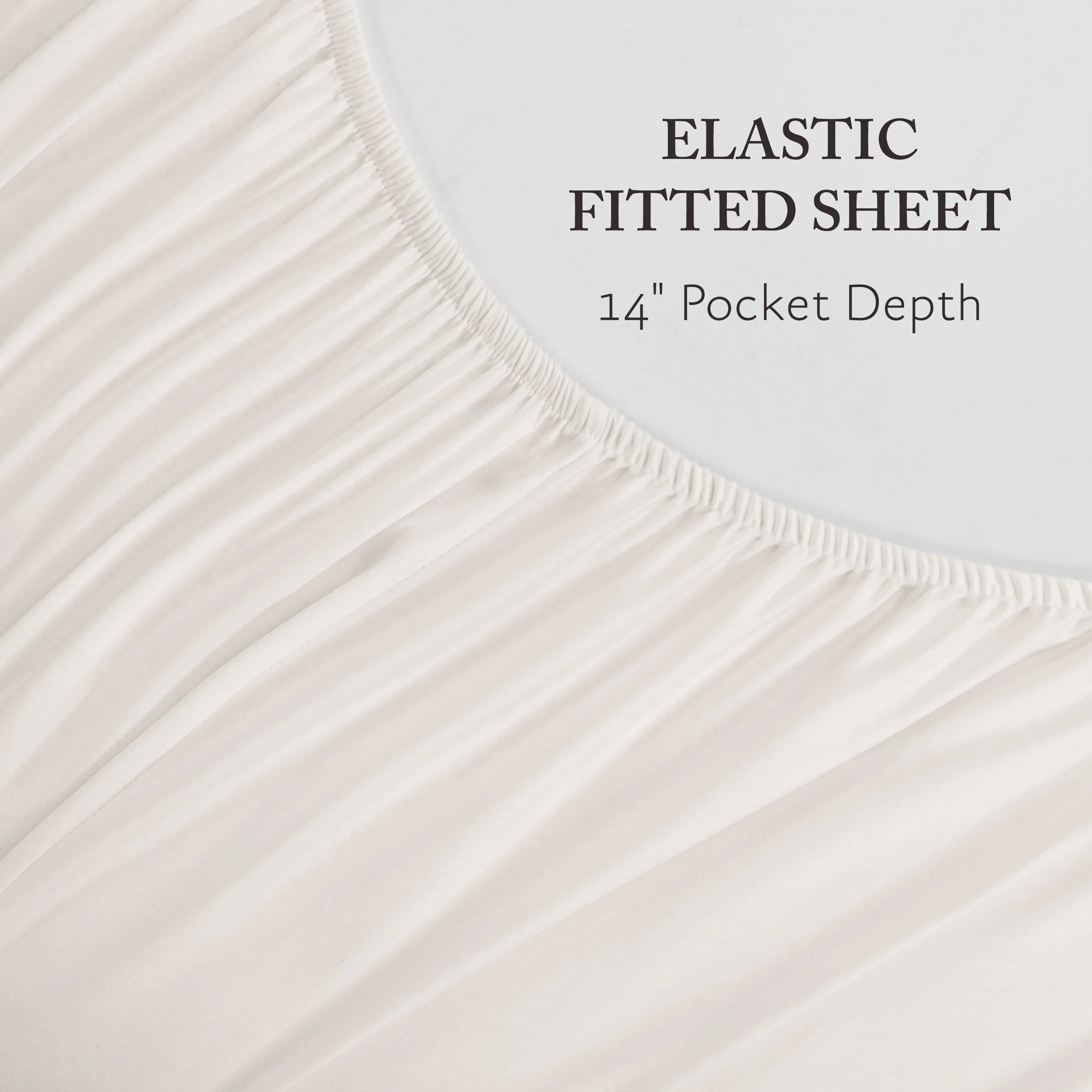 - Sleek & Sophisticated Design: The fitted sheet features elastic and a deep pocket design to securely fit mattresses ensuring a snug, slip-free fit and the pillowcases come with an envelope-style closure, giving a clean, polished look while keeping pillows securely in place