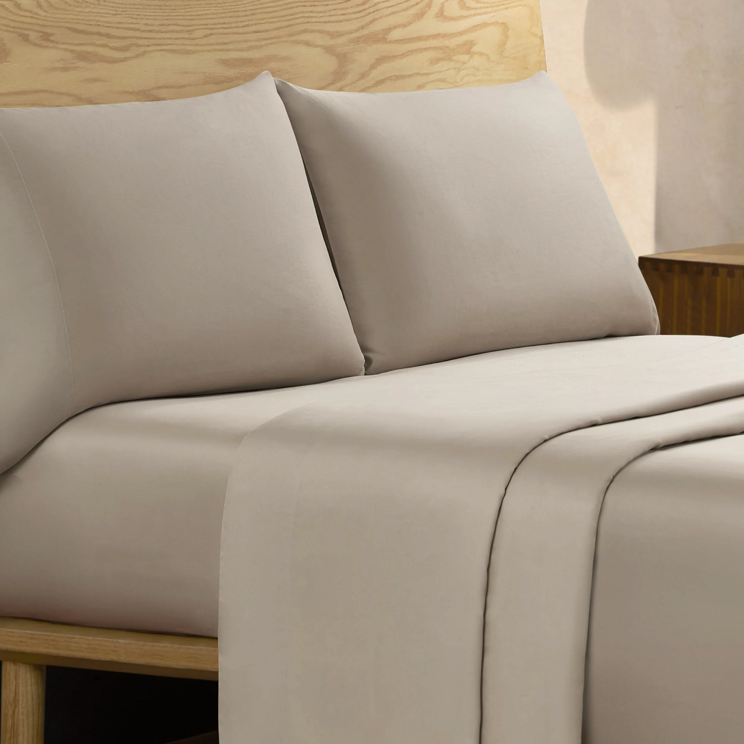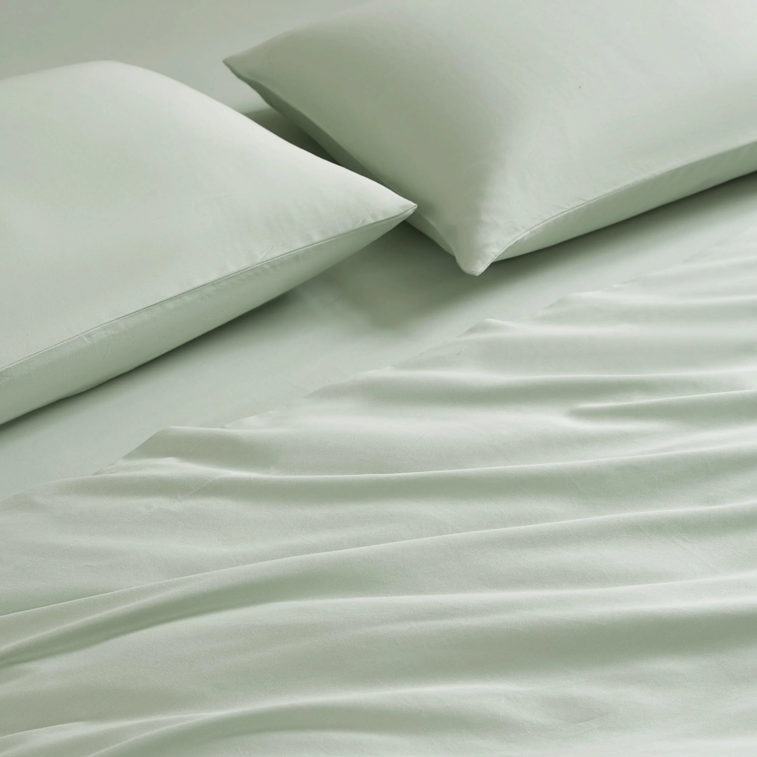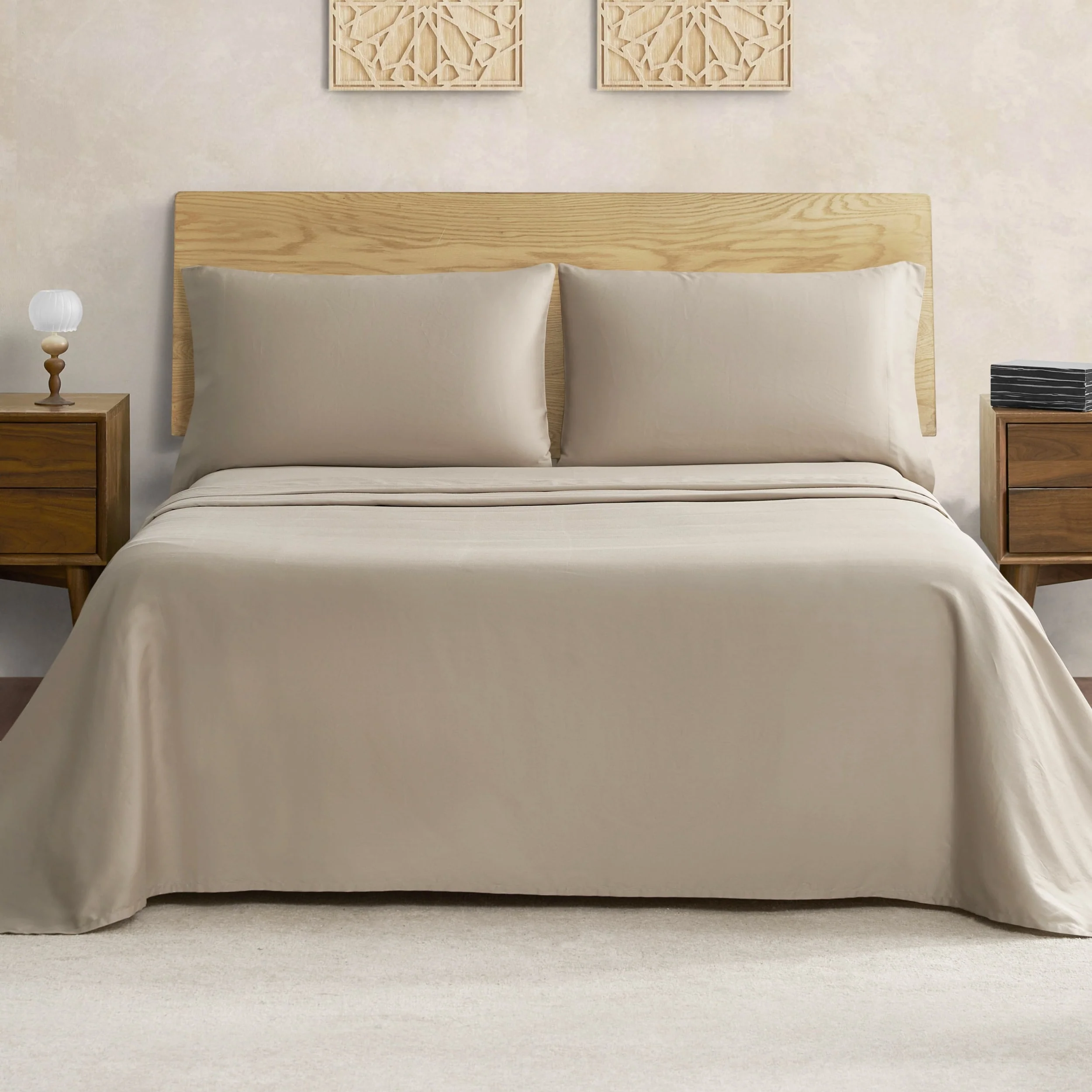 - Sleek & Sophisticated Design: The fitted sheet features elastic and a deep pocket design to securely fit mattresses ensuring a snug, slip-free fit and the pillowcases come with an envelope-style closure, giving a clean, polished look while keeping pillows securely in place