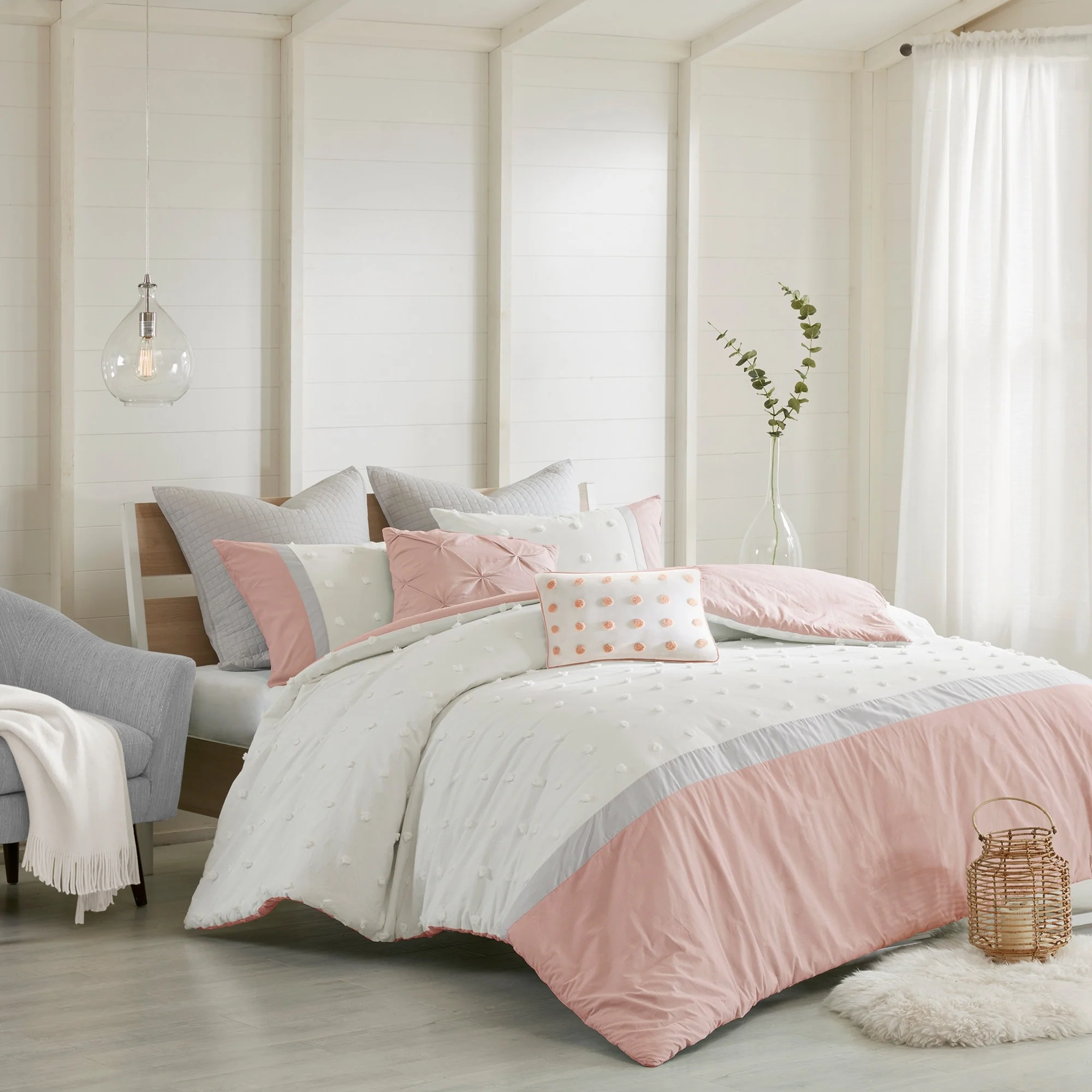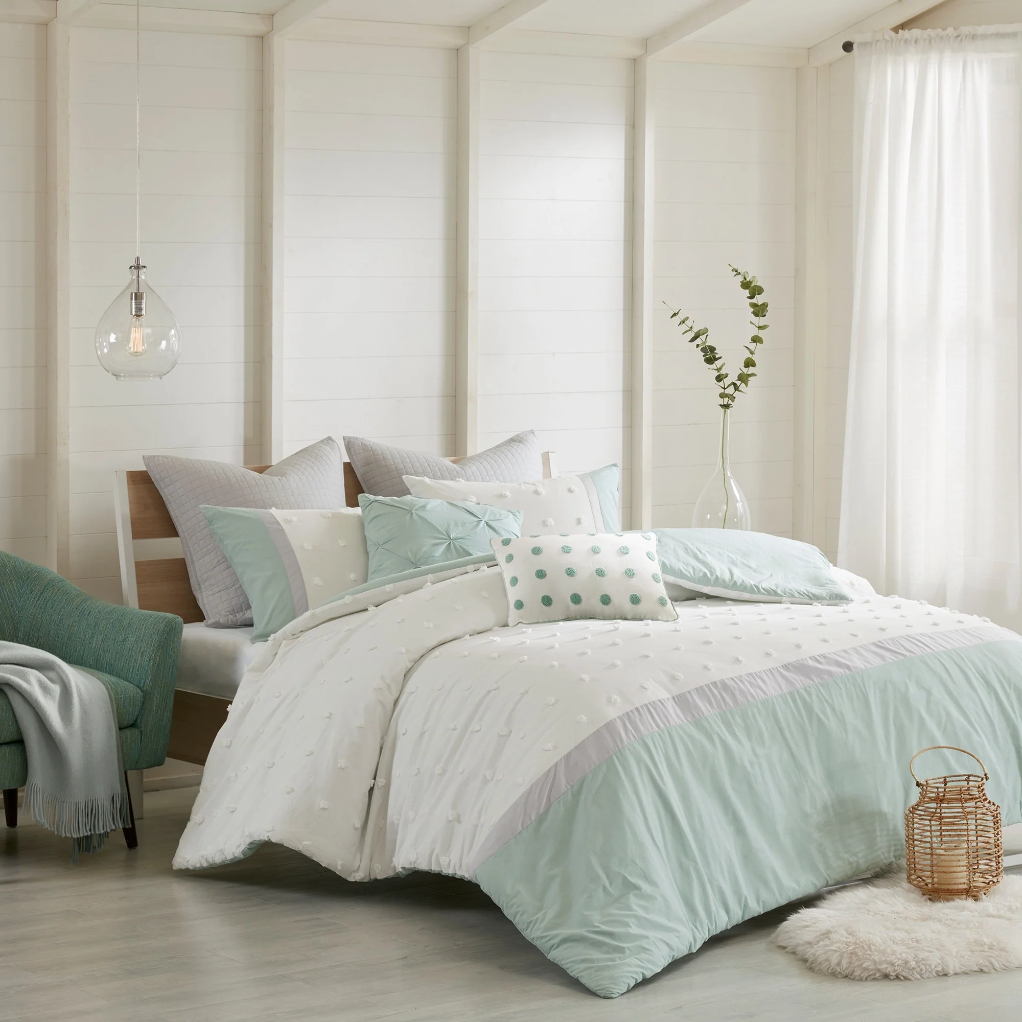 - Set includes one (1) duvet cover, two (2) shams (1 in Twin/ Twin XL), one (1) square and one (1) oblong pillows, two (2) quilted euro shams (1 in Twin/ Twin XL)