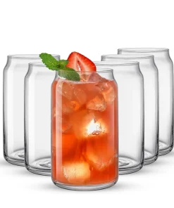 Modern Glassware That Loves a Pint of Just About Anything! Can shaped drinking beer glasses are super-hot right now. And why not? They’re super cute, fun and is the only highball glass that looks good in anything you want to throw in it! Iced tea glasses? Yes. Mixed drink glasses. Like, tall gin and tonic glasses or cocktail glasses Absolutely yes! Kitchen glasses for water glasses, juice glasses set or glass smoothie cup set. Yes, yes and yes! Beer glasses for men or women. Of COURSE. They ARE Pint glasses and beer shaped glasses after all! Ice coffee cups or iced tea glasses. They make iced anything look fun! In fact, these tall glasses for drinks are the perfect glass tumblers for the family, super cute alcohol glasses for mom and the large beer glass that all beer drinkers are looking for at the end of a hot summers’ day.