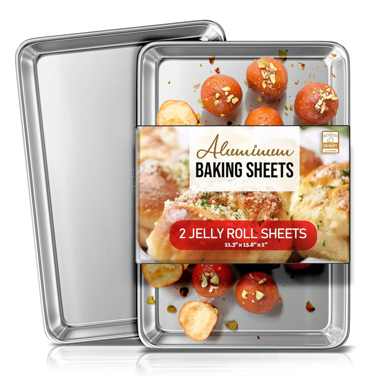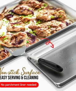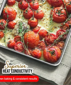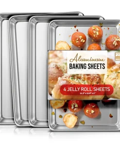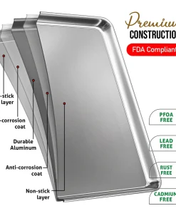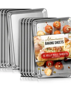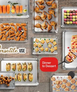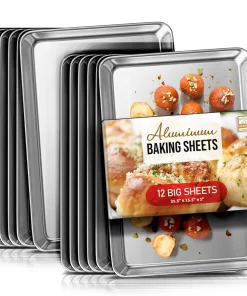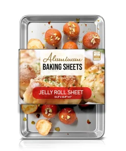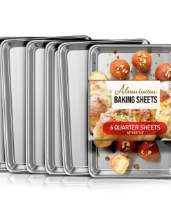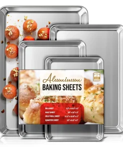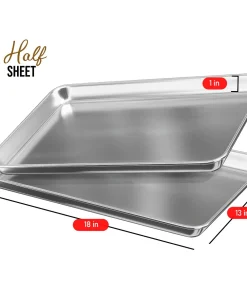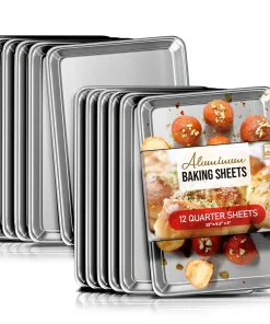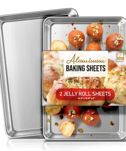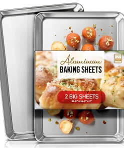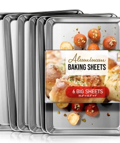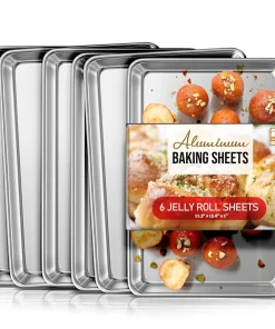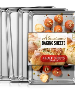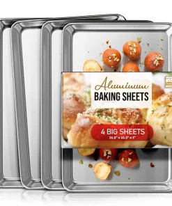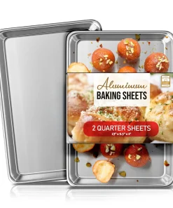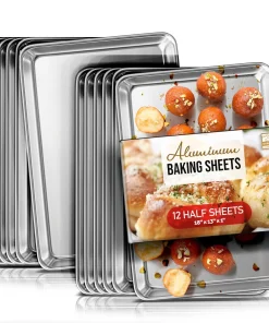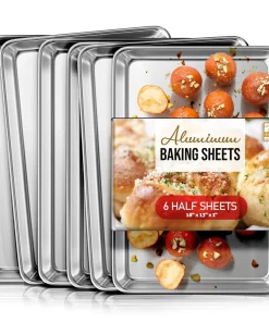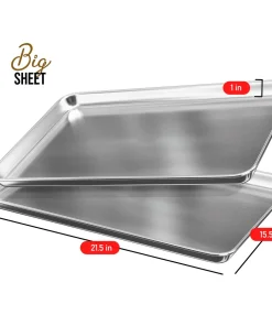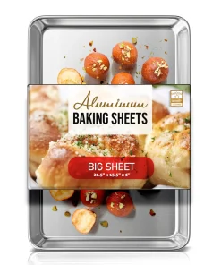 Whip up your favorite baked goods and sheet pan dinners with this durable aluminum sheet pans. Light-colored aluminum sheet pans for baking heat up quickly, browning food evenly without overbaking it. Aluminum baking pans also cool down quickly, reducing wait time between batches.