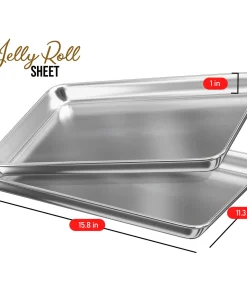 - Jelly Roll Pan: Baking tray: 15.78” x 11.4” x 1”. Baking surface: 15.35” x 10.82”.