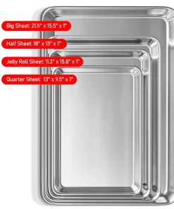 - Multi Pack – includes one of each; Big sheet pan, Half sheet pan, Jelly roll pan, and Quarter sheet pan