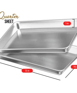 - Quarter Sheet Pan: Baking tray: 13” x 9.5” x 1”. Baking surface: 12.4” x 9”. 9×13