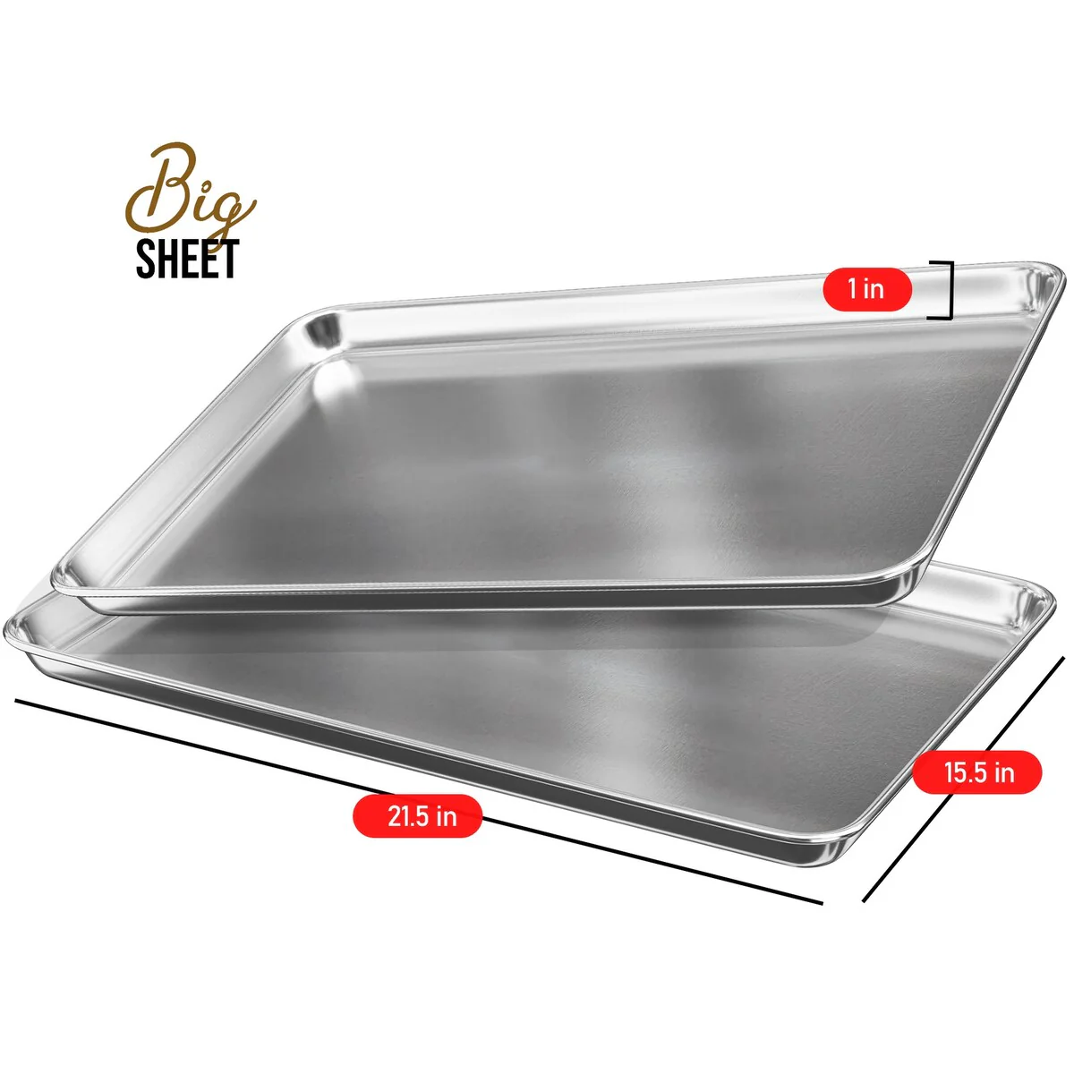 - Big Sheet Pan: Baking tray: 21.6" x 15.7" x 1". Baking surface: 21” x 15.27”.