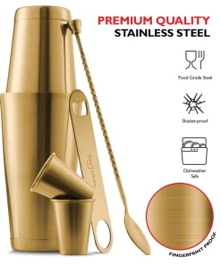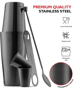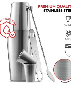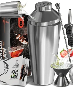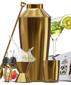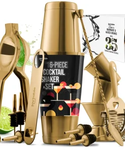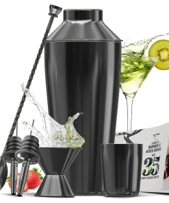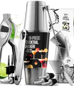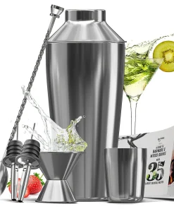 Are you ready to set up the home bar set of your dreams? Create your favorite drinks in style with this beautiful, affordable martini shaker set. Our professional bar tools are crafted with top-quality, commercial-grade stainless steel, featuring a sleek, mirrored finish. Rustproof and dishwasher safe, this restaurant-quality bartending kit is durable, reliable, and built to last!