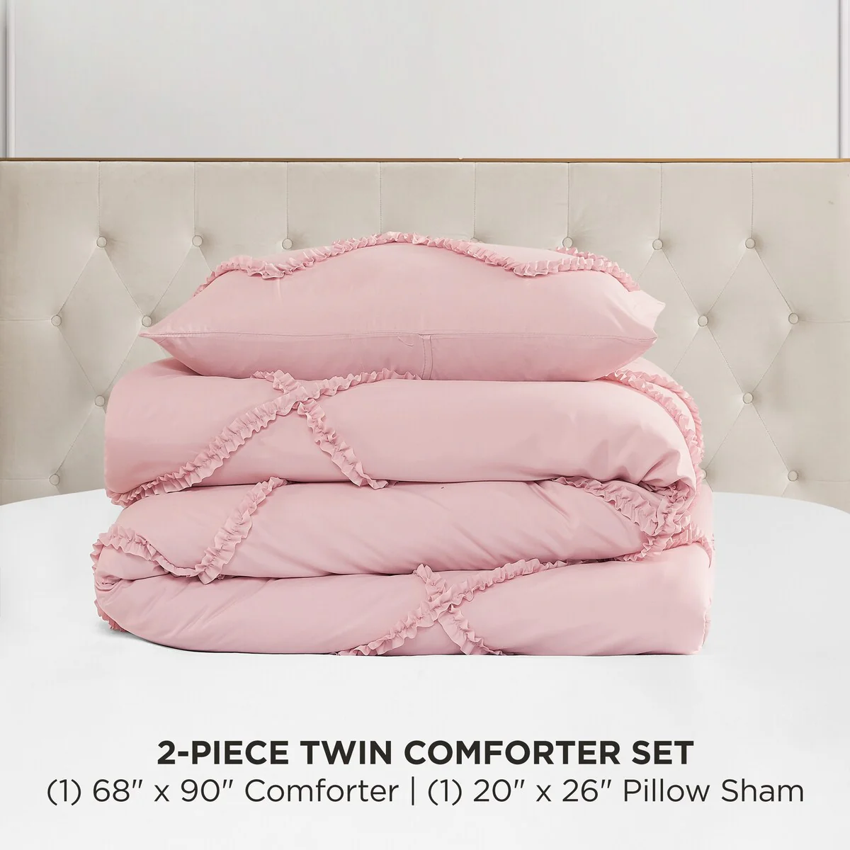 - 2-PIECE BEDDING SET: Twin set includes (1) 90" x 68" comforter and (1) 20" x 26" flange pillow sham (sham inserts sold separately)