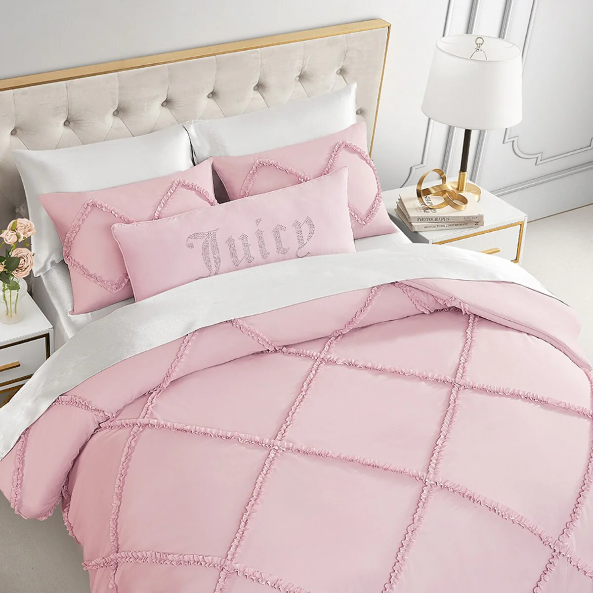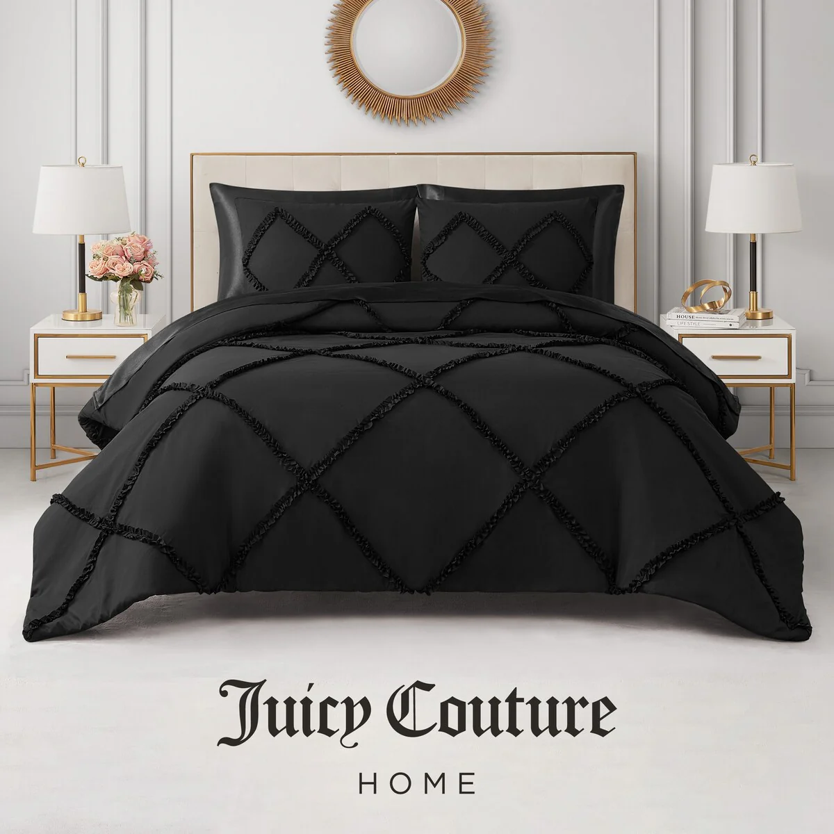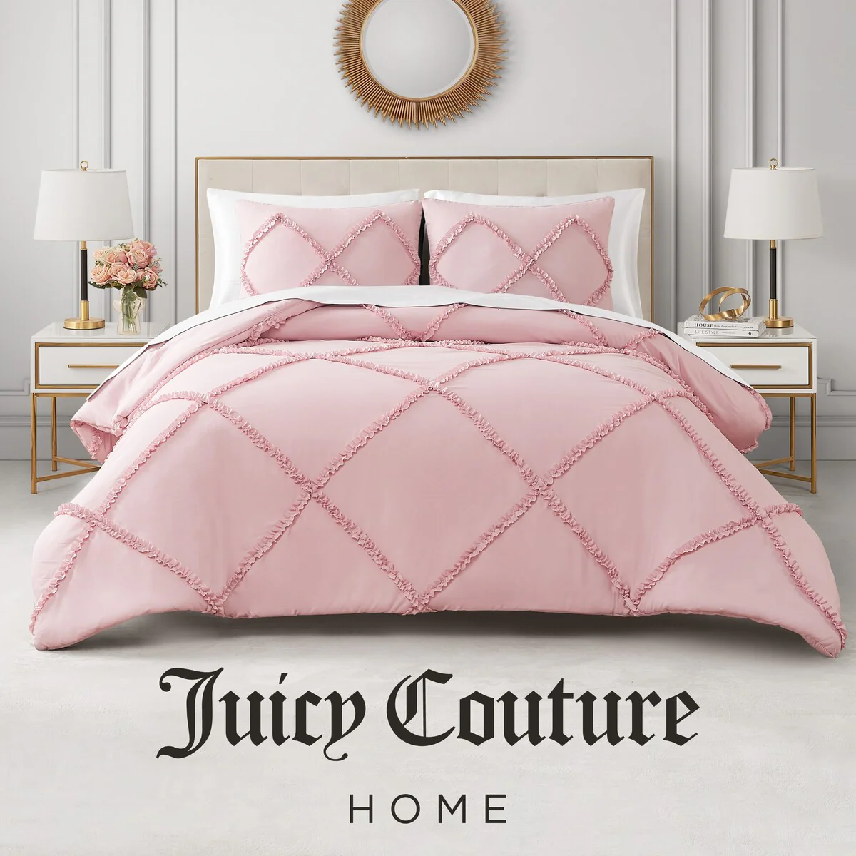 - JUICY COUTURE COLLECTION: Make a statement with the Juicy Couture Diamond Ruffle reversible comforter set. Stylish ruffle detailing in a diamond pattern with a bold design