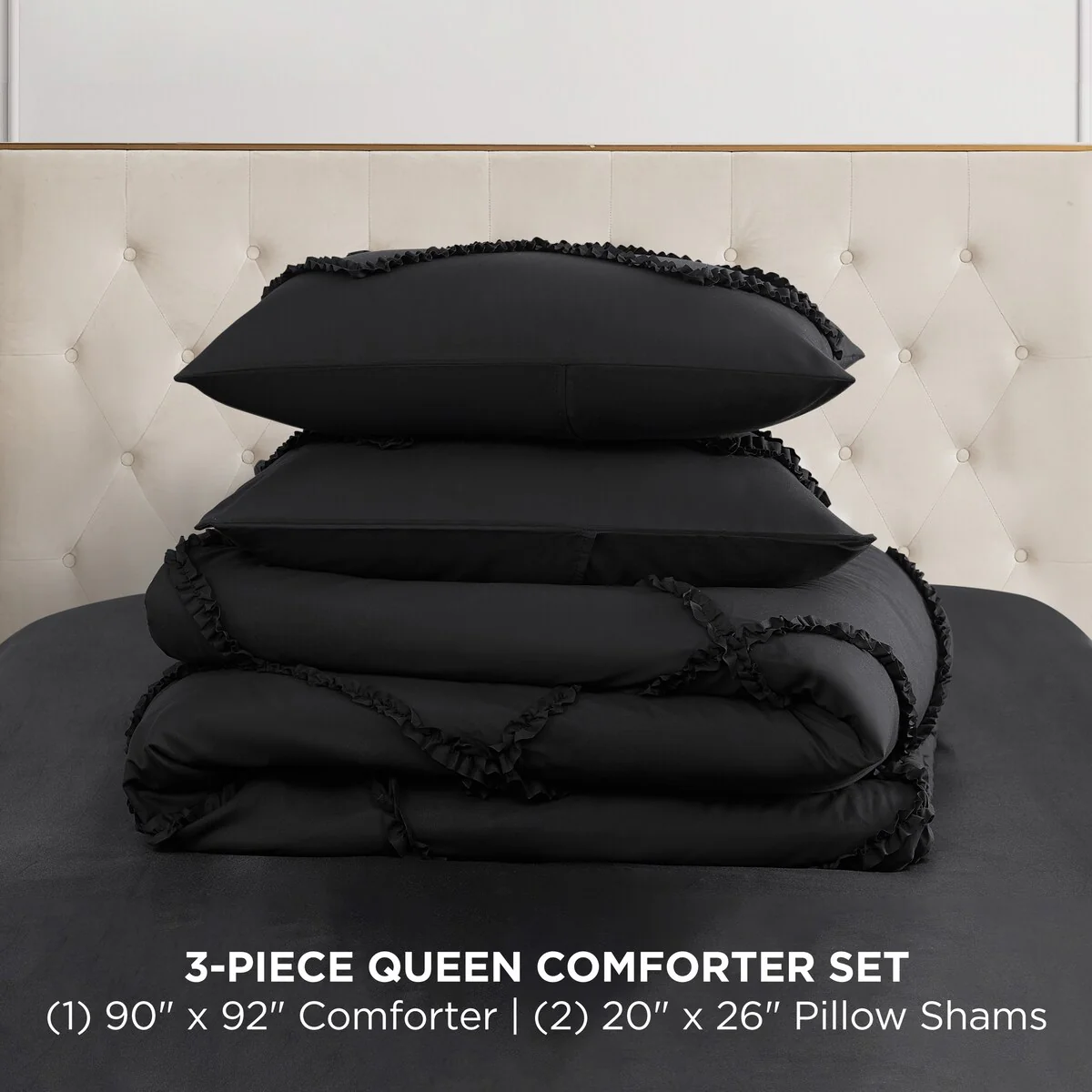 - 3-PIECE BEDDING SET: Queen set includes (1) 92" x 90" comforter and (2) 20" x 26" 2" flange pillow shams (sham inserts sold separately)