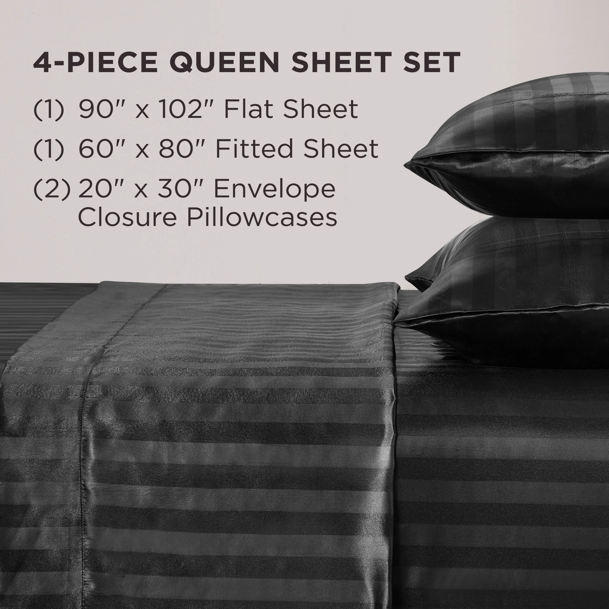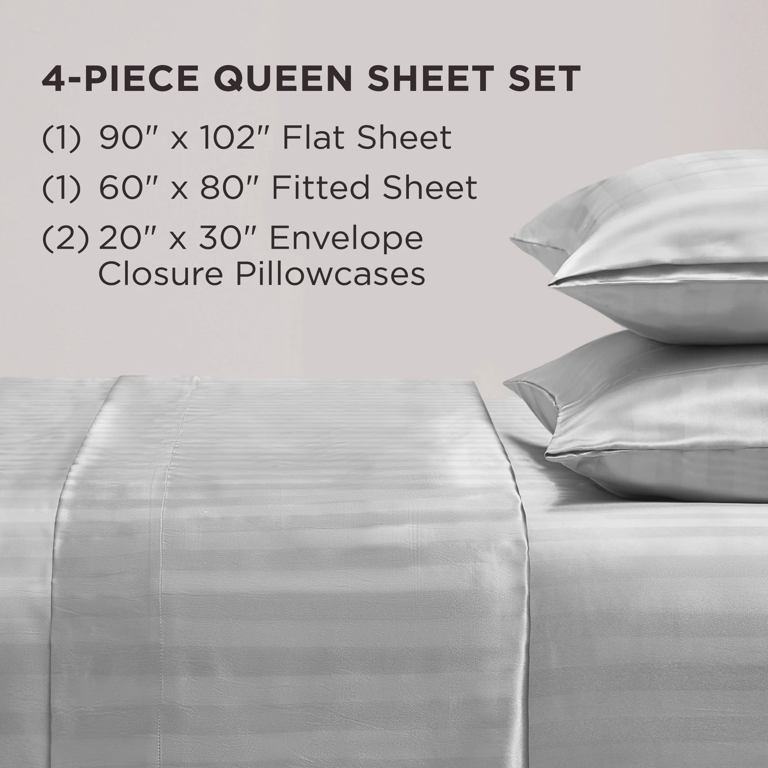 - Queen Size 4-Piece Set includes (2) 20"x30" Pillowcases, (1) 90"x102" Flat Sheet, (1) 60"x80" Fitted Sheet