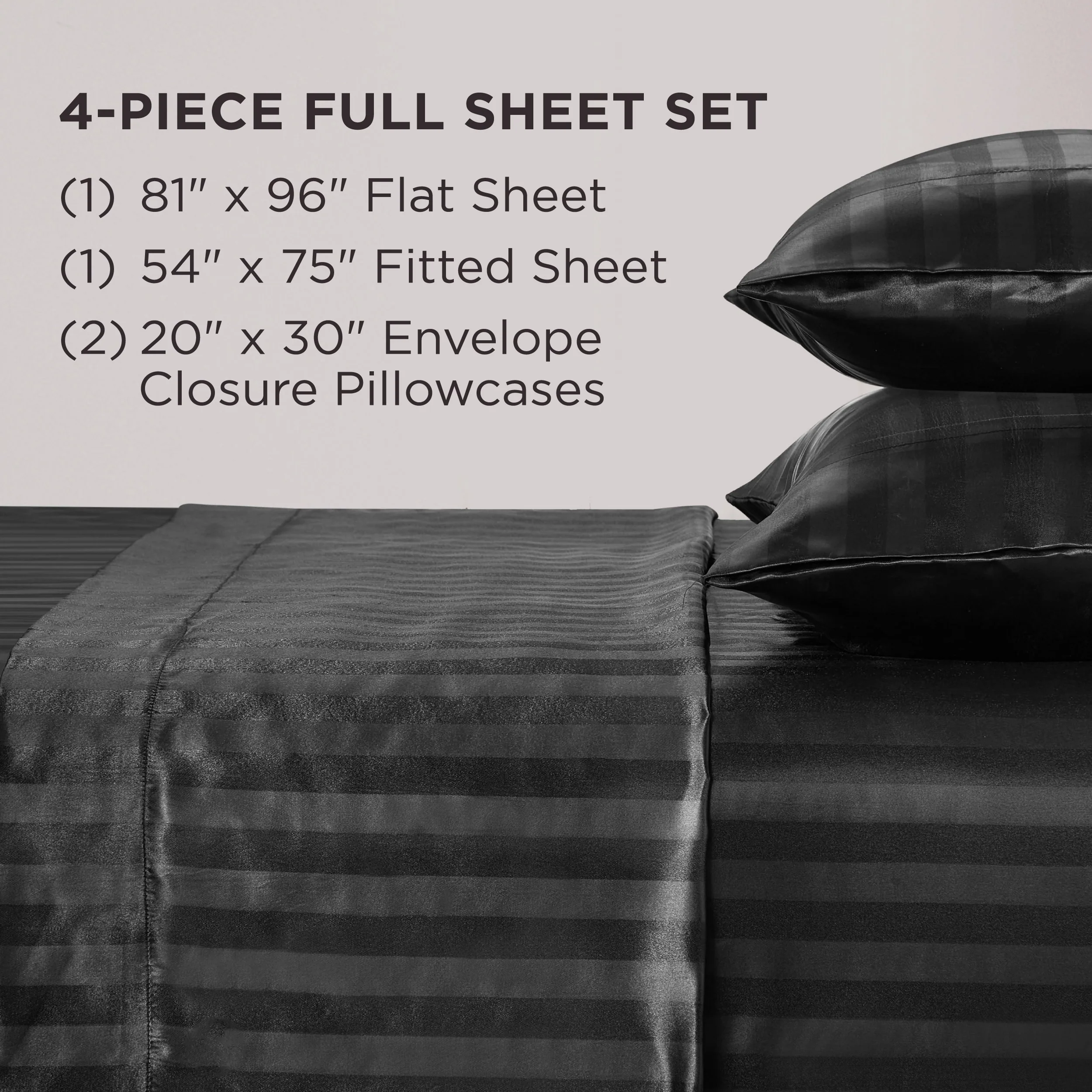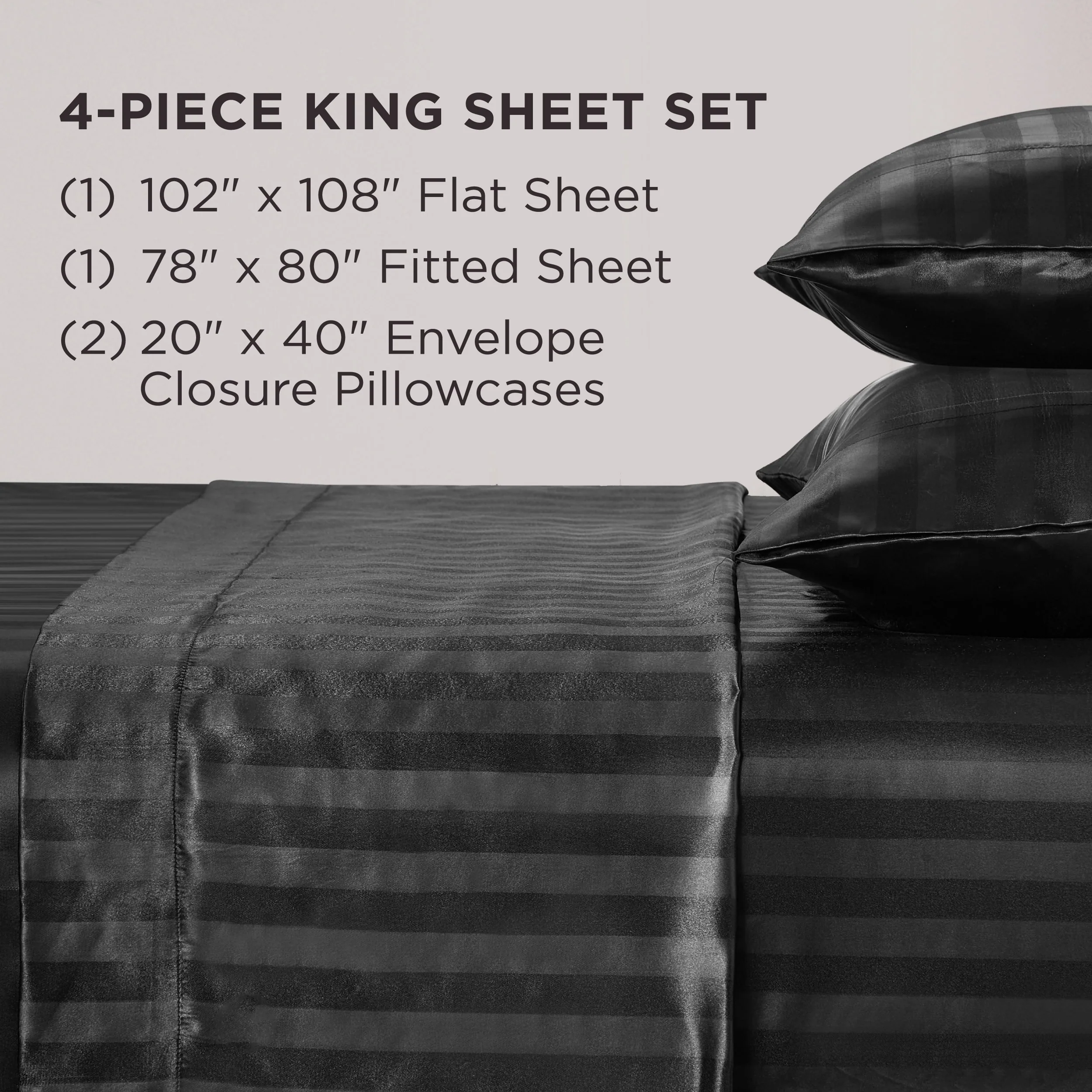 - King Size 4-Piece Set includes (2) 20"x40" Pillowcases, (1) 102"x108" Flat Sheet, (1) 78"x80" Fitted Sheet