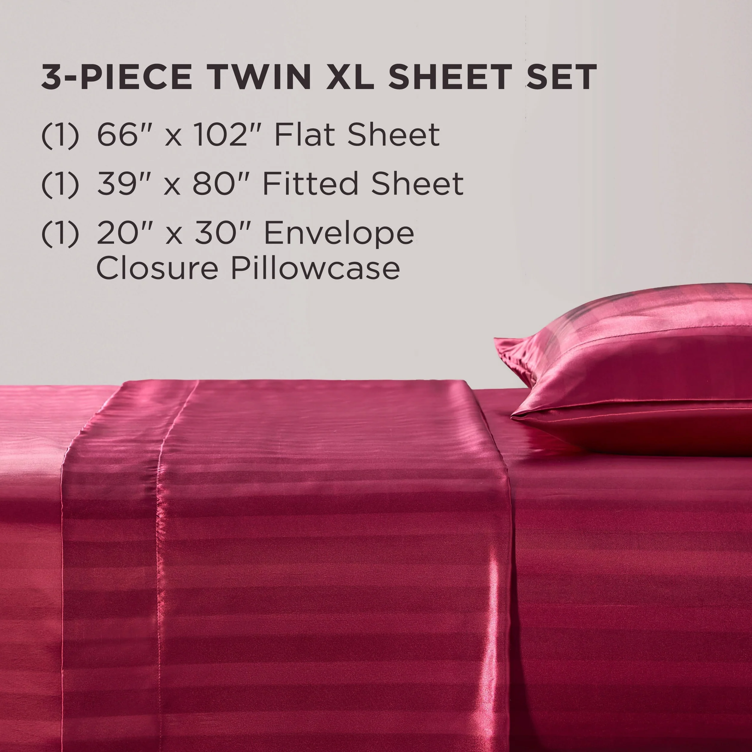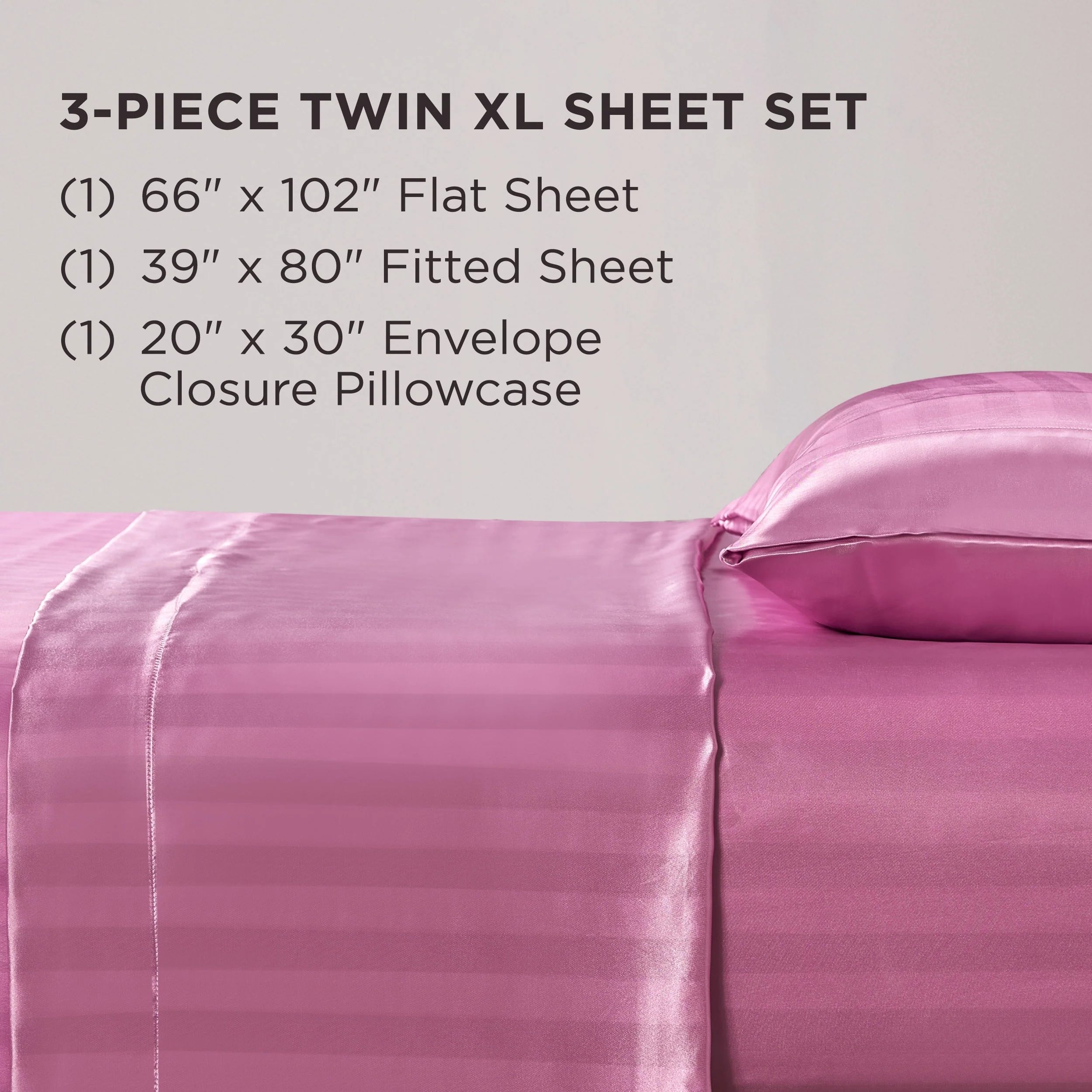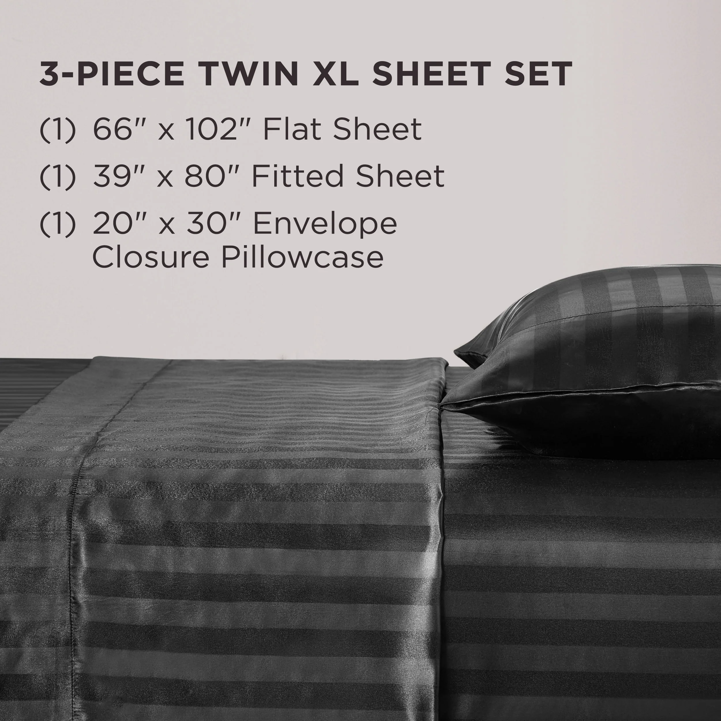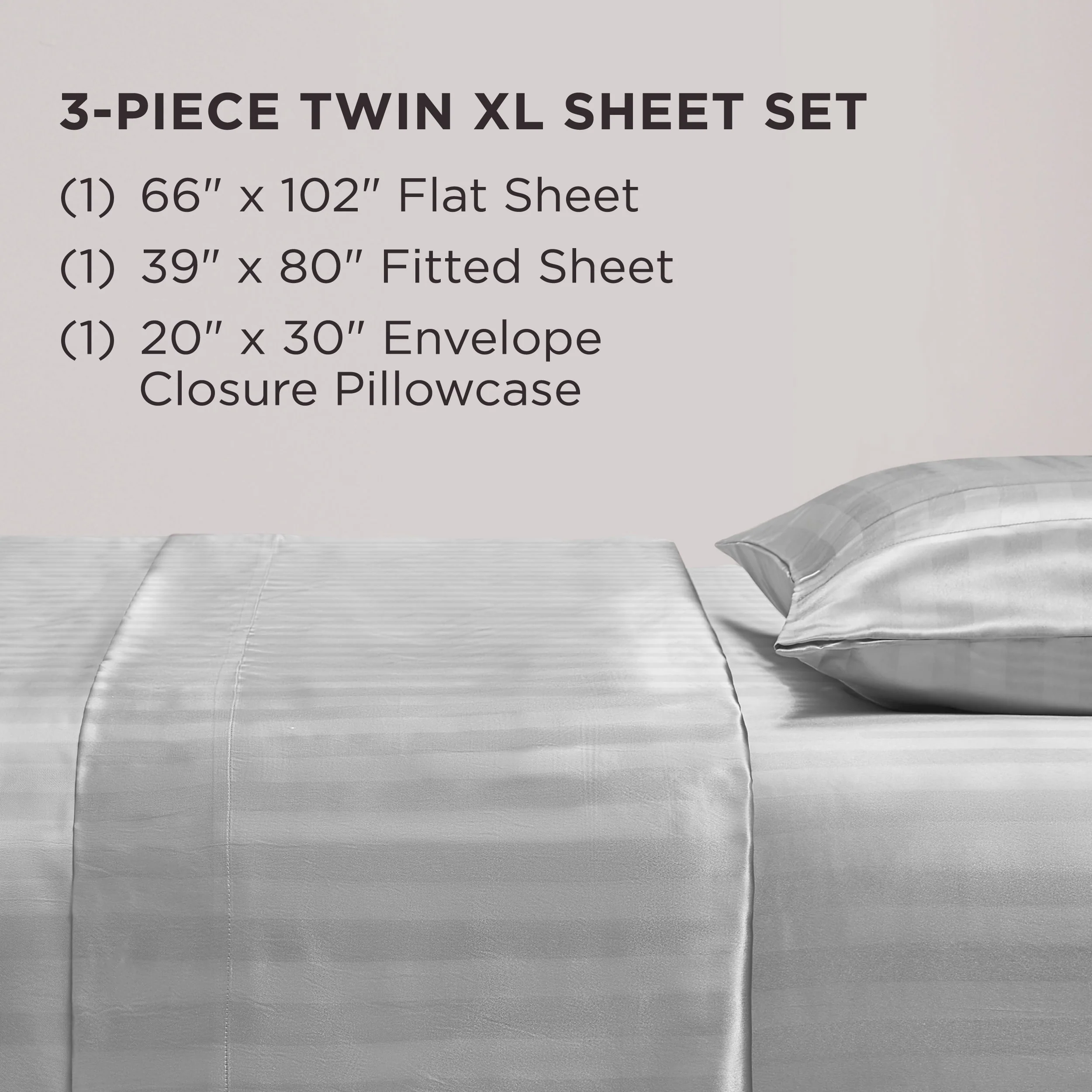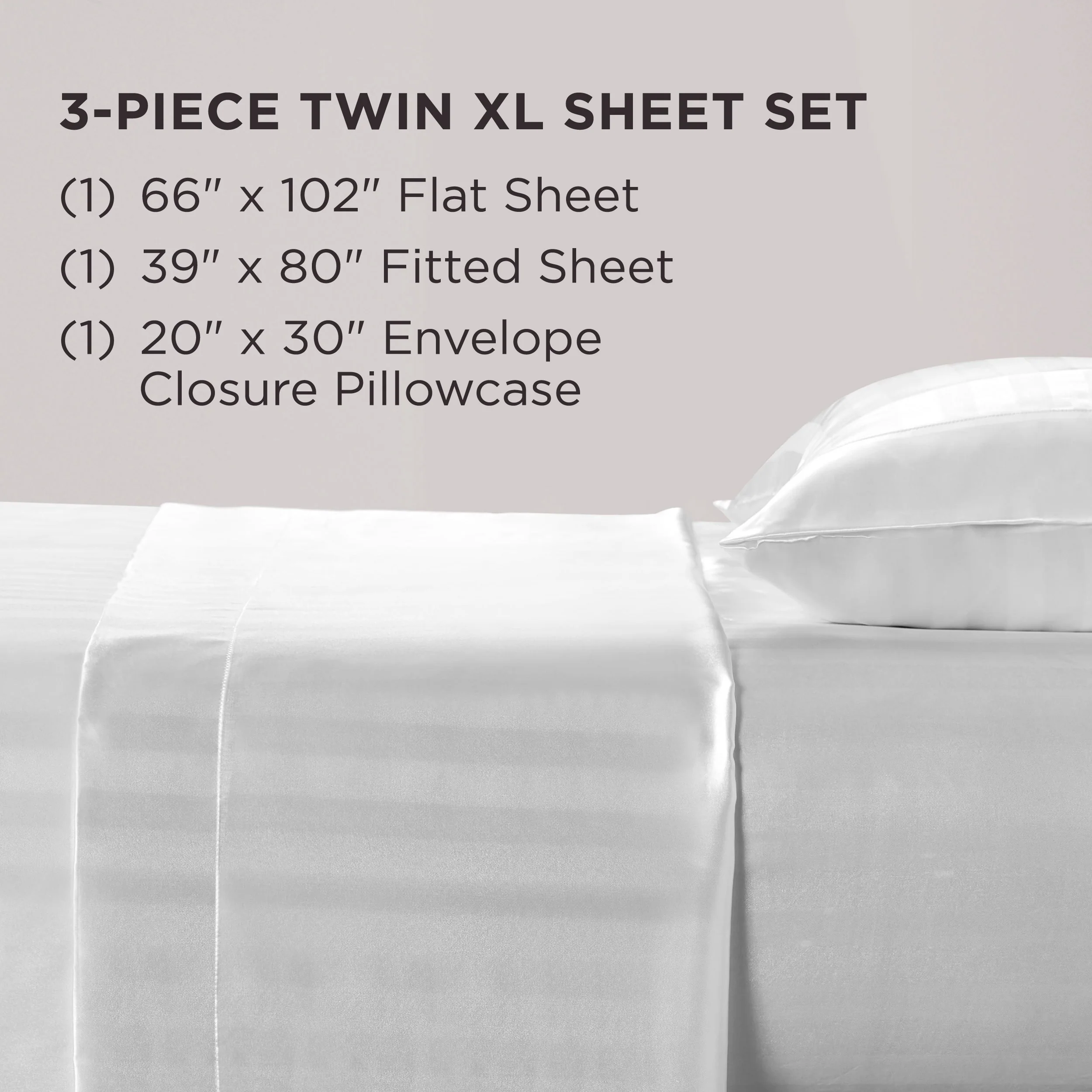 - Twin XL Size 3-Piece Set includes (1) 20"x30" Pillowcase, (1) 66"x102" Flat Sheet, (1) 39"x80" Fitted Sheet