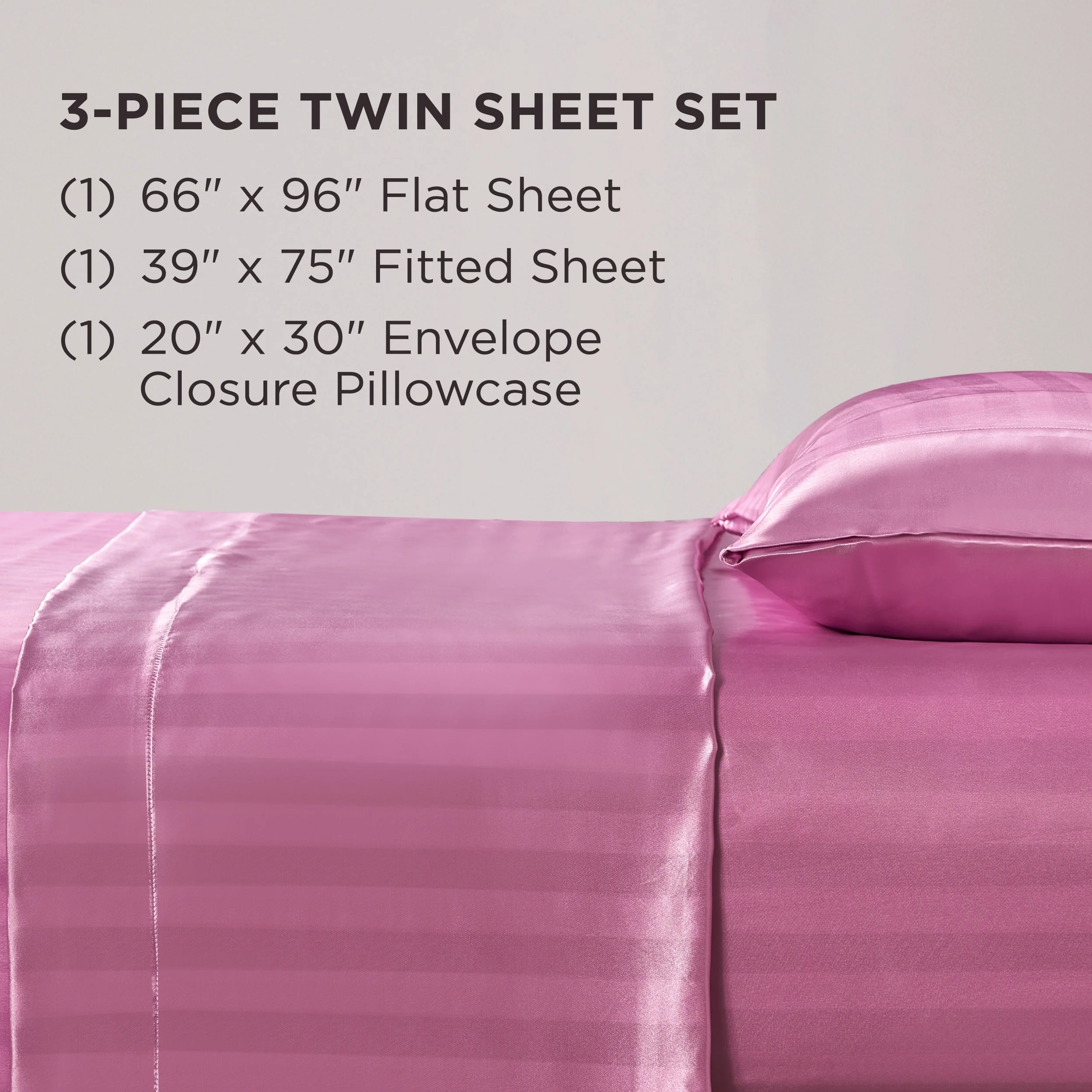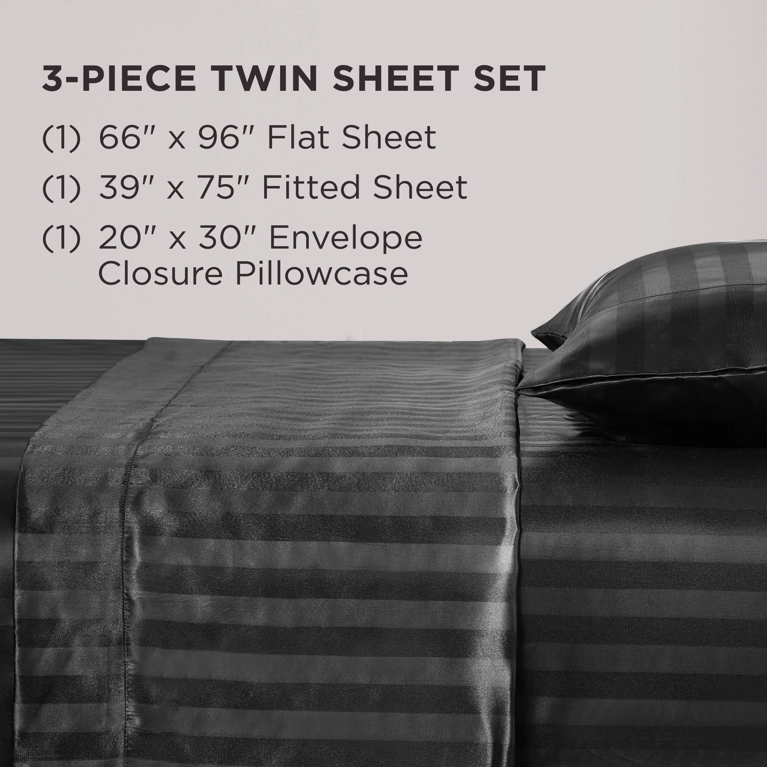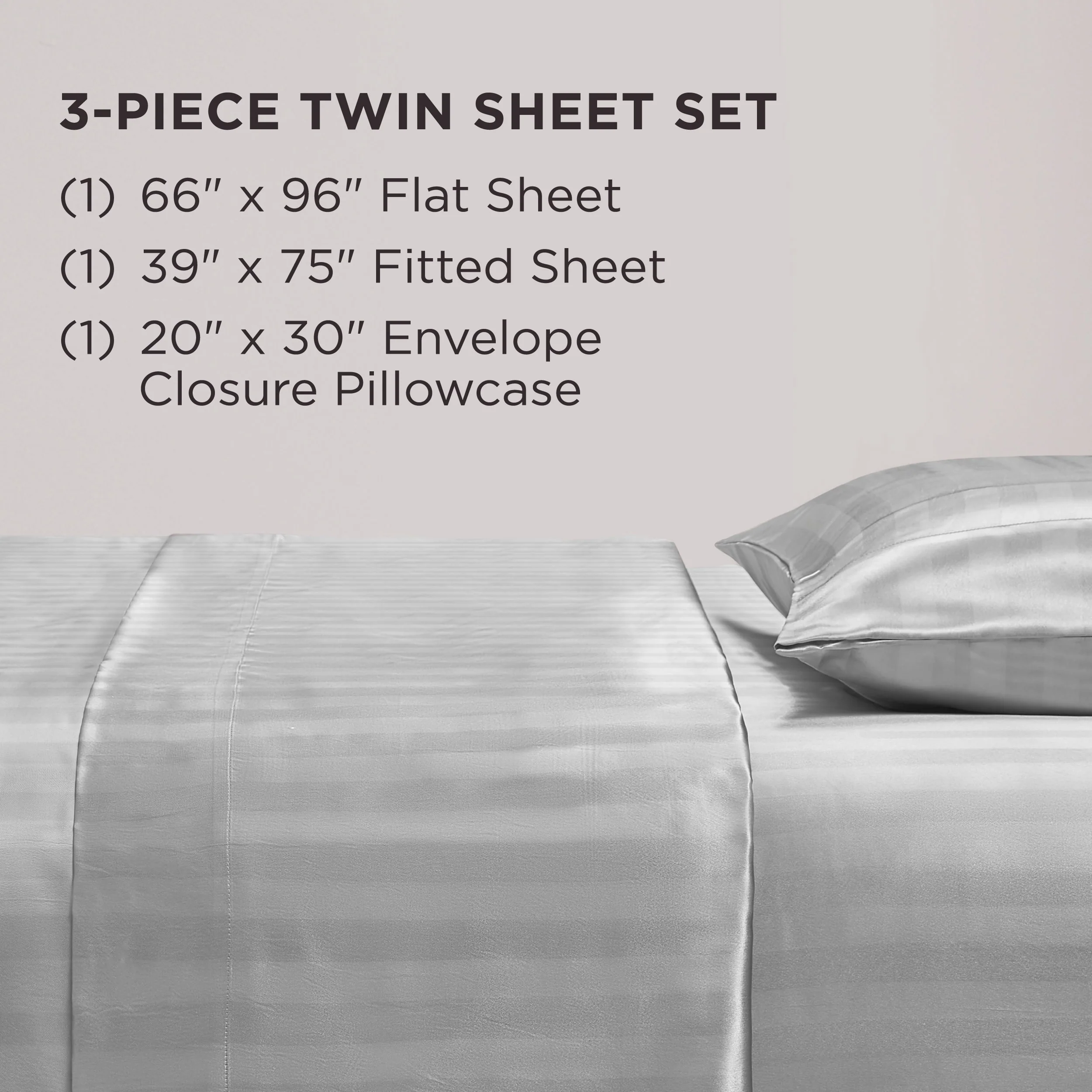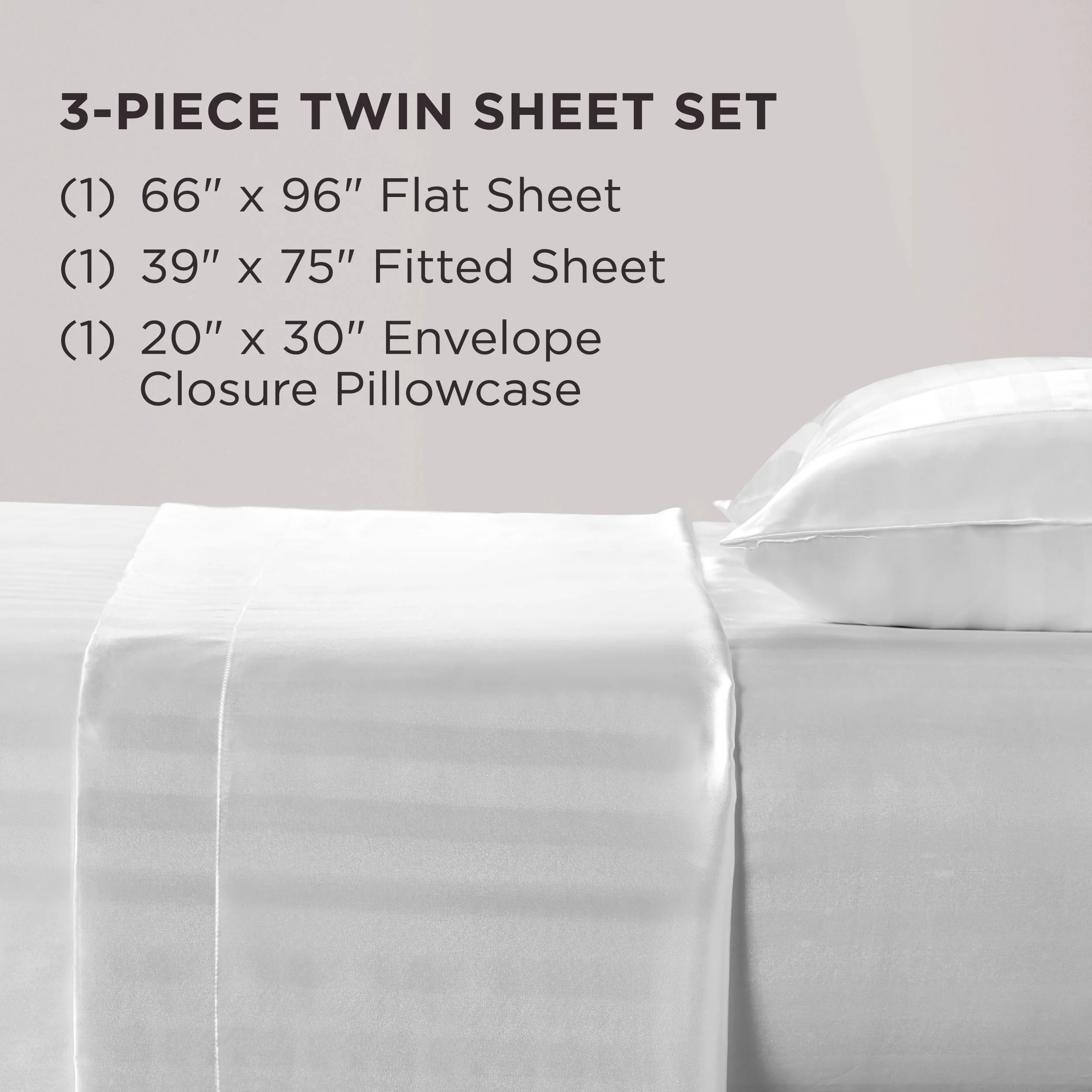- Twin Size 3-Piece Set includes (1) 20"x30" Pillowcase, (1) 66"x96" Flat Sheet, (1) 39"x75" Fitted Sheet