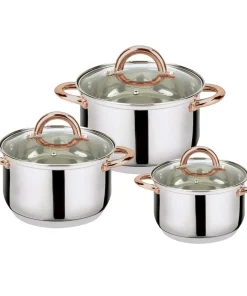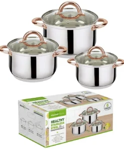 Pieces Included; 2QT Casserole 16CM x 9.50 CM| 3QT Casserole 18 CM x 10.50 CM| 4QT Casserole 20 CM x 12.50 CM|Stainless Steel Construction allows easy heat induction|Suitable for all stove tops|Included in the box; 3 Pots with Lids|Dishwasher safe