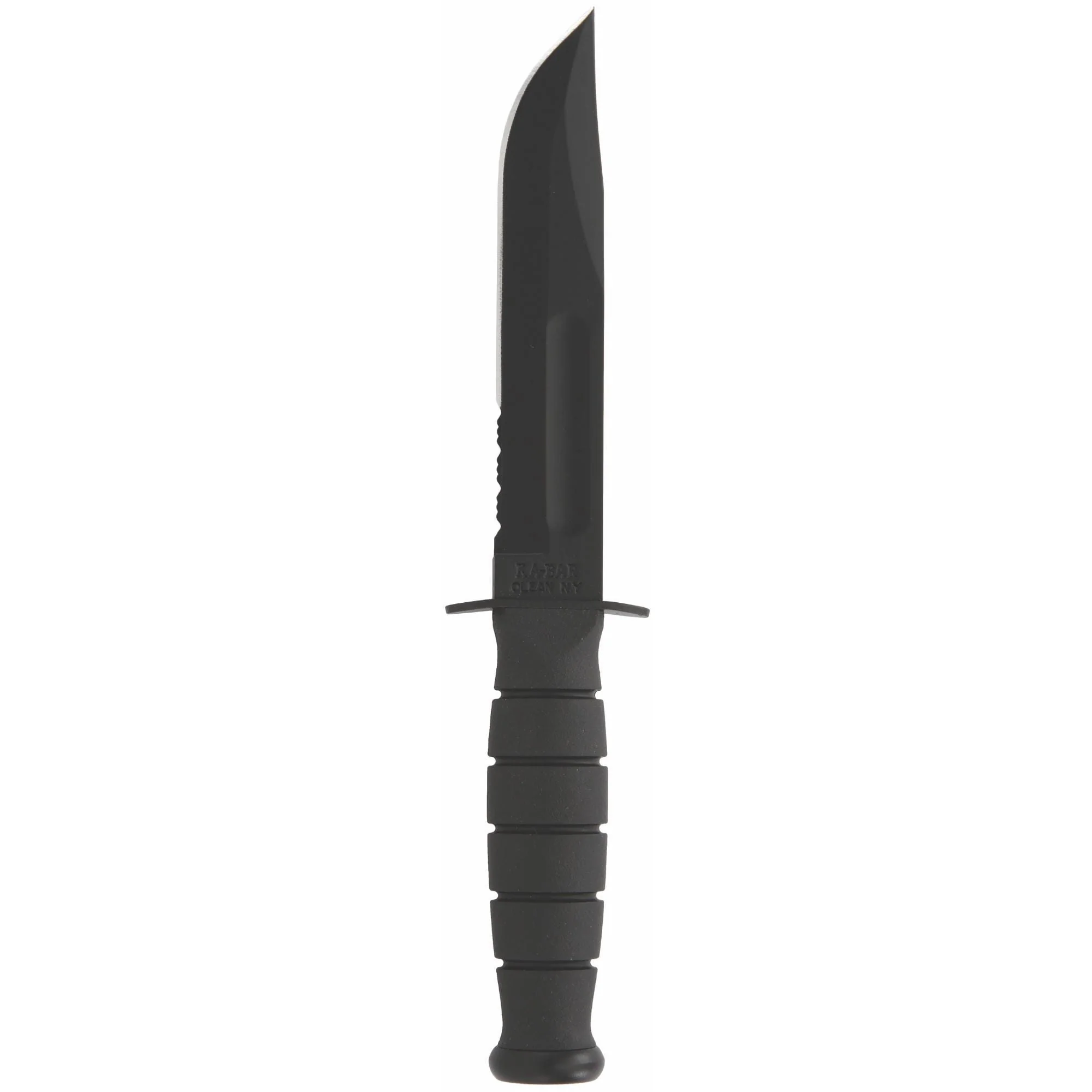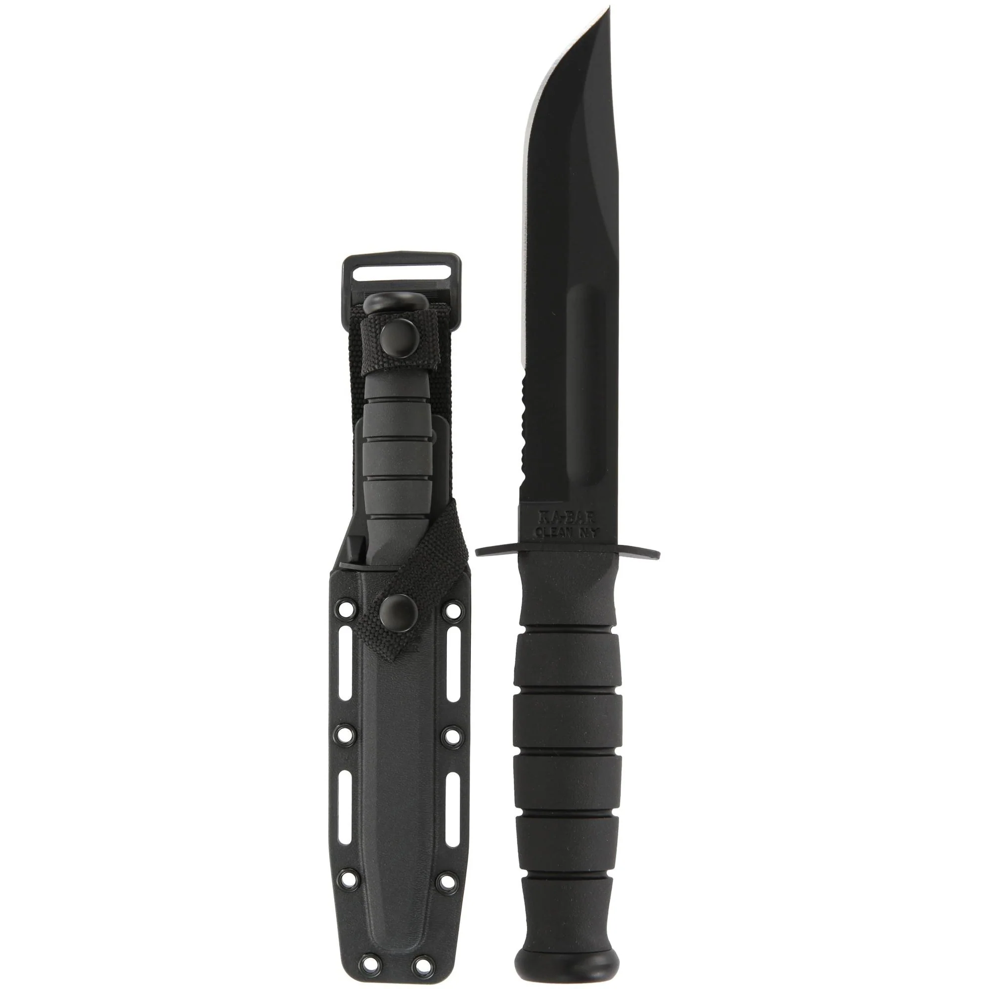 9.4" overall, this knife is a practically sized fixed blade knife that features a non-slip handle. A partially serrated edge makes cutting looped and synthetic materials a breeze. A hard plastic MOLLE compatible sheath is included. Please note a rolling change has been made to the markings on the Black Kraton G Fighting/Utlity Knives. The "USA" marking has been removed and you may receive a knife without this marking. Only the marking has changed, this is not a change to where or how these products are made. Knife is manufactured in the USA, sheath is manufactured in Taiwan.