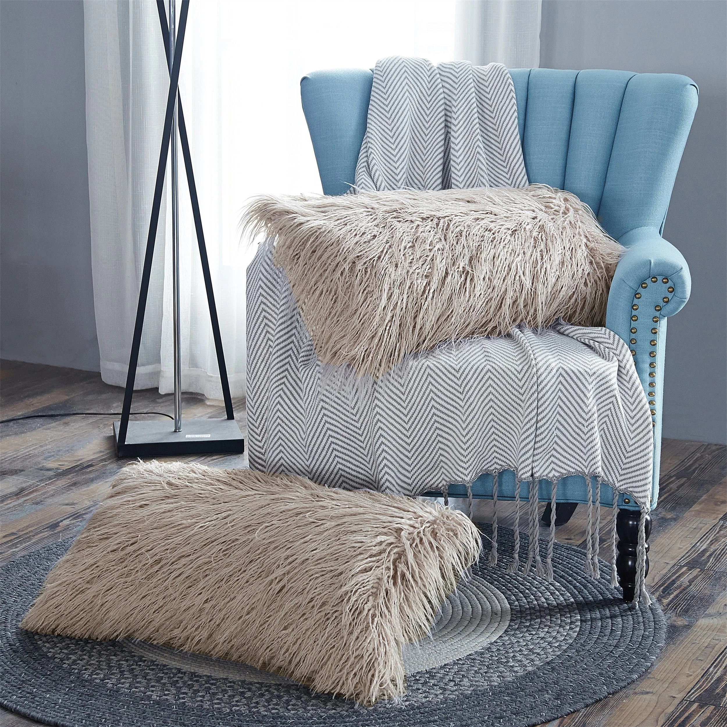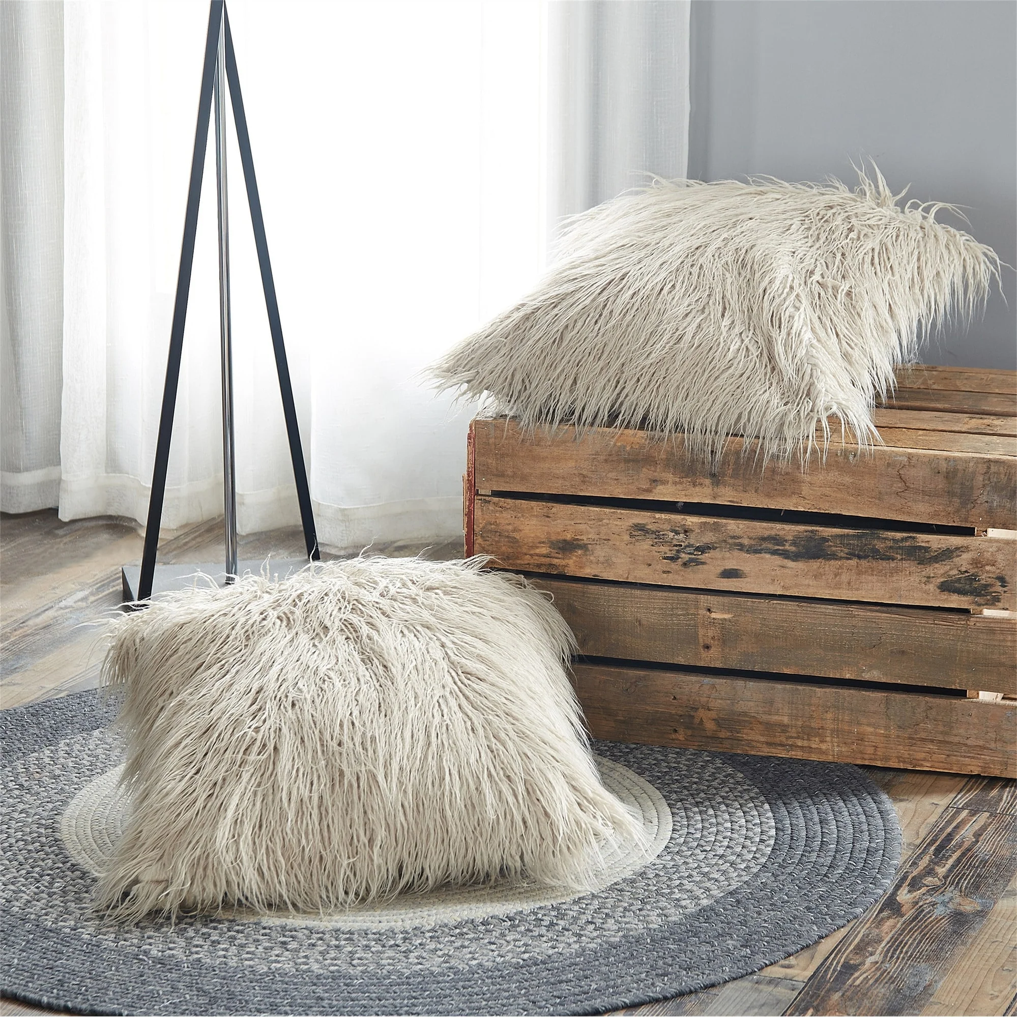 - Made from shaggy Mongolian lamb fauxfur material
