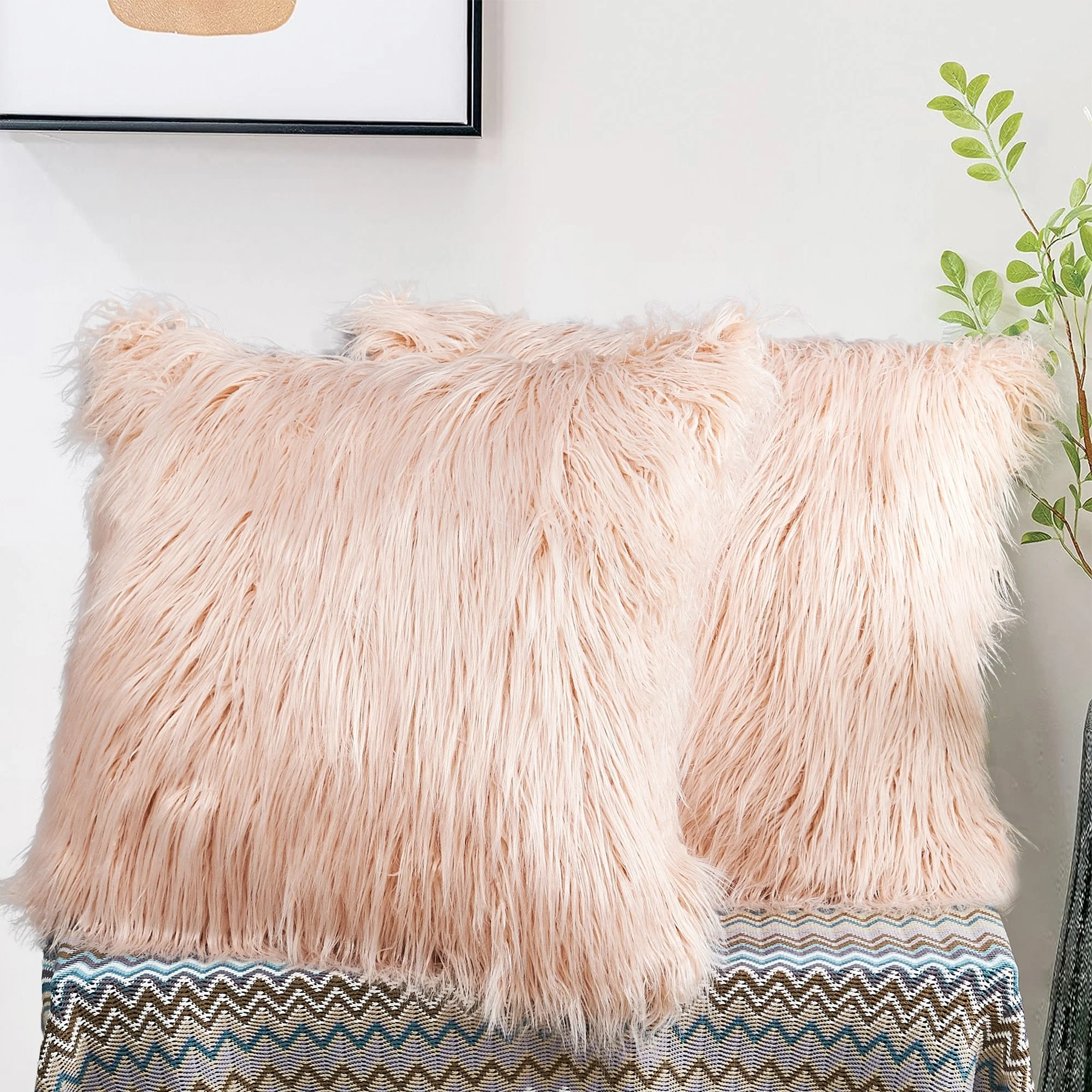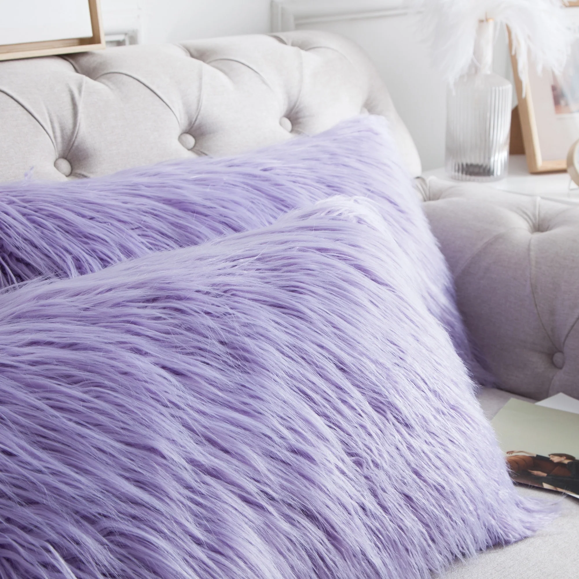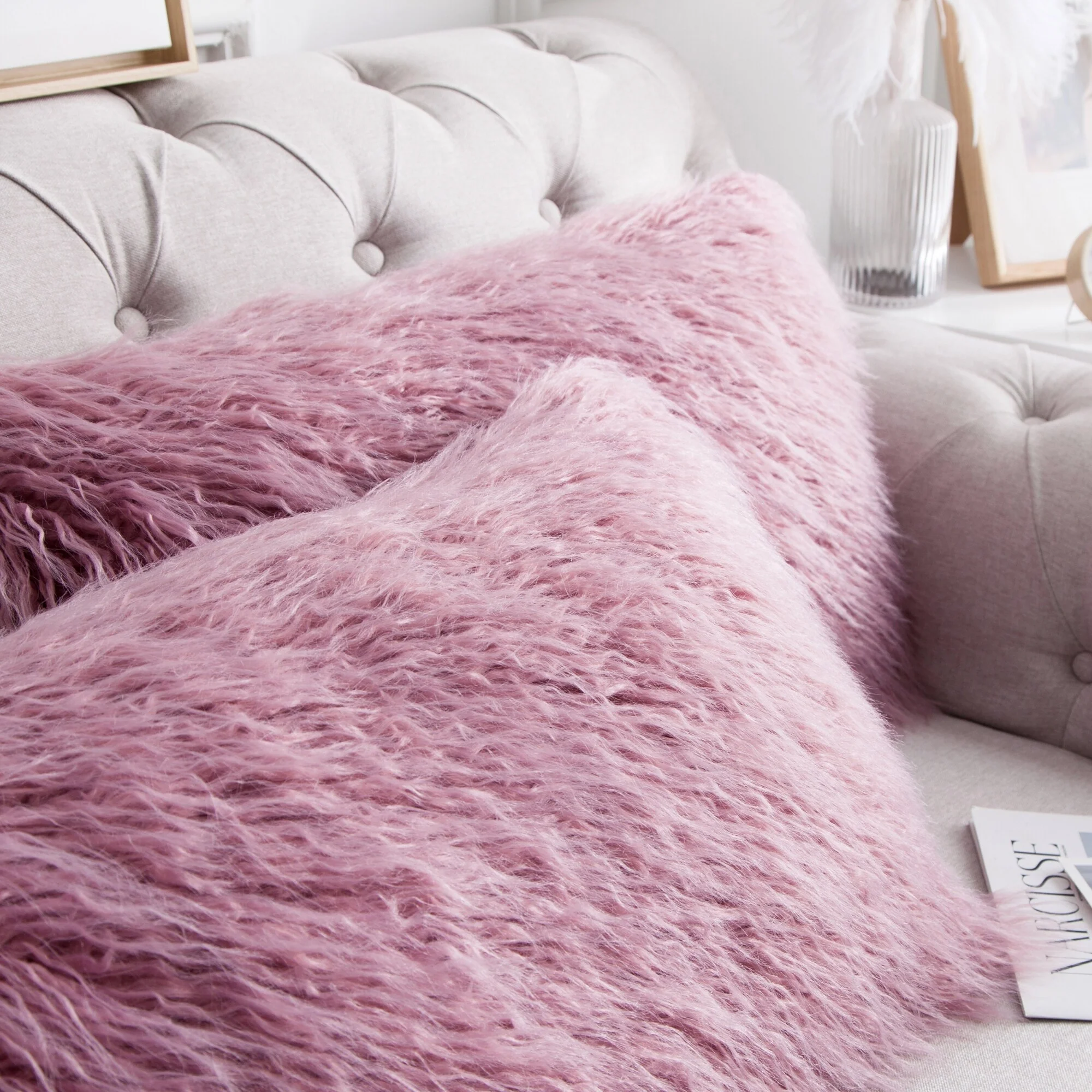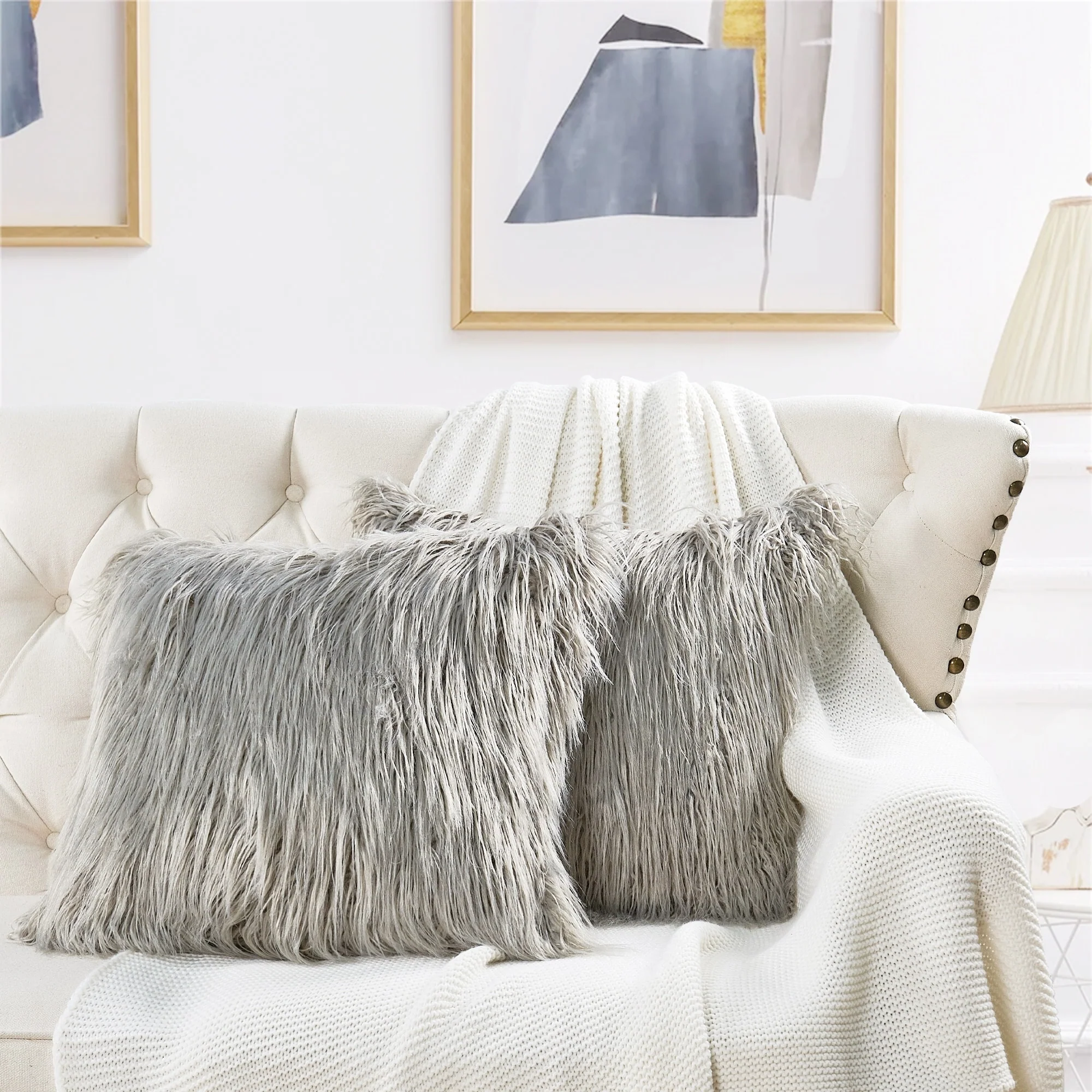 Upgrade your home decor with this set of two Karenne FauxFur Throw Pillow Covers, perfect for adding a touch of luxury and comfort to any space. These covers are made from high-quality Mongolian lamb fauxfur with an extra-shaggy pile, making them irresistibly soft and cozy. With a convenient zipper closure, you can easily slip these covers over your existing pillows (inserts not included). Available in multiple solid colors and two size options, these covers feature a modern and contemporary style that will elevate any room.