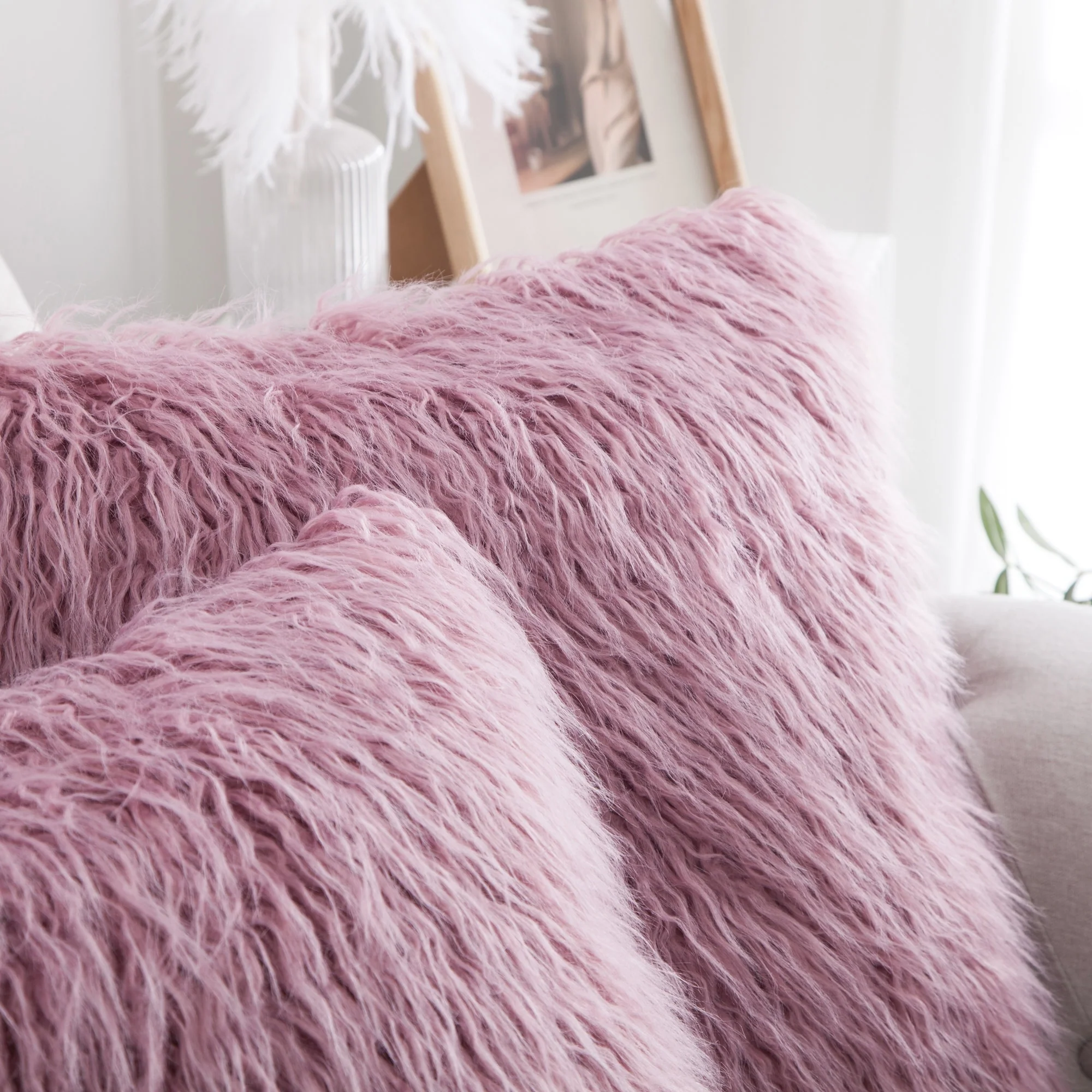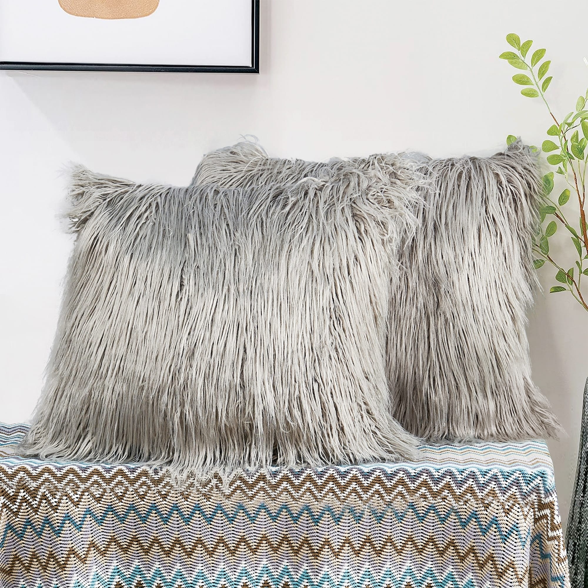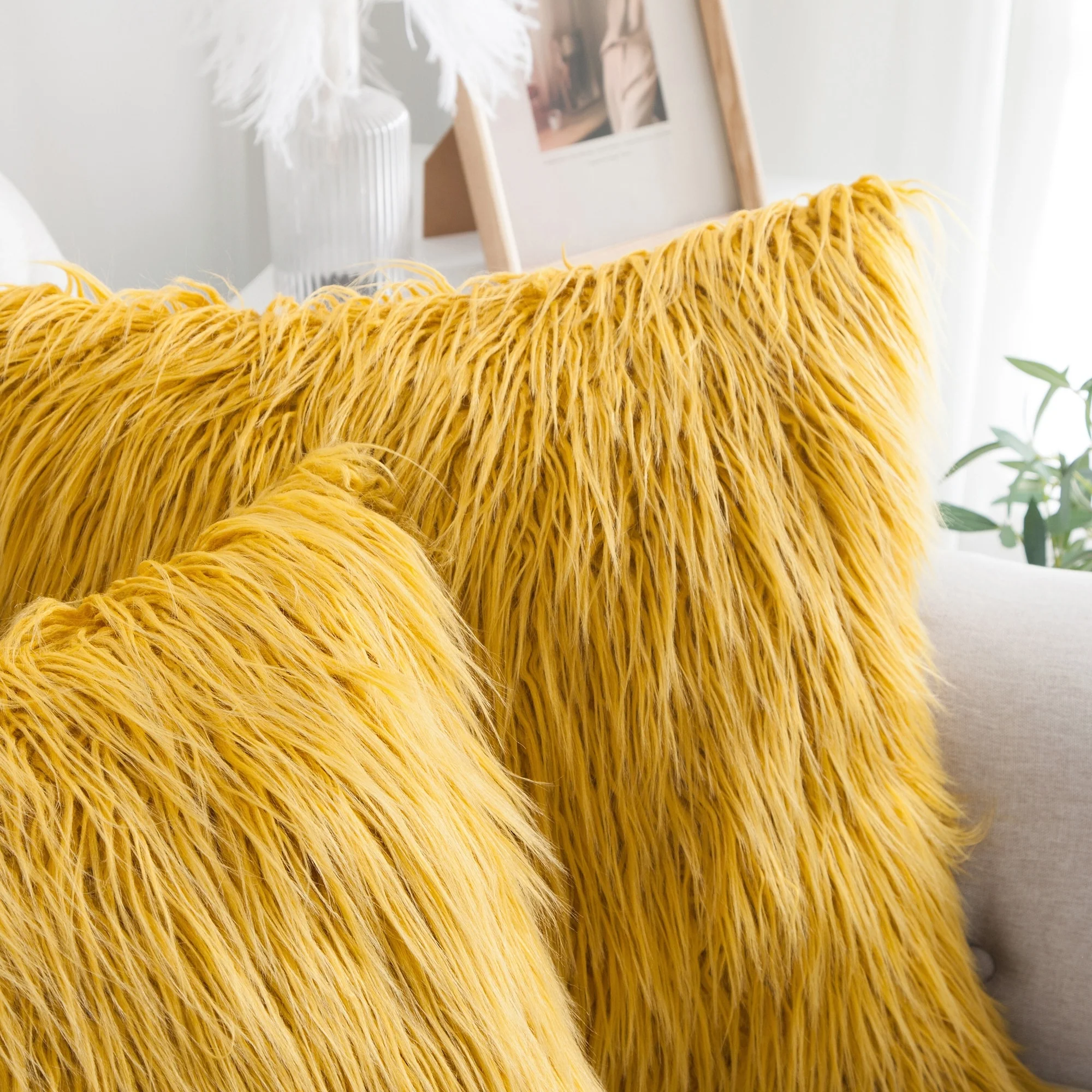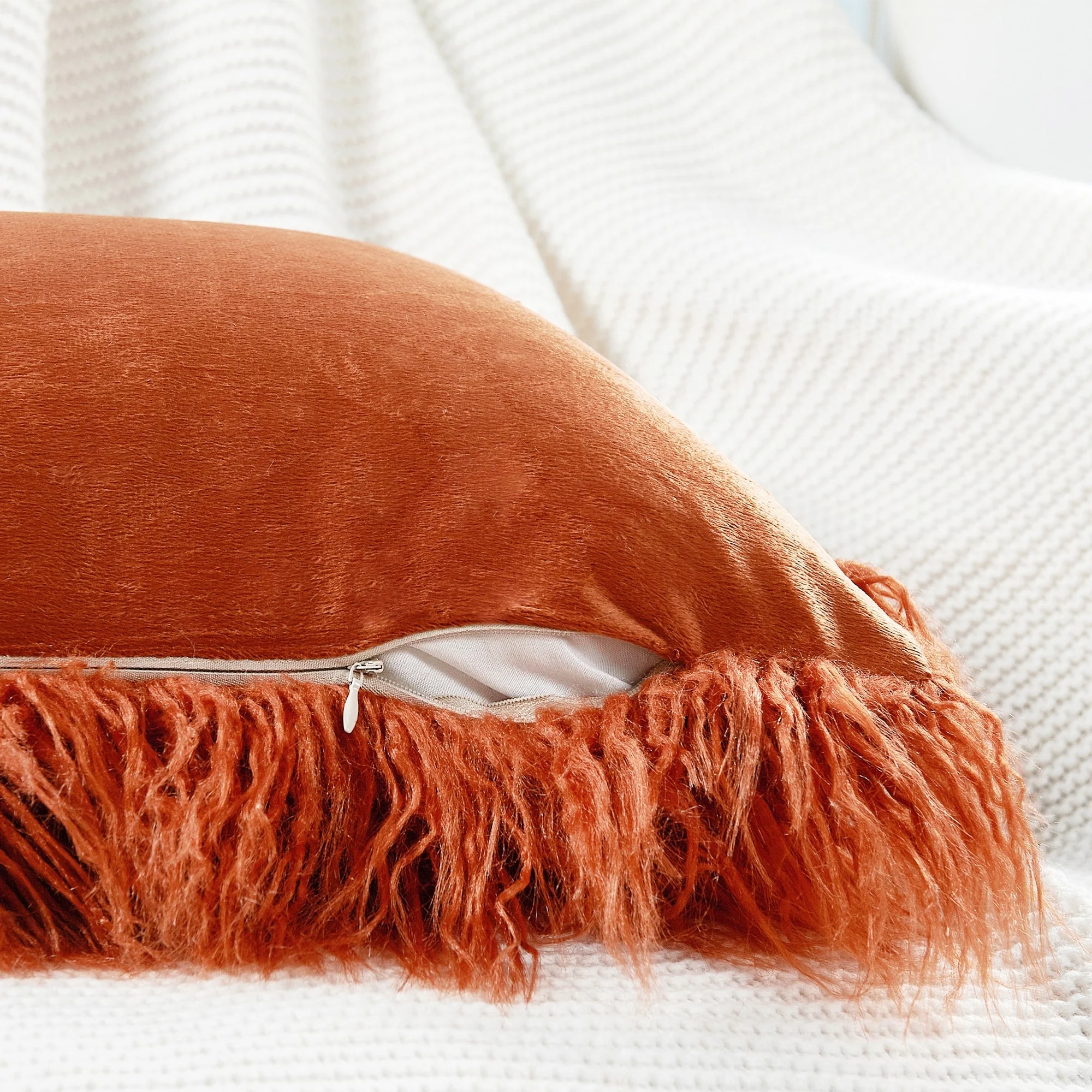 Upgrade your home decor with this set of two Karenne FauxFur Throw Pillow Covers, perfect for adding a touch of luxury and comfort to any space. These covers are made from high-quality Mongolian lamb fauxfur with an extra-shaggy pile, making them irresistibly soft and cozy. With a convenient zipper closure, you can easily slip these covers over your existing pillows (inserts not included). Available in multiple solid colors and two size options, these covers feature a modern and contemporary style that will elevate any room.