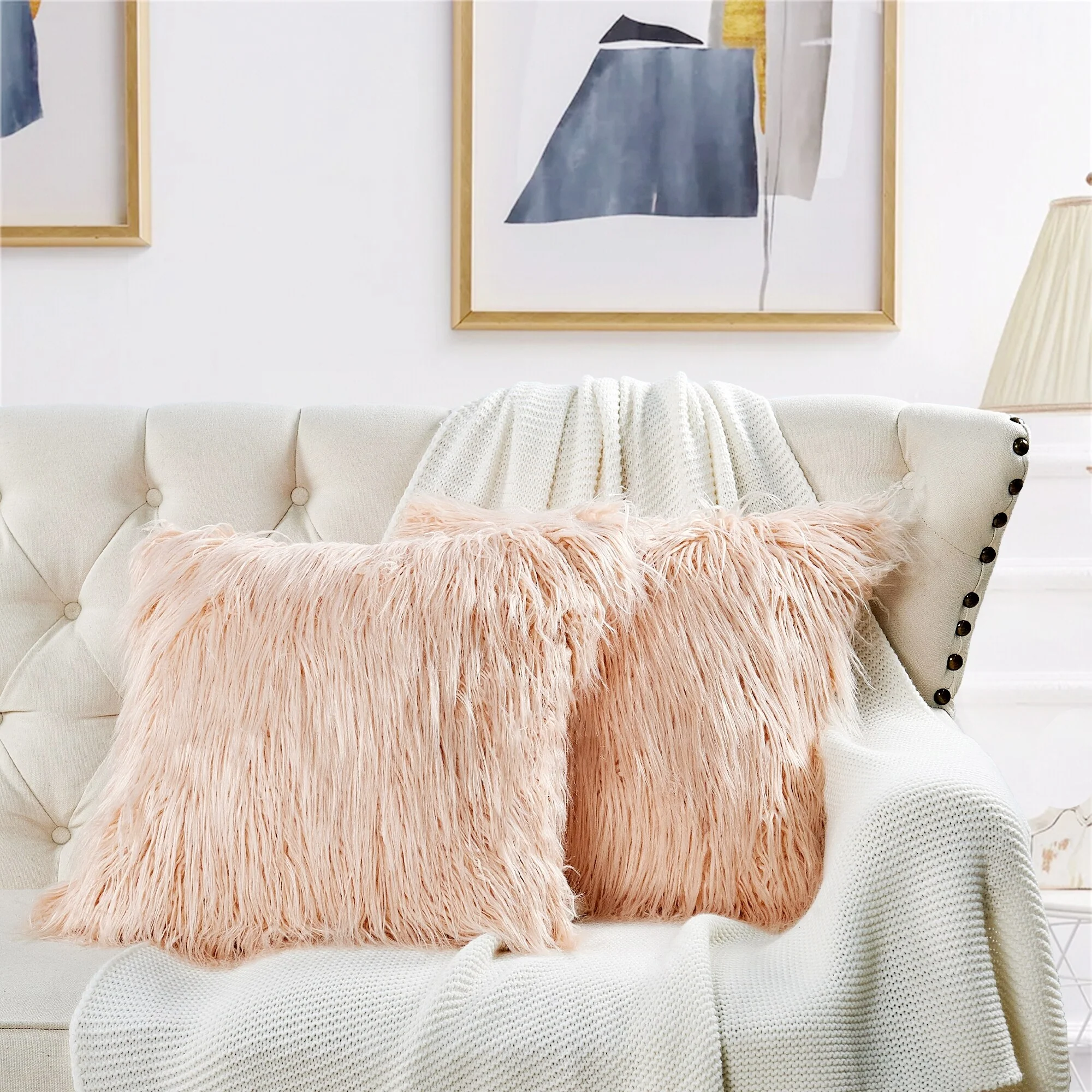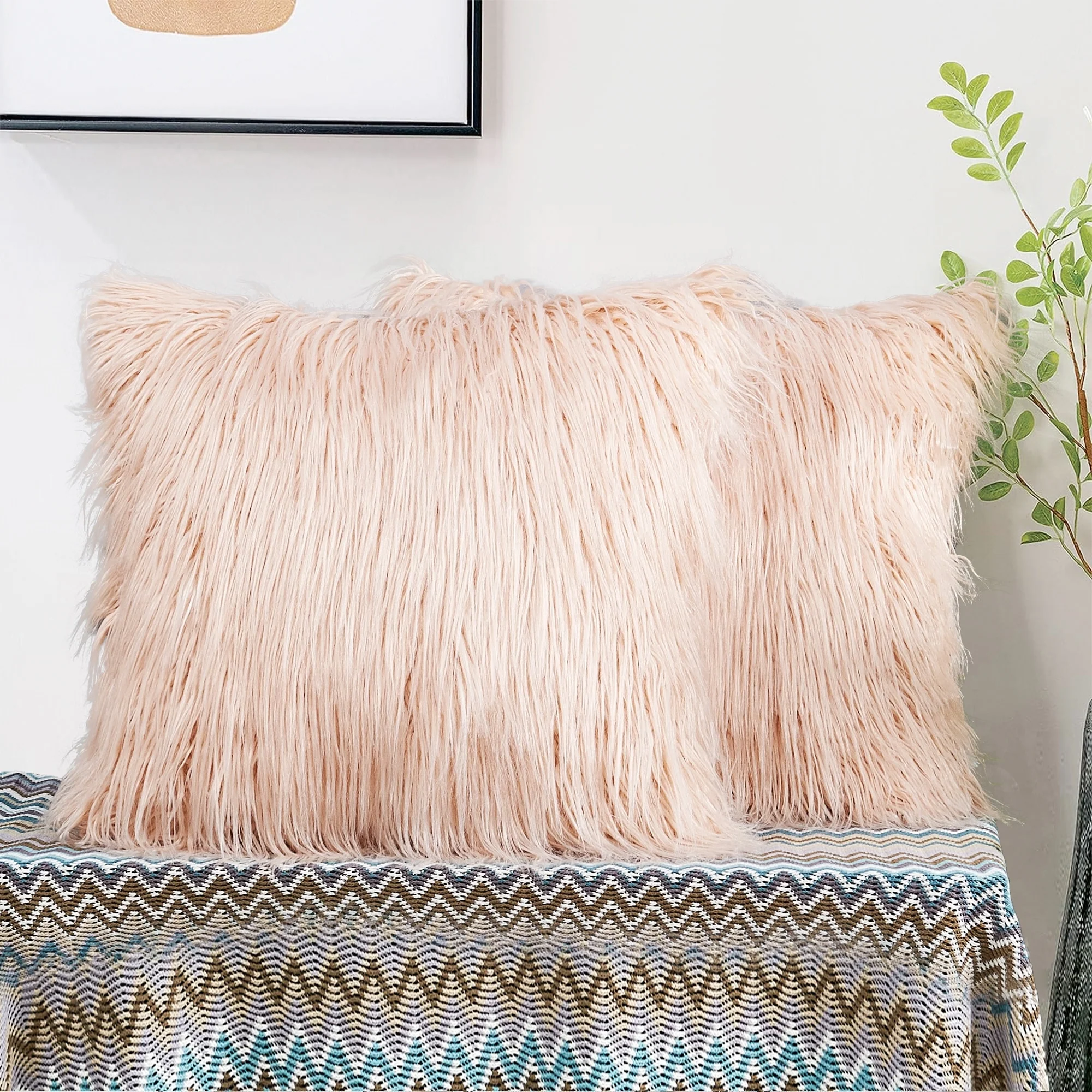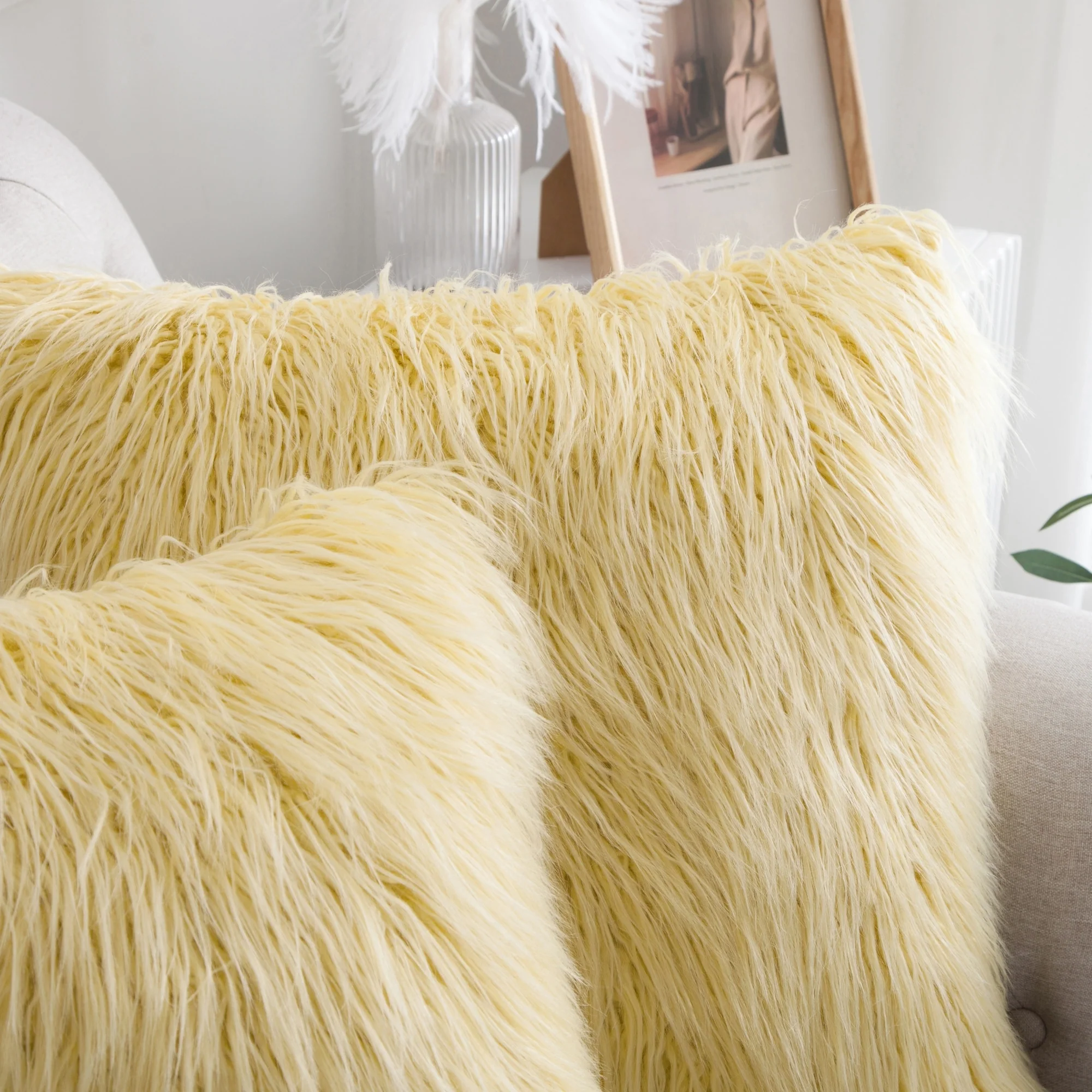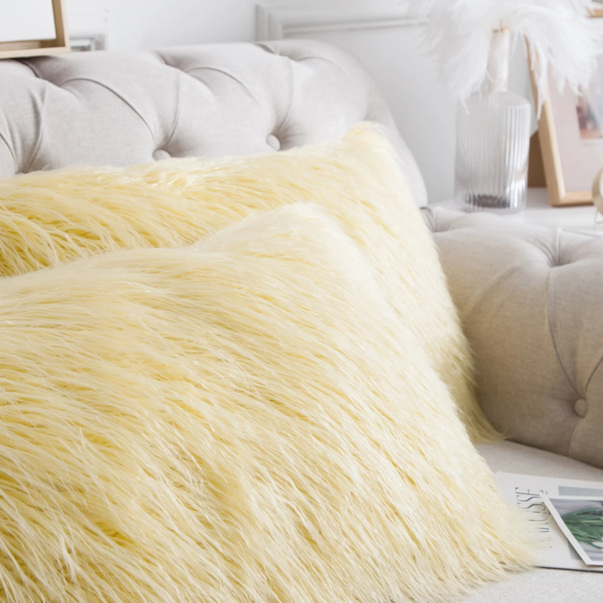 Upgrade your home decor with this set of two Karenne FauxFur Throw Pillow Covers, perfect for adding a touch of luxury and comfort to any space. These covers are made from high-quality Mongolian lamb fauxfur with an extra-shaggy pile, making them irresistibly soft and cozy. With a convenient zipper closure, you can easily slip these covers over your existing pillows (inserts not included). Available in multiple solid colors and two size options, these covers feature a modern and contemporary style that will elevate any room.