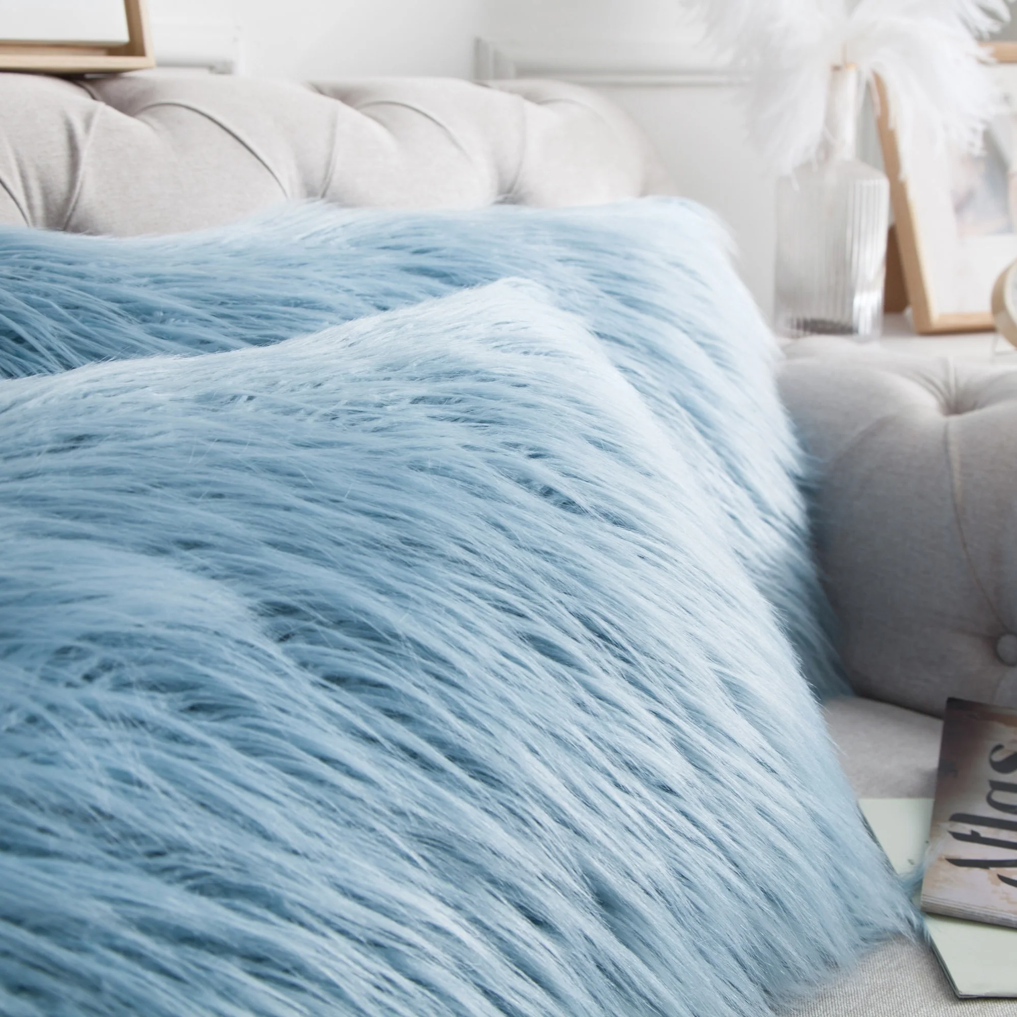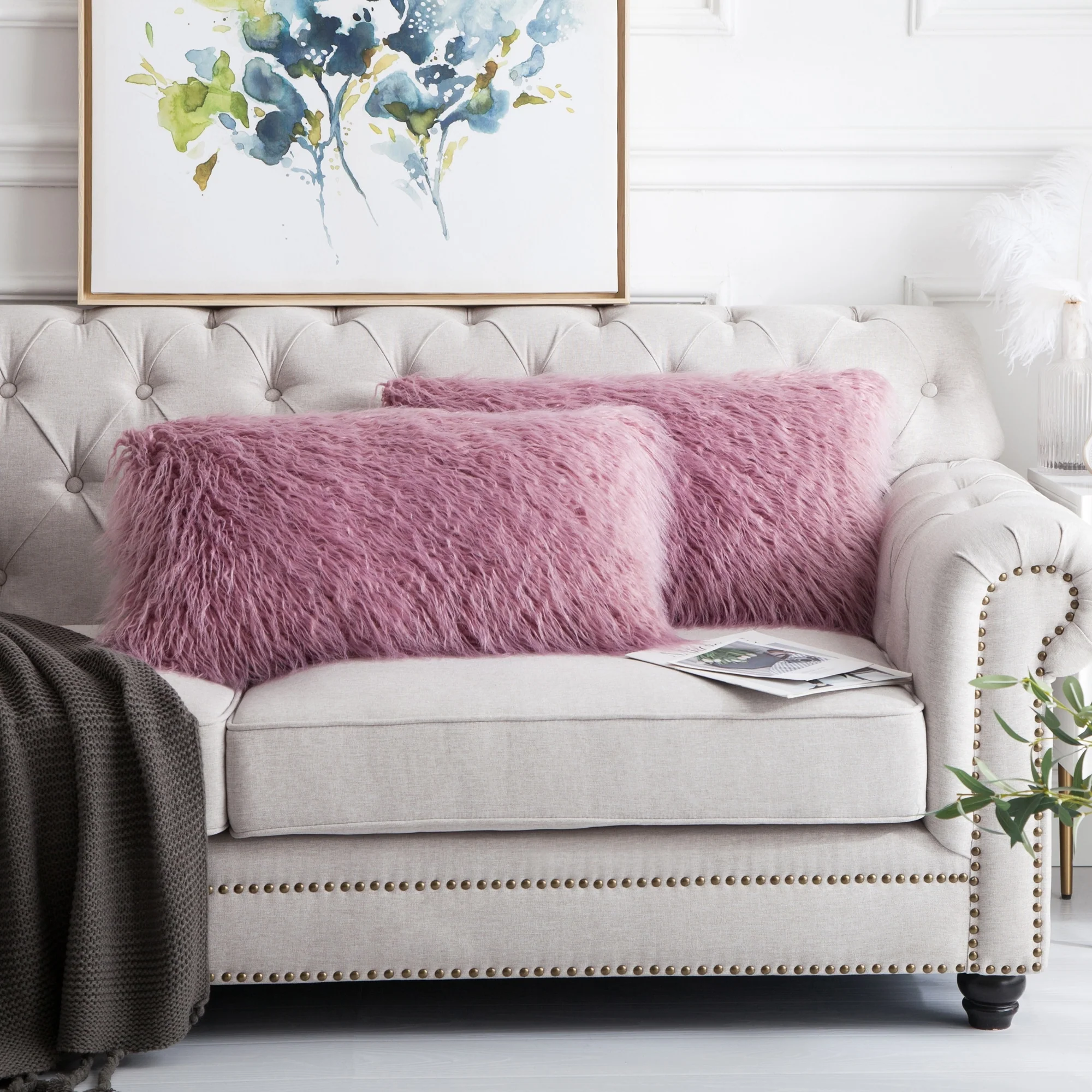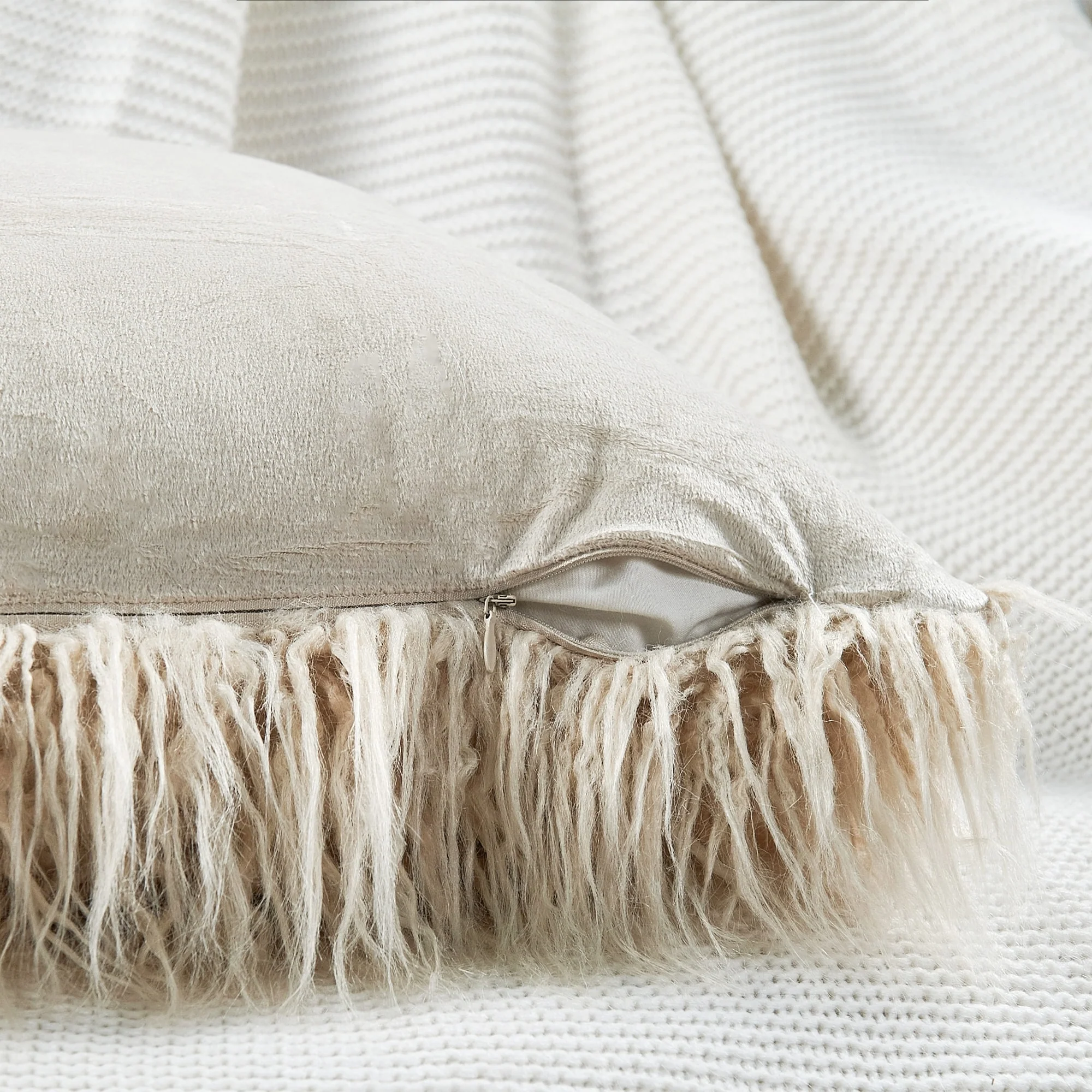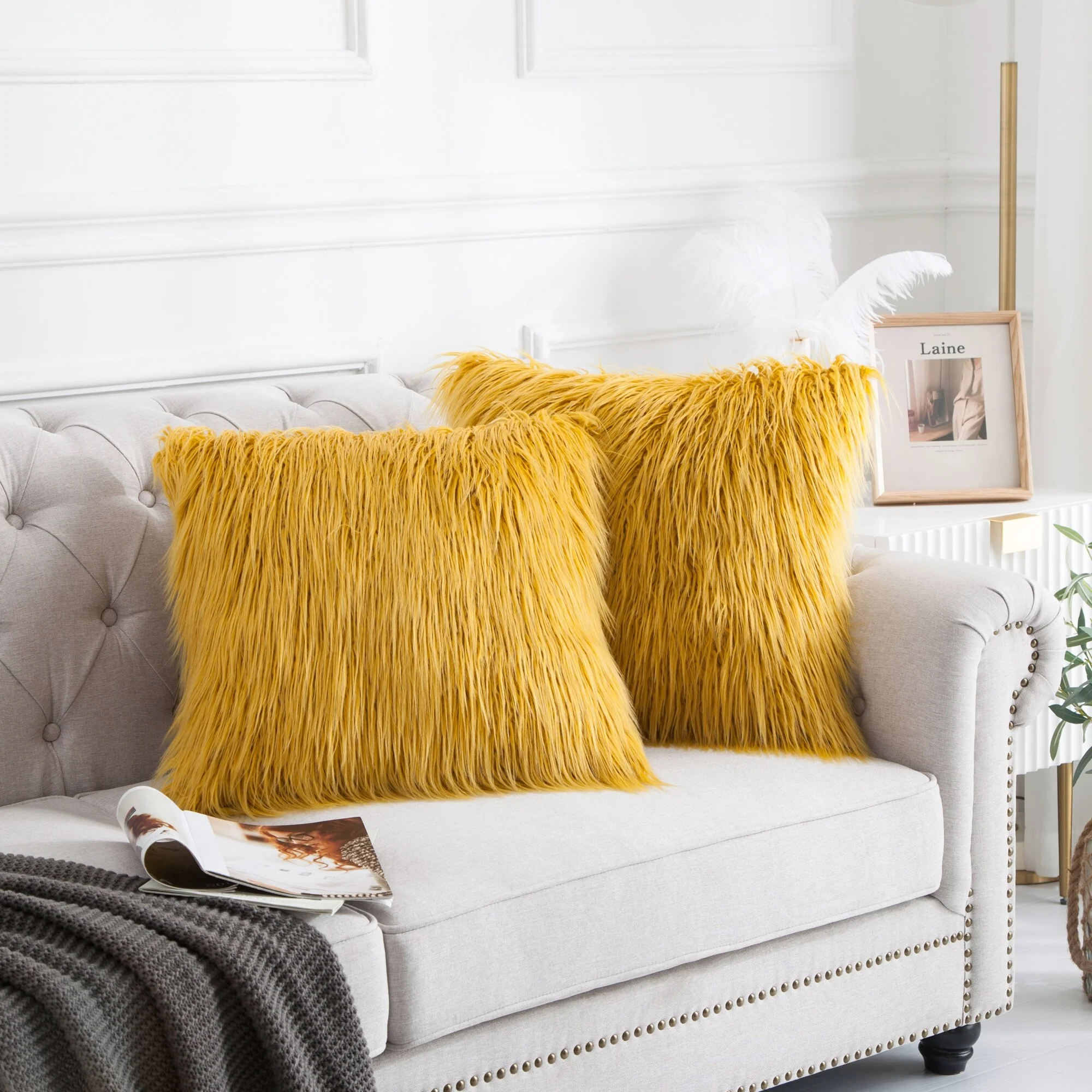 Upgrade your home decor with this set of two Karenne FauxFur Throw Pillow Covers, perfect for adding a touch of luxury and comfort to any space. These covers are made from high-quality Mongolian lamb fauxfur with an extra-shaggy pile, making them irresistibly soft and cozy. With a convenient zipper closure, you can easily slip these covers over your existing pillows (inserts not included). Available in multiple solid colors and two size options, these covers feature a modern and contemporary style that will elevate any room.
