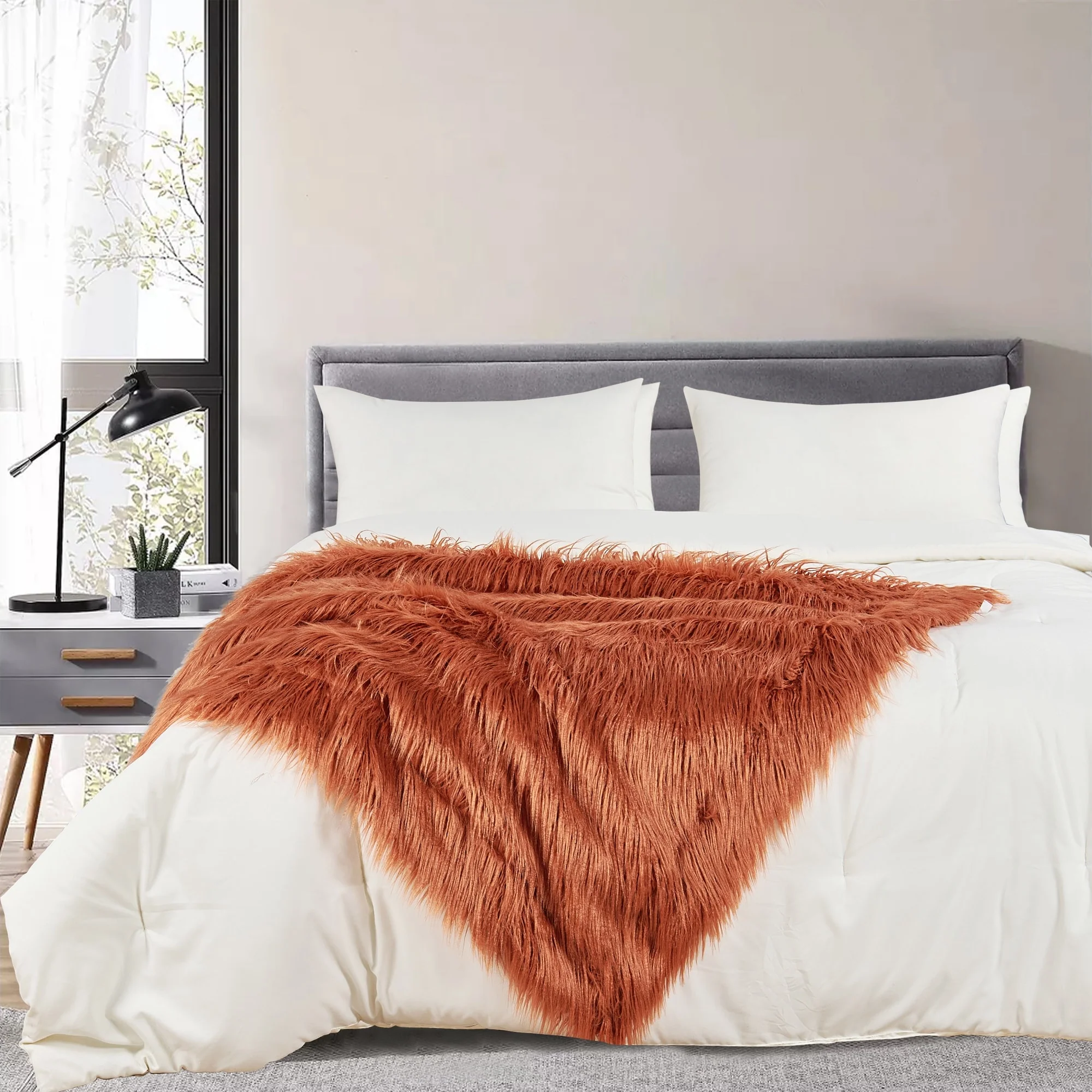 Wrap yourself in luxurious comfort with the Karenne Shaggy Fauxfur Throw Blanket. Made with 100-percent microfiber polyester, this lightweight throw is perfect for snuggling up on the couch or adding a cozy touch to your bedding. The soft shaggy texture adds a fun and stylish element to any room, making it both elegant and functional. Stay warm on chilly nights with this thermal-like throw that is sure to keep you cozy.