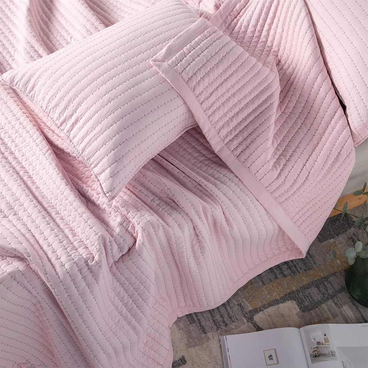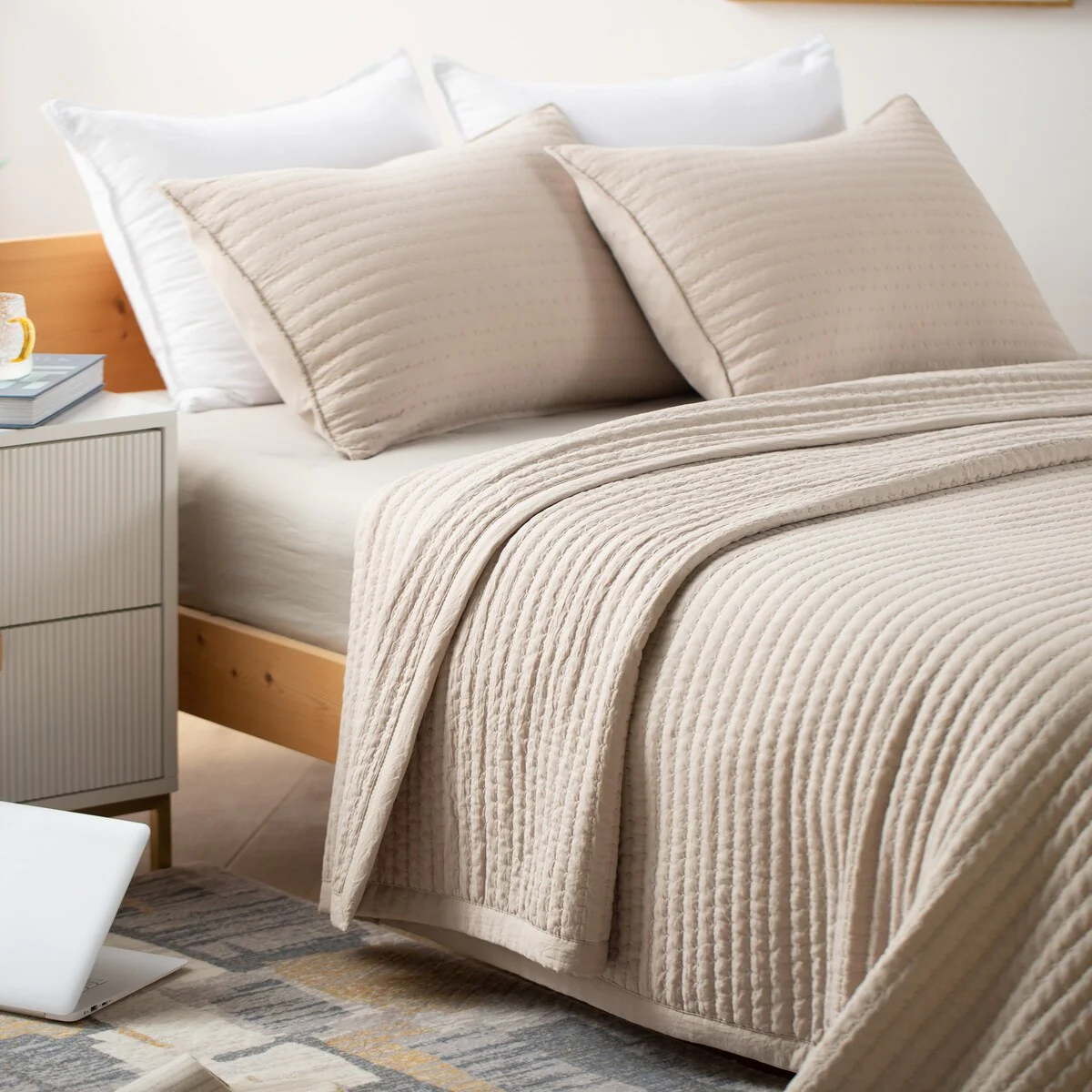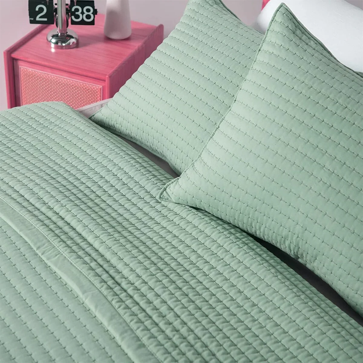 Experience a cozy and luxurious night’s sleep with the KASENTEX Quilt Set. This down alternative microfiber-fill quilt set features a textured design that adds an elegant touch to your bedding collection. The stonewashed look gives it a distressed feel, making it the perfect addition to your homey bedroom decor. Available in a variety of solid colors, this lightweight quilt set is easy to coordinate with your existing furnishings.