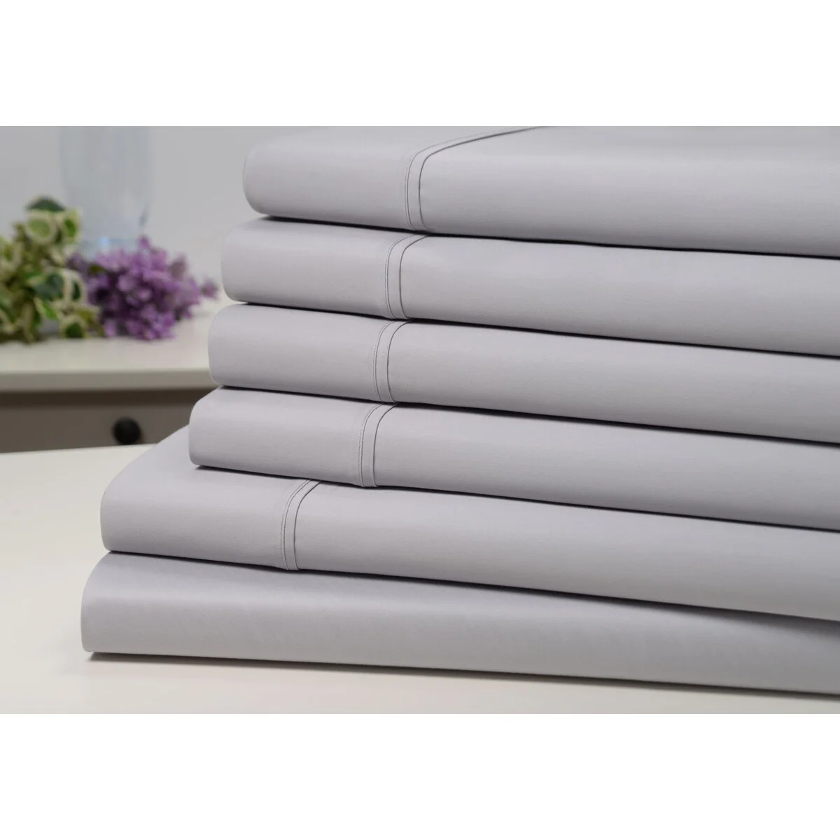 This 1500 Thread Count 6 Piece Sheet Set by Kathy Ireland is constructed of the finest rayon from Rayon from Bamboo & cotton fabrics by premier mills. These lovely linens are done with impeccable quality and durability. We bring the beauty and style of generations of craftsmanship directly to your home. Wrap yourself in this Luxurious Rayon from Rayon from Bamboo & Cotton bed sheets that are truly worthy of a classy elegant suite, and are found in world-class hotels. Comfort, quality, and opulence set our Luxury Bedding in a class above the rest.The 10% of Rayon from Bamboo rayon is for a cool softness sensation mixed with 55% of cotton for the high strength & comfort properties of the cotton. These Sheets repel body odors, bacteria, germs, and are 100% hypoallergenic, anti-bacterial, and anti-fungal. The Rayon from Bamboo cotton sheets are super breathable and will adjust to your body temperatures, it will keep you cool when it’s hot, and warm and cozy when it’s chilly. Extremely comfortable in all temperatures. Perfect for people with allergies & chemical sensitivity