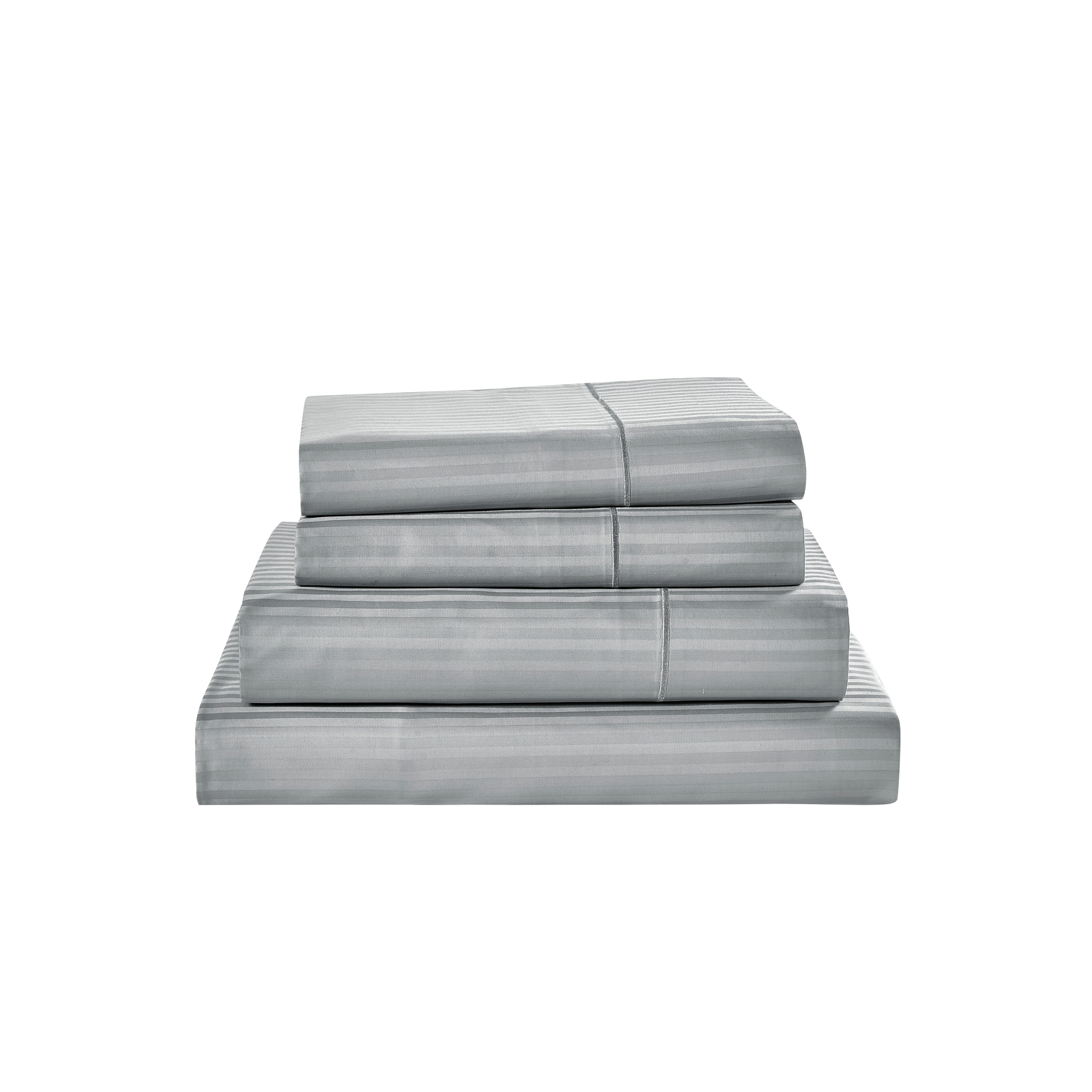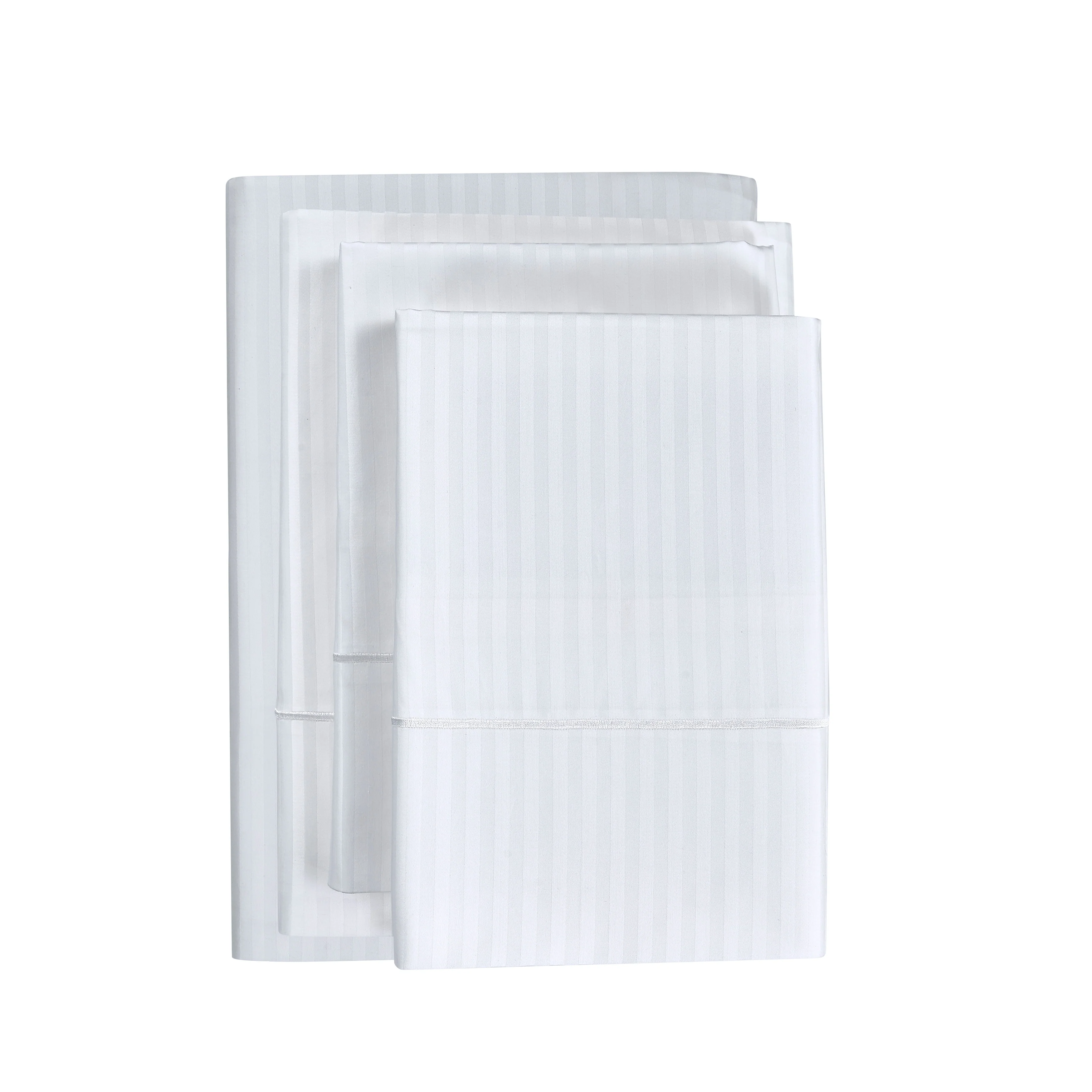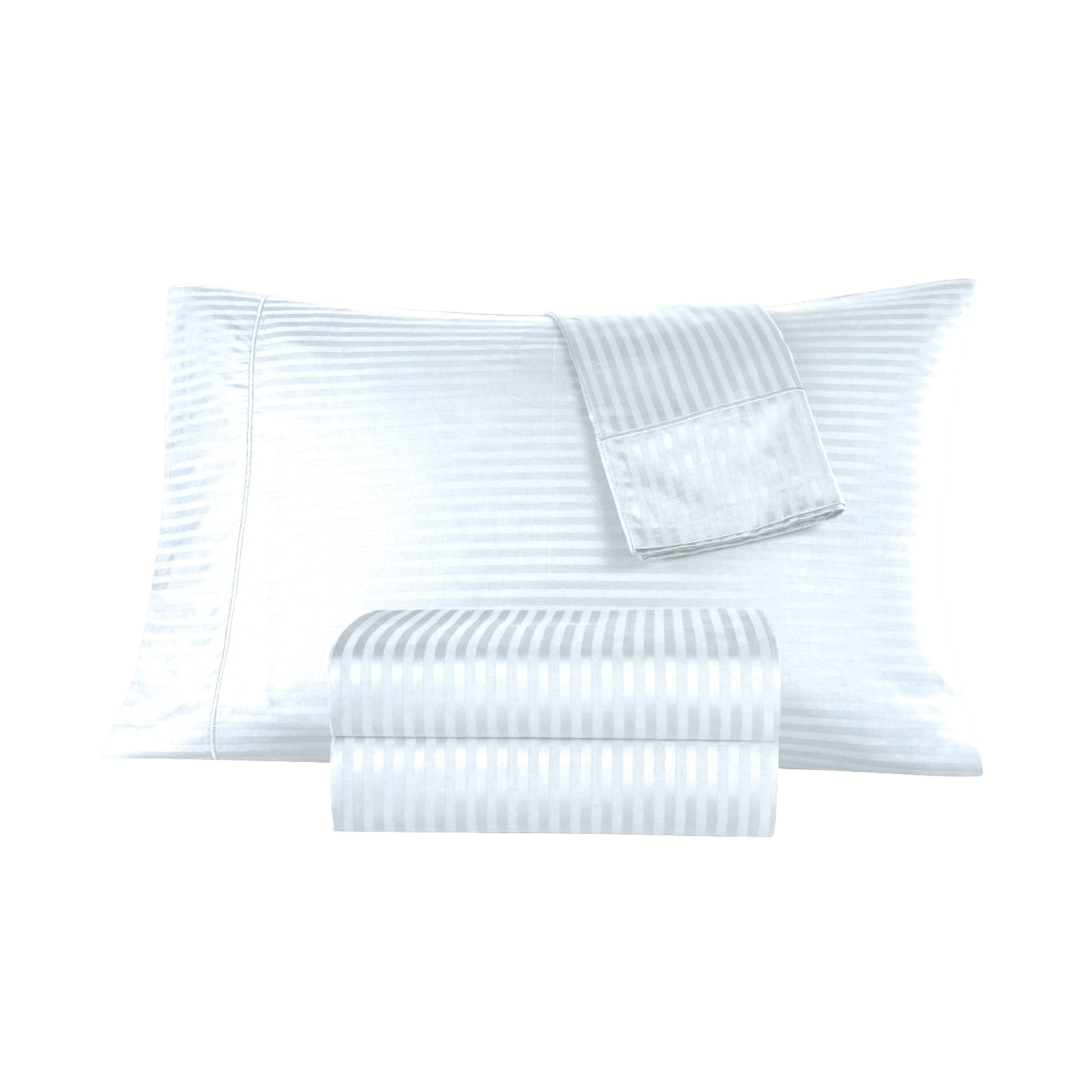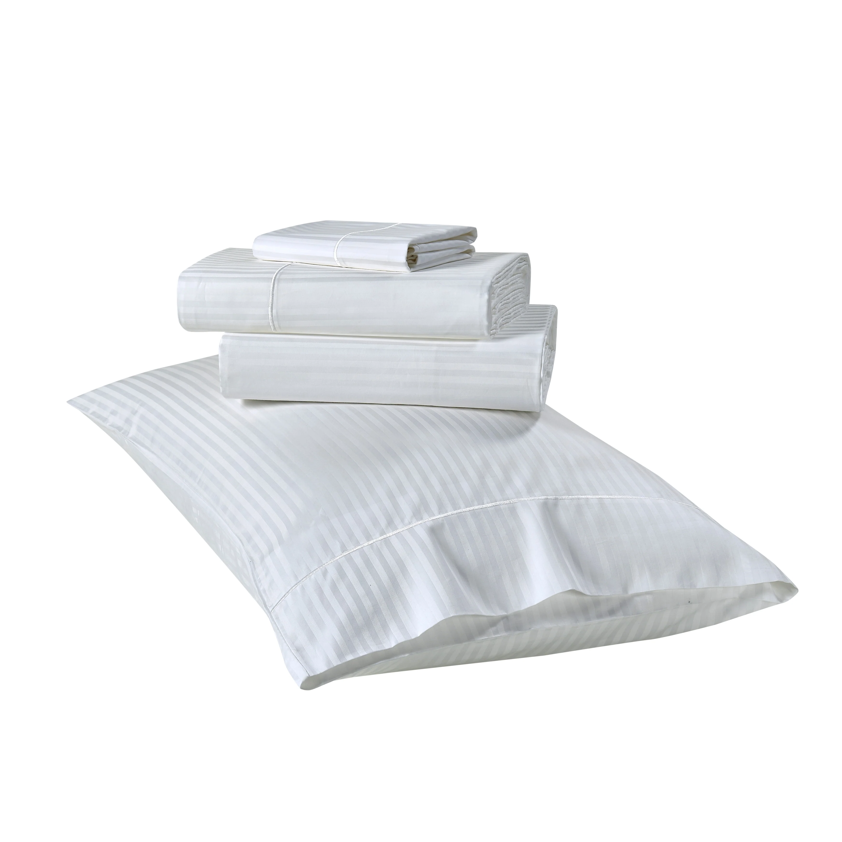 Product Features: Optifit Precision – Each sheet in this set is meticulously crafted to embrace your mattress effortlessly, ensuring a snug and wrinkle-free appearance. Luxuriate in the incomparable softness and breathability of 100% cotton. Sophisticated Damask Stripe – These timeless patterns add a touch of refinement to your sleep sanctuary, effortlessly complementing various interior styles. Machine Wash Warm. Do not bleach. Tumble Dry Low. Remove promptly from dryer to avoid wrinkles. Warm iron as needed.