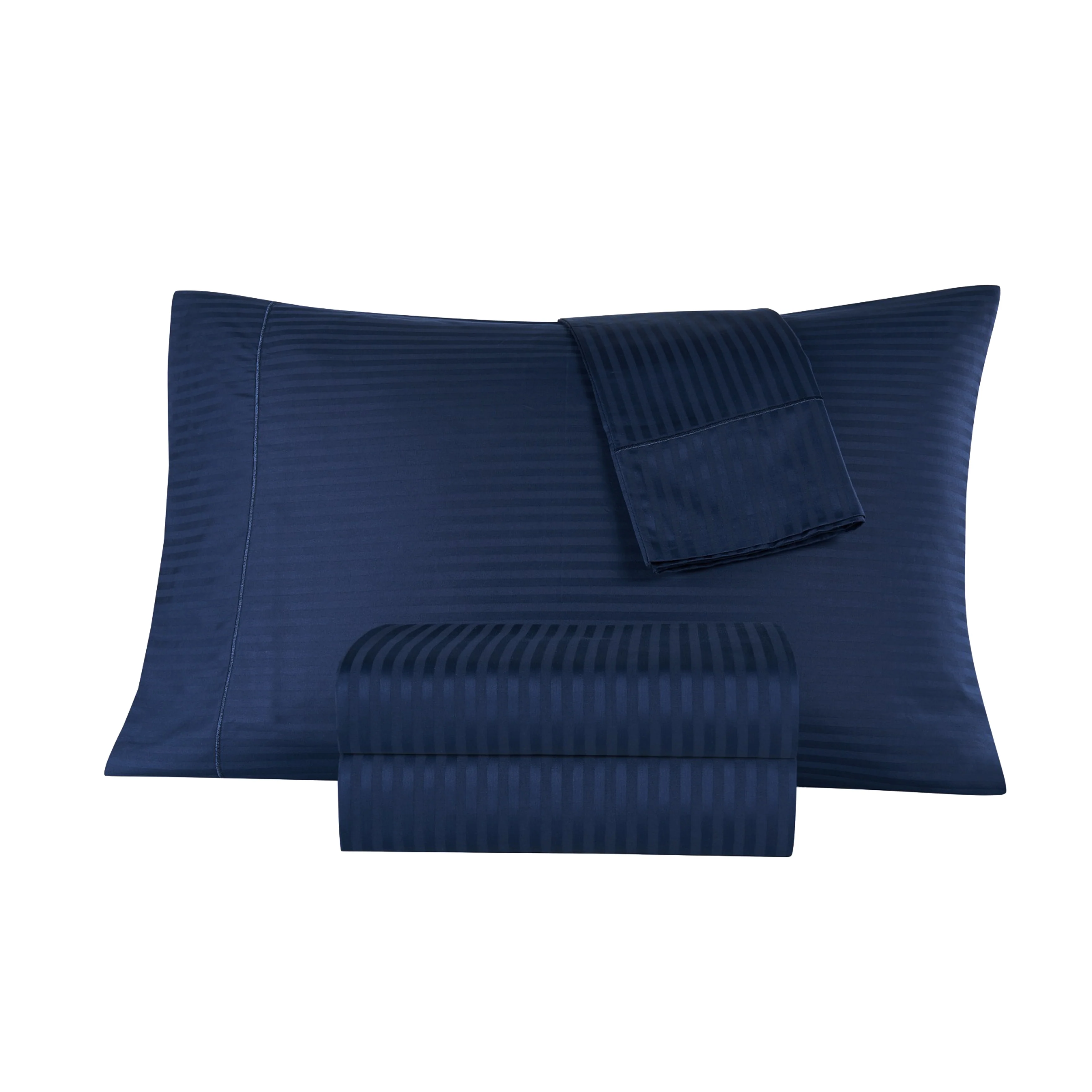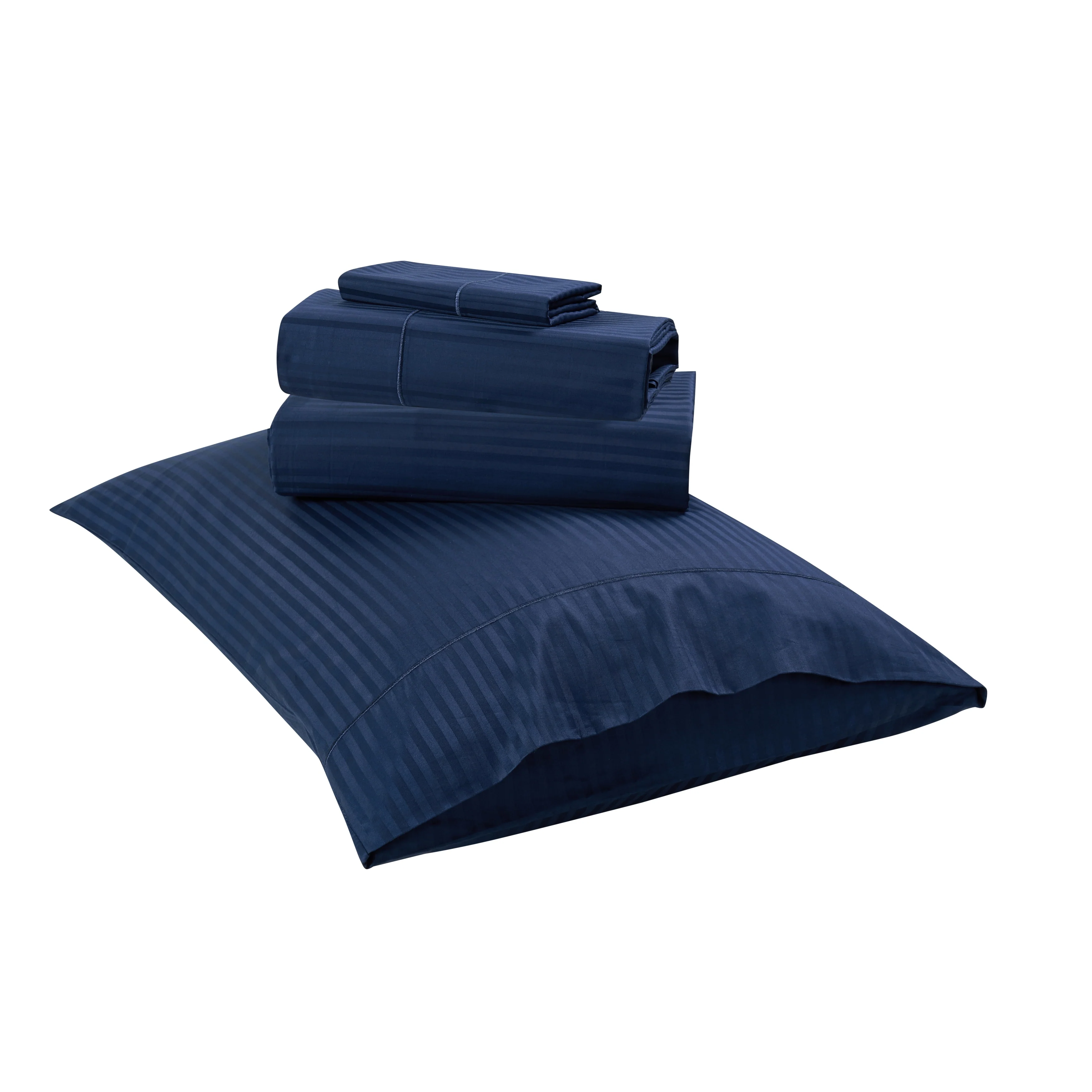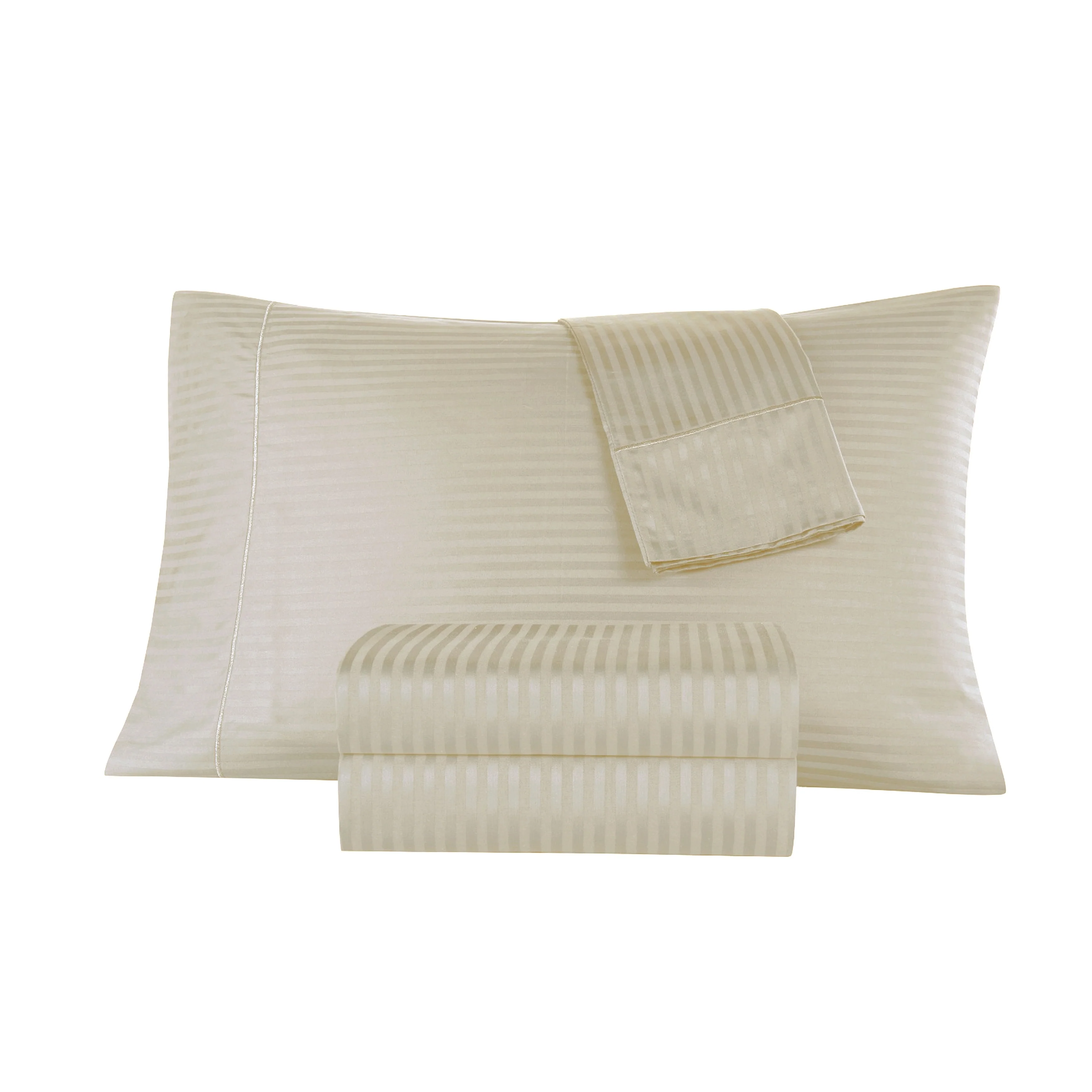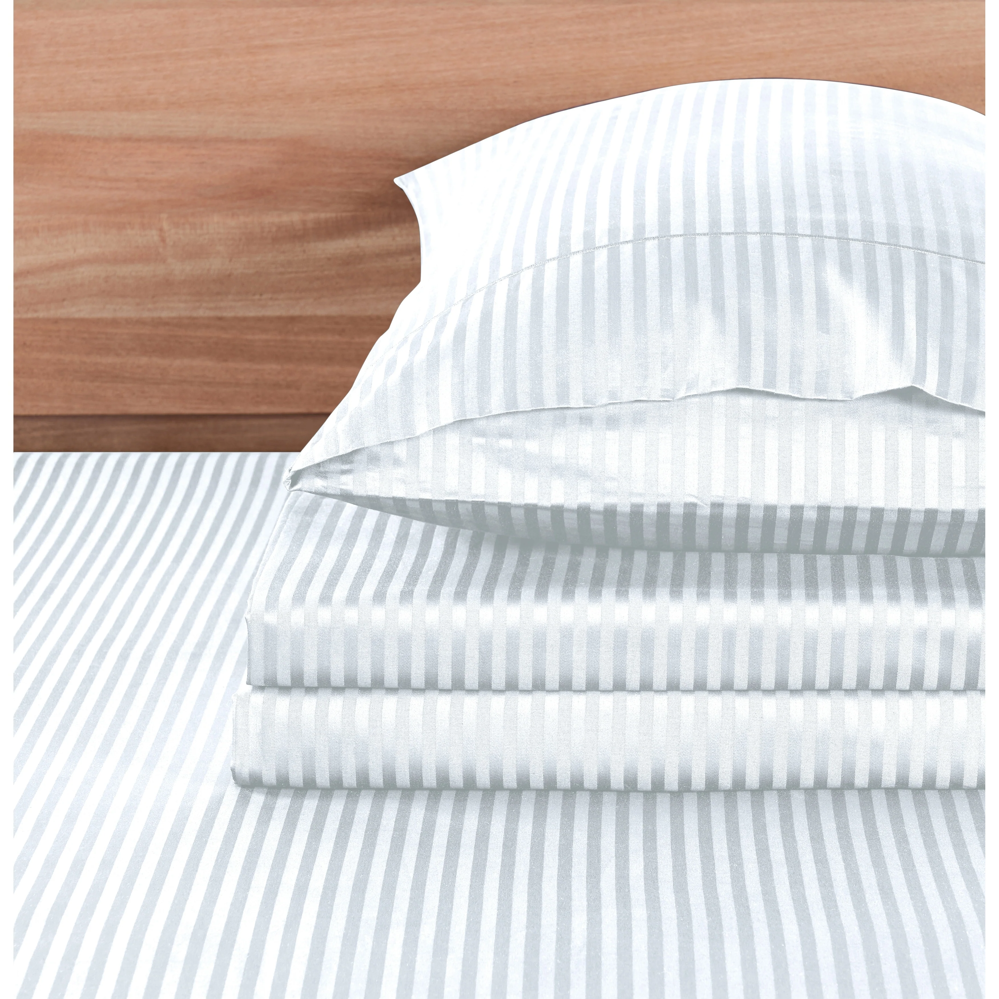 Product Features: Optifit Precision – Each sheet in this set is meticulously crafted to embrace your mattress effortlessly, ensuring a snug and wrinkle-free appearance. Luxuriate in the incomparable softness and breathability of 100% cotton. Sophisticated Damask Stripe – These timeless patterns add a touch of refinement to your sleep sanctuary, effortlessly complementing various interior styles. Machine Wash Warm. Do not bleach. Tumble Dry Low. Remove promptly from dryer to avoid wrinkles. Warm iron as needed.