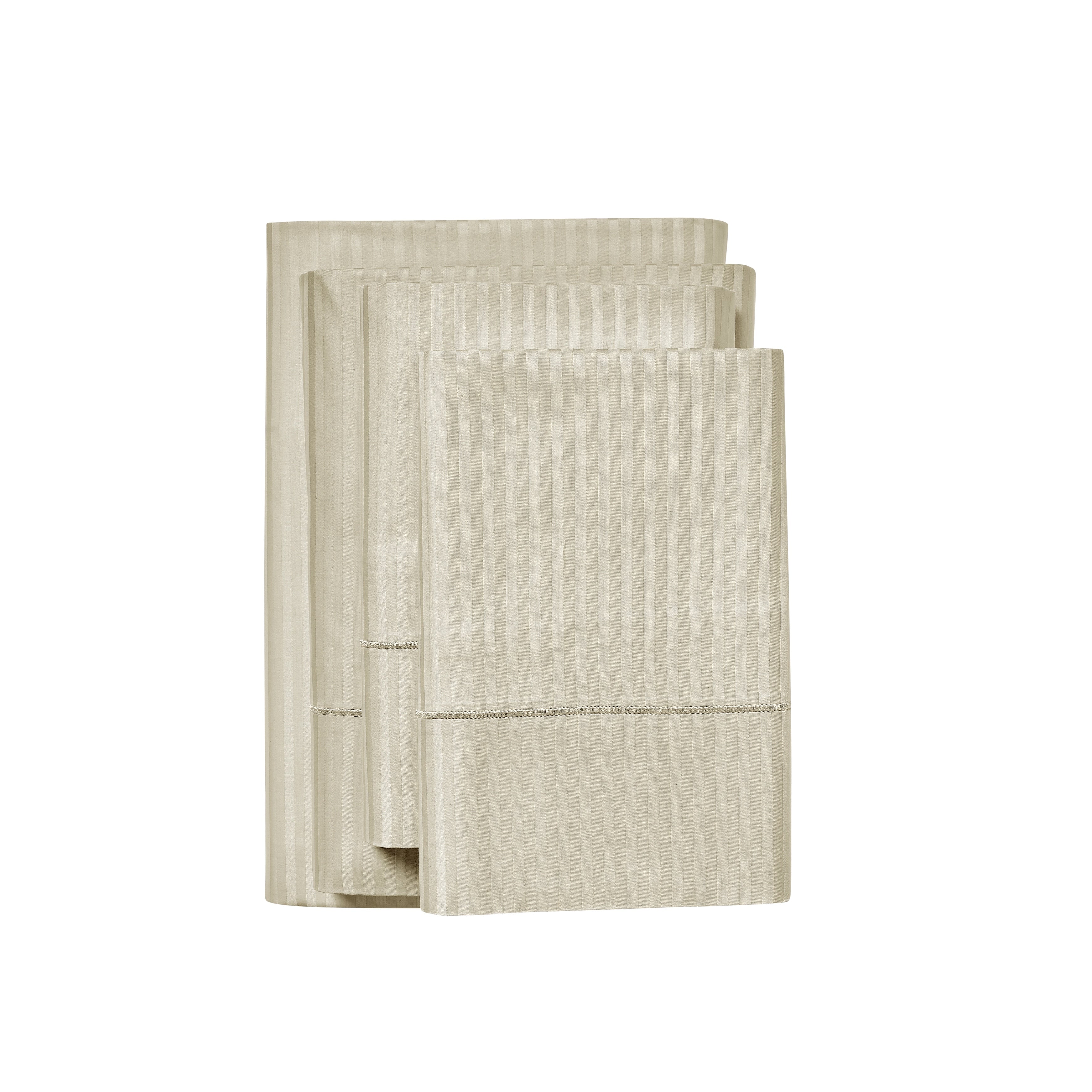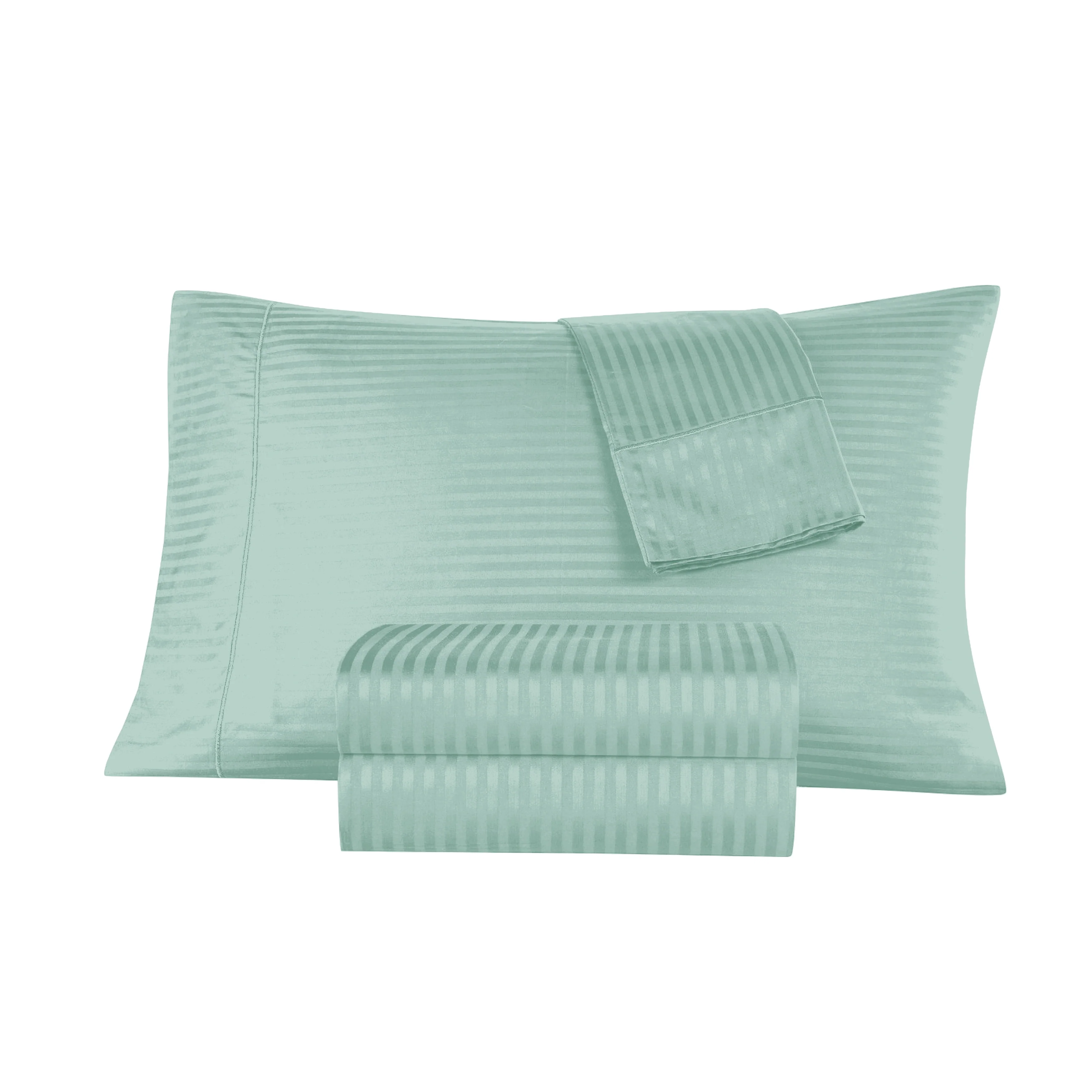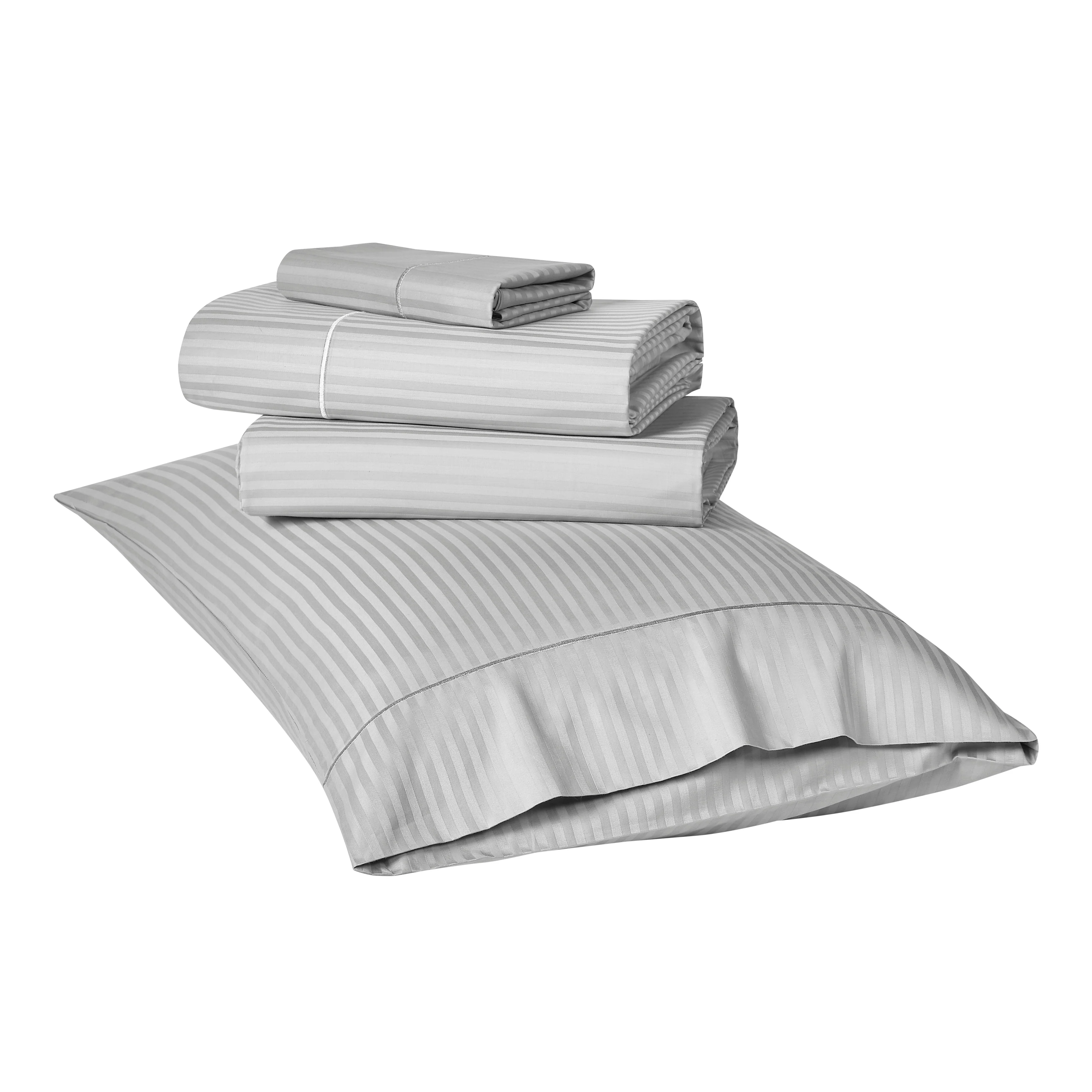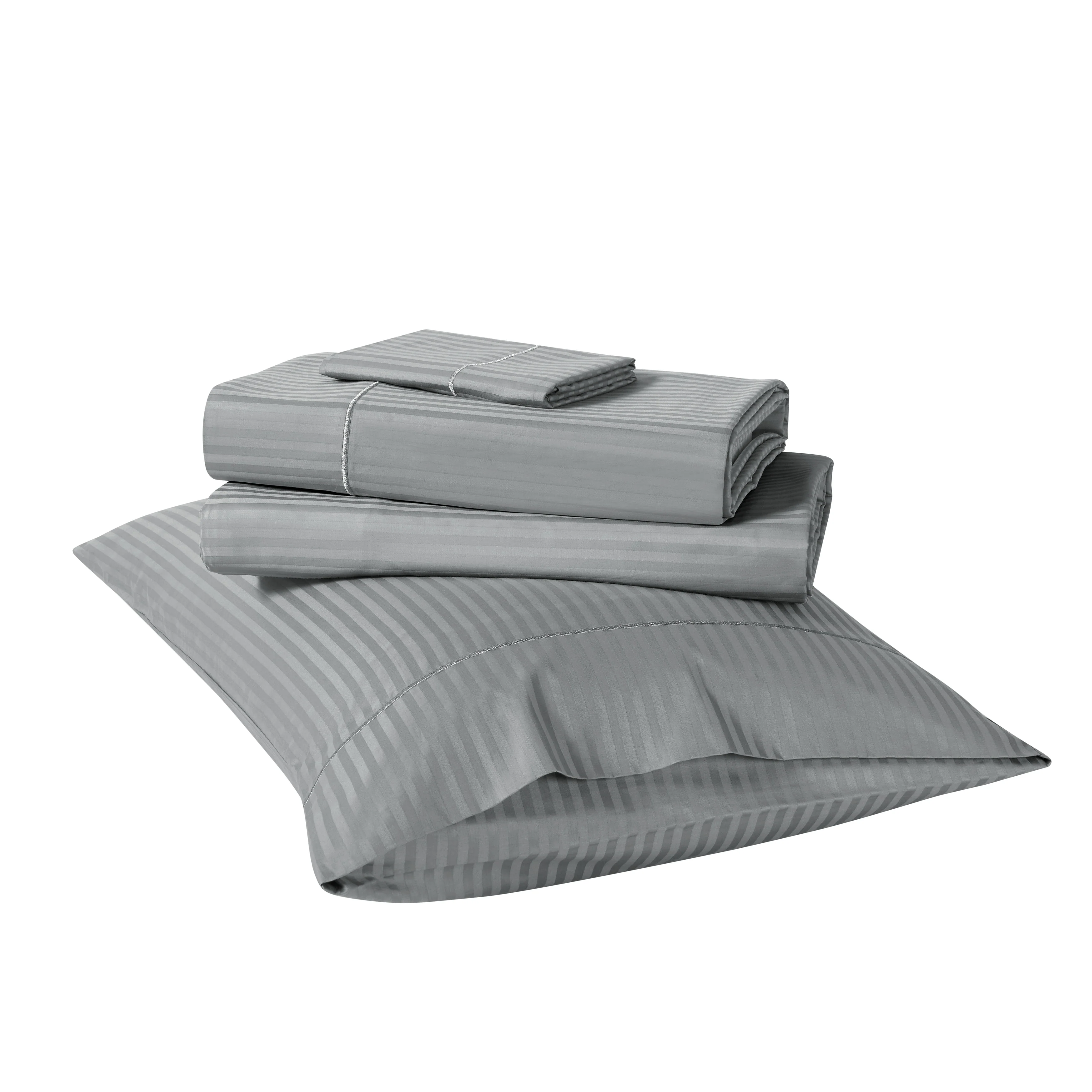 Product Features: Optifit Precision – Each sheet in this set is meticulously crafted to embrace your mattress effortlessly, ensuring a snug and wrinkle-free appearance. Luxuriate in the incomparable softness and breathability of 100% cotton. Sophisticated Damask Stripe – These timeless patterns add a touch of refinement to your sleep sanctuary, effortlessly complementing various interior styles. Machine Wash Warm. Do not bleach. Tumble Dry Low. Remove promptly from dryer to avoid wrinkles. Warm iron as needed.