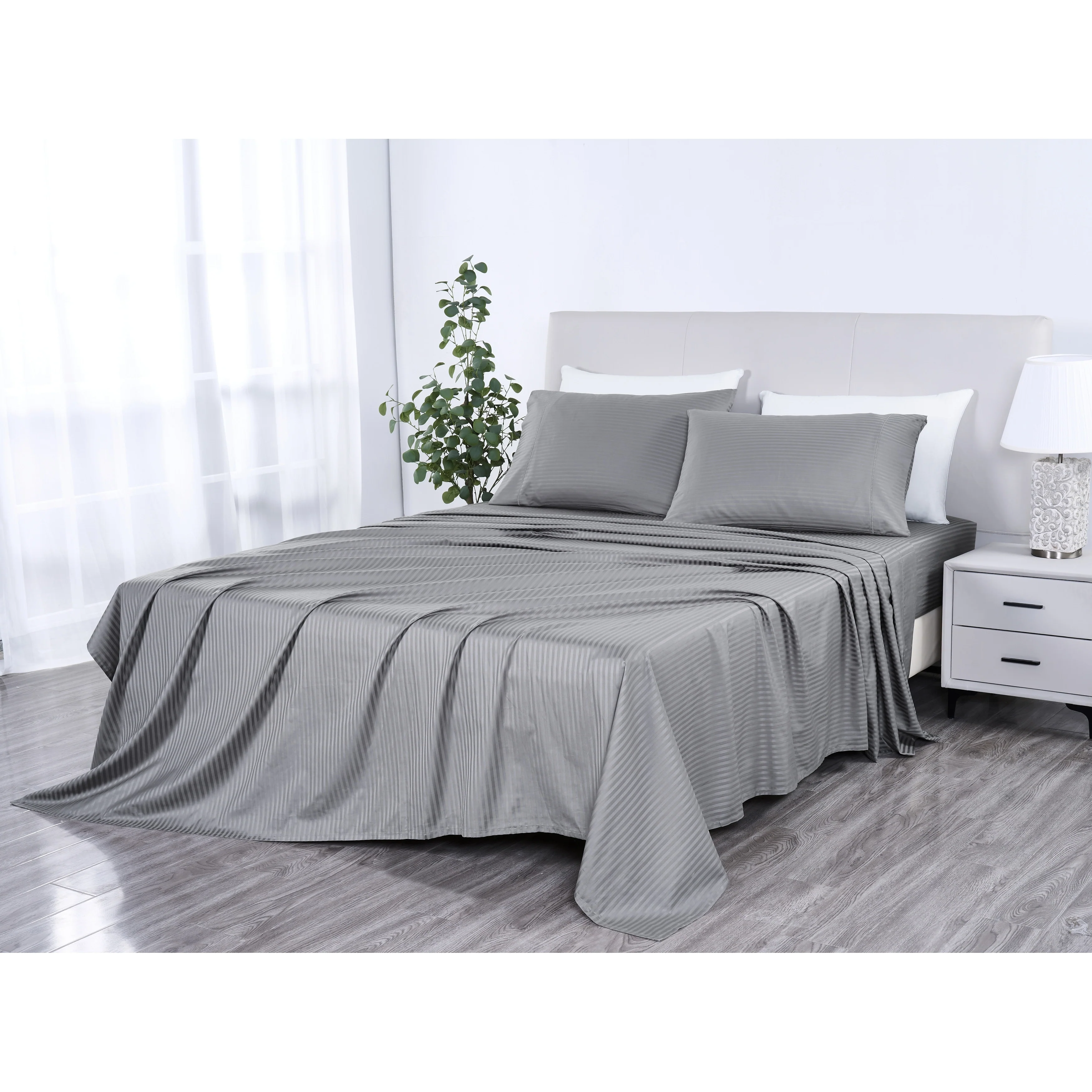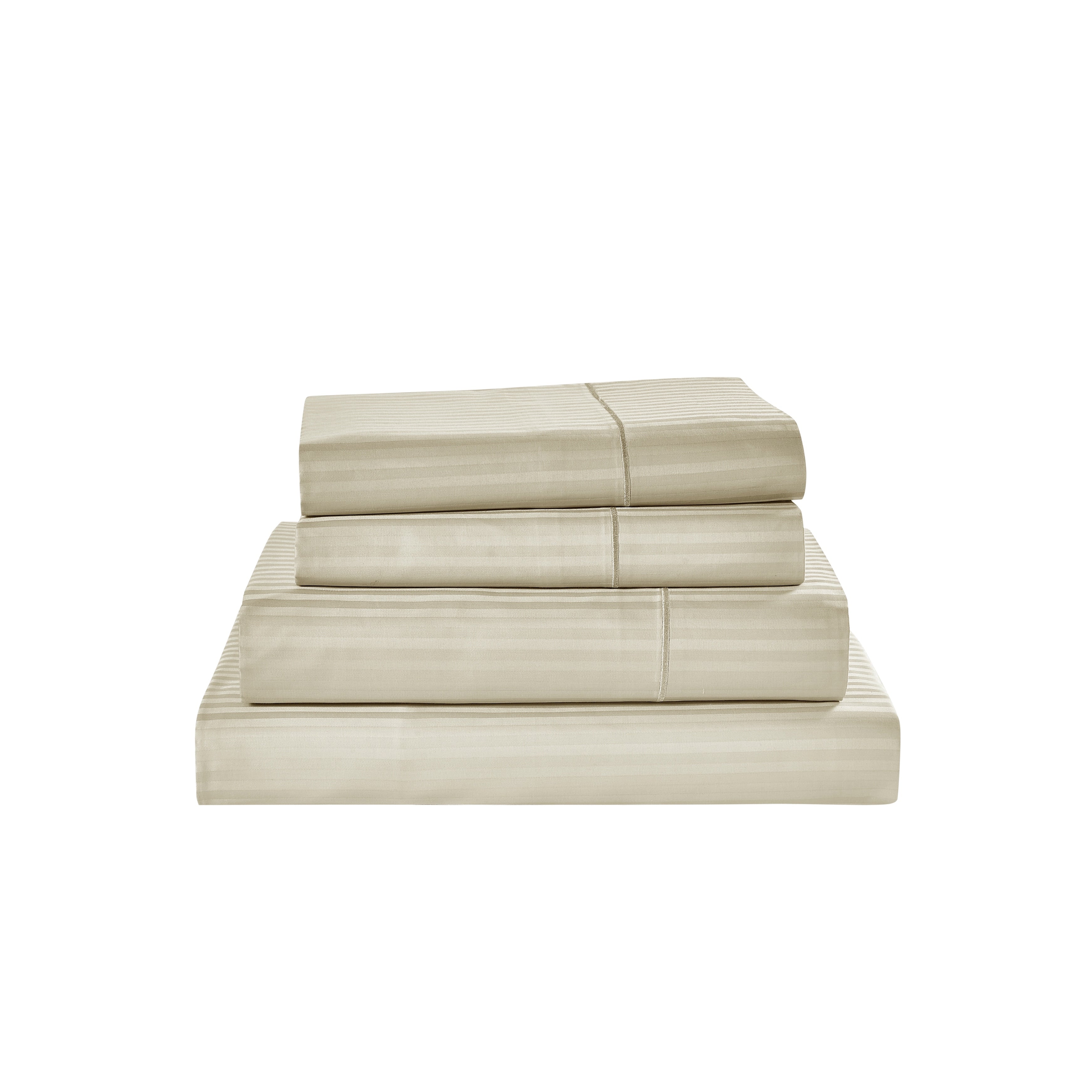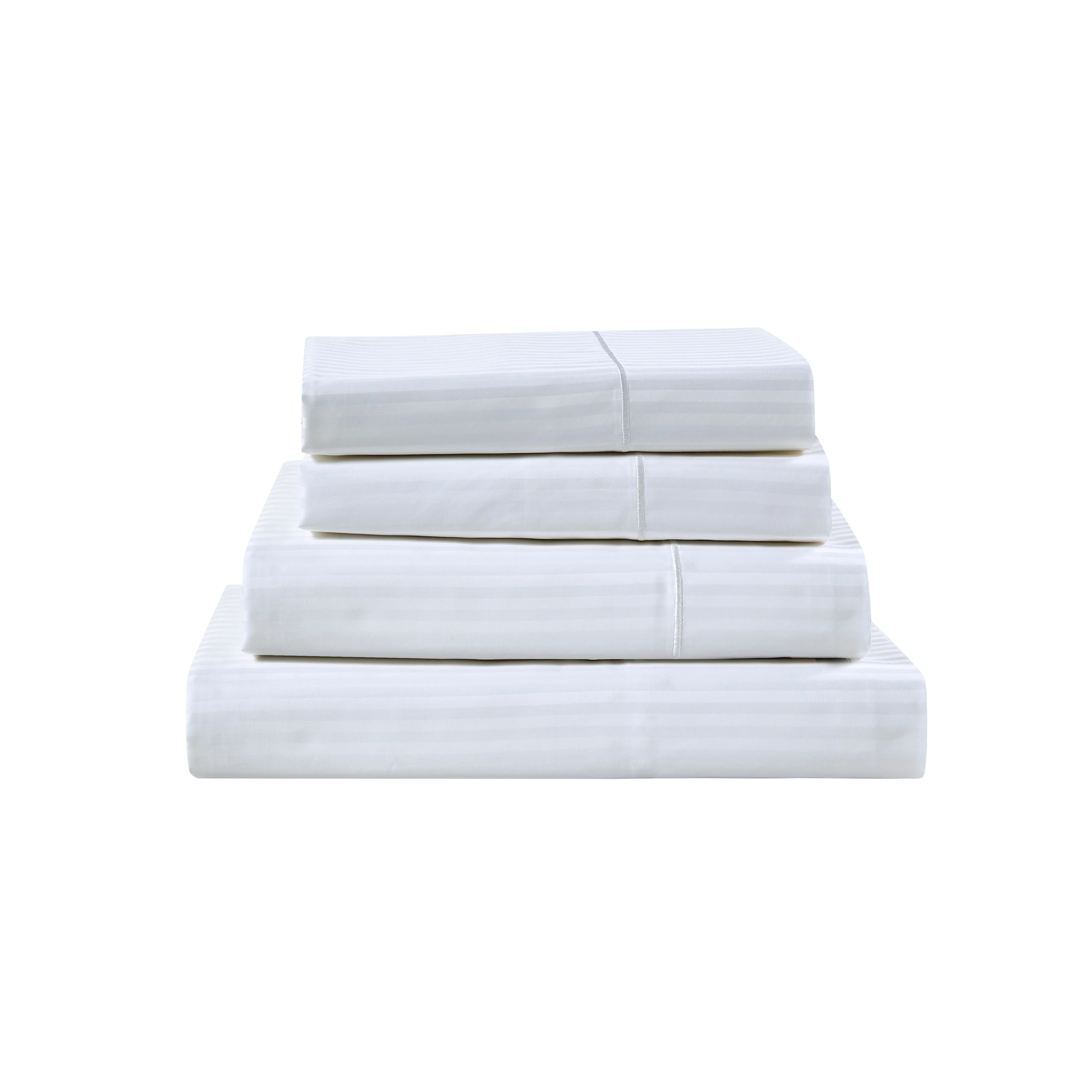 Product Features: Optifit Precision – Each sheet in this set is meticulously crafted to embrace your mattress effortlessly, ensuring a snug and wrinkle-free appearance. Luxuriate in the incomparable softness and breathability of 100% cotton. Sophisticated Damask Stripe – These timeless patterns add a touch of refinement to your sleep sanctuary, effortlessly complementing various interior styles. Machine Wash Warm. Do not bleach. Tumble Dry Low. Remove promptly from dryer to avoid wrinkles. Warm iron as needed.