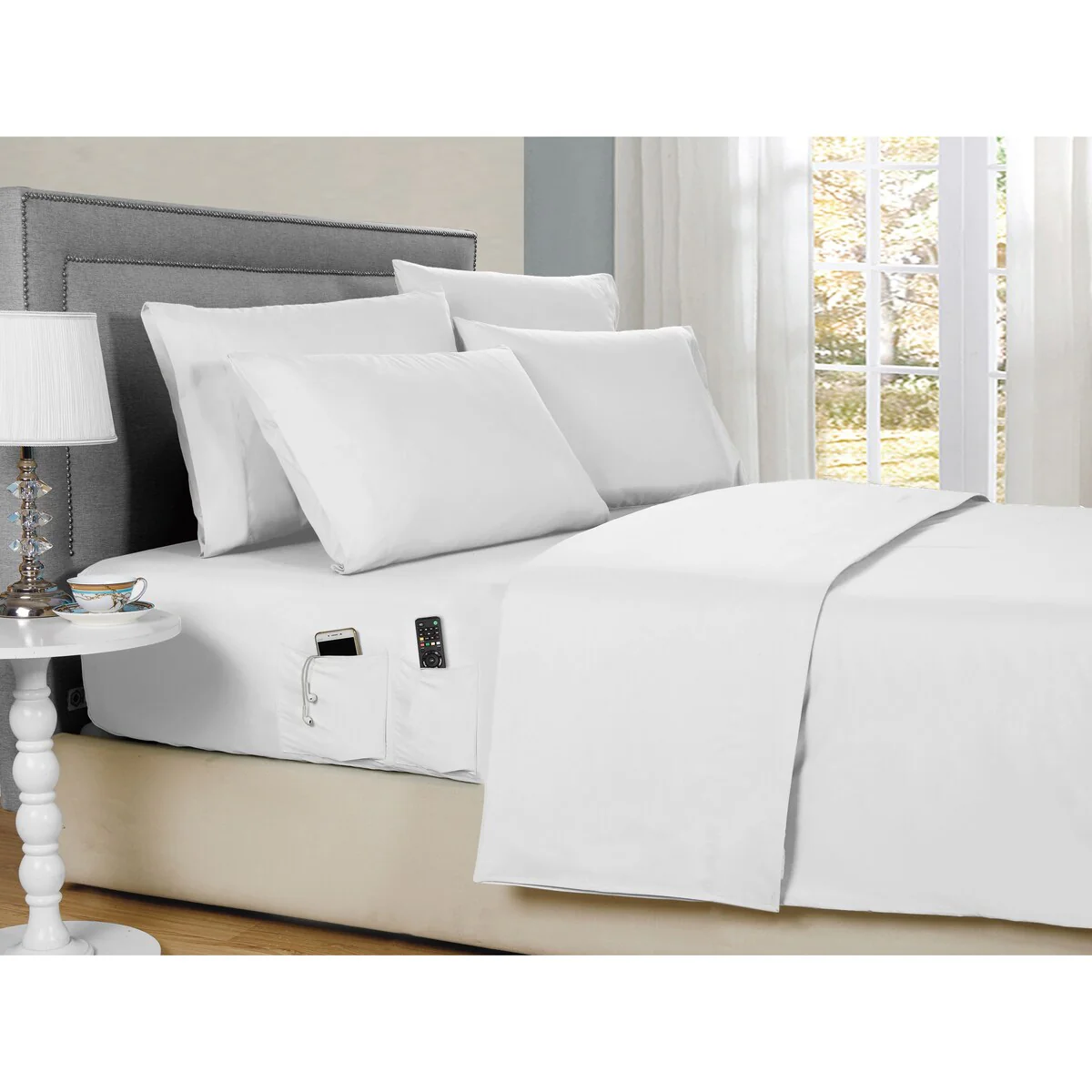 Who doesn’t love practical luxury? The Kathy Ireland Smart Sheets Sheet Set offers the ultimate in modern functionality and cozy comfort. With built-in side pockets, these sheets provide the perfect place to store your phone, eyeglasses, remote, notebook, or other bedside essentials, helping you eliminate nightstand clutter and stay organized. Made from 100% premium microfiber, these ultra-soft sheets are lightweight yet durable, delivering a silky feel that envelopes you in comfort. The tightly woven fibers resist fading, wrinkling, and pilling—even with repeated washes—making them a long-lasting and low-maintenance addition to your bedroom.